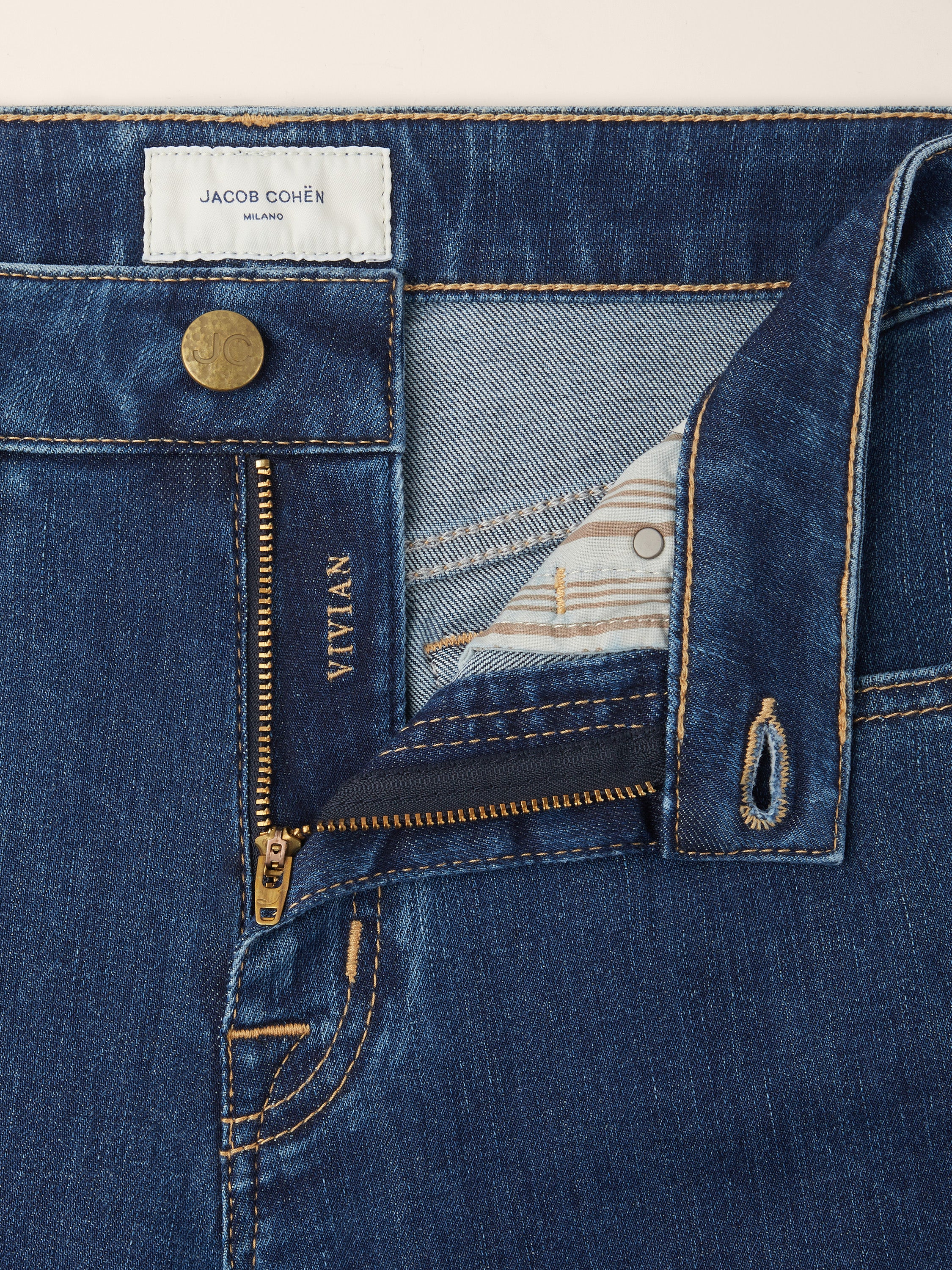 5-Pocket-Jeans Vivian Bootcut aus dunkelblauem Super Stretch Denim, Rinse Wash
