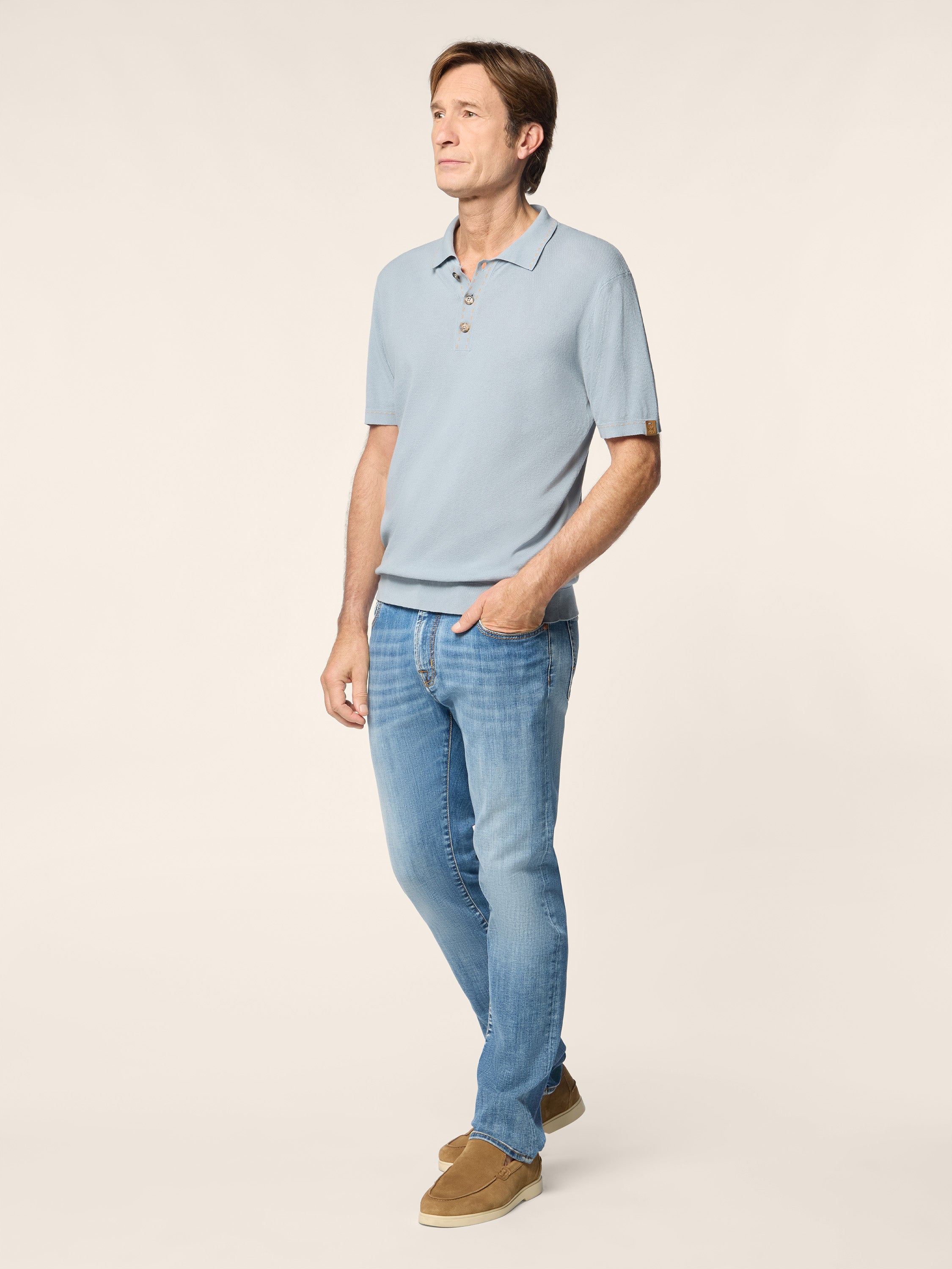 Kurzärmeliges Poloshirt aus gekämmter Baumwolle in Azurblau