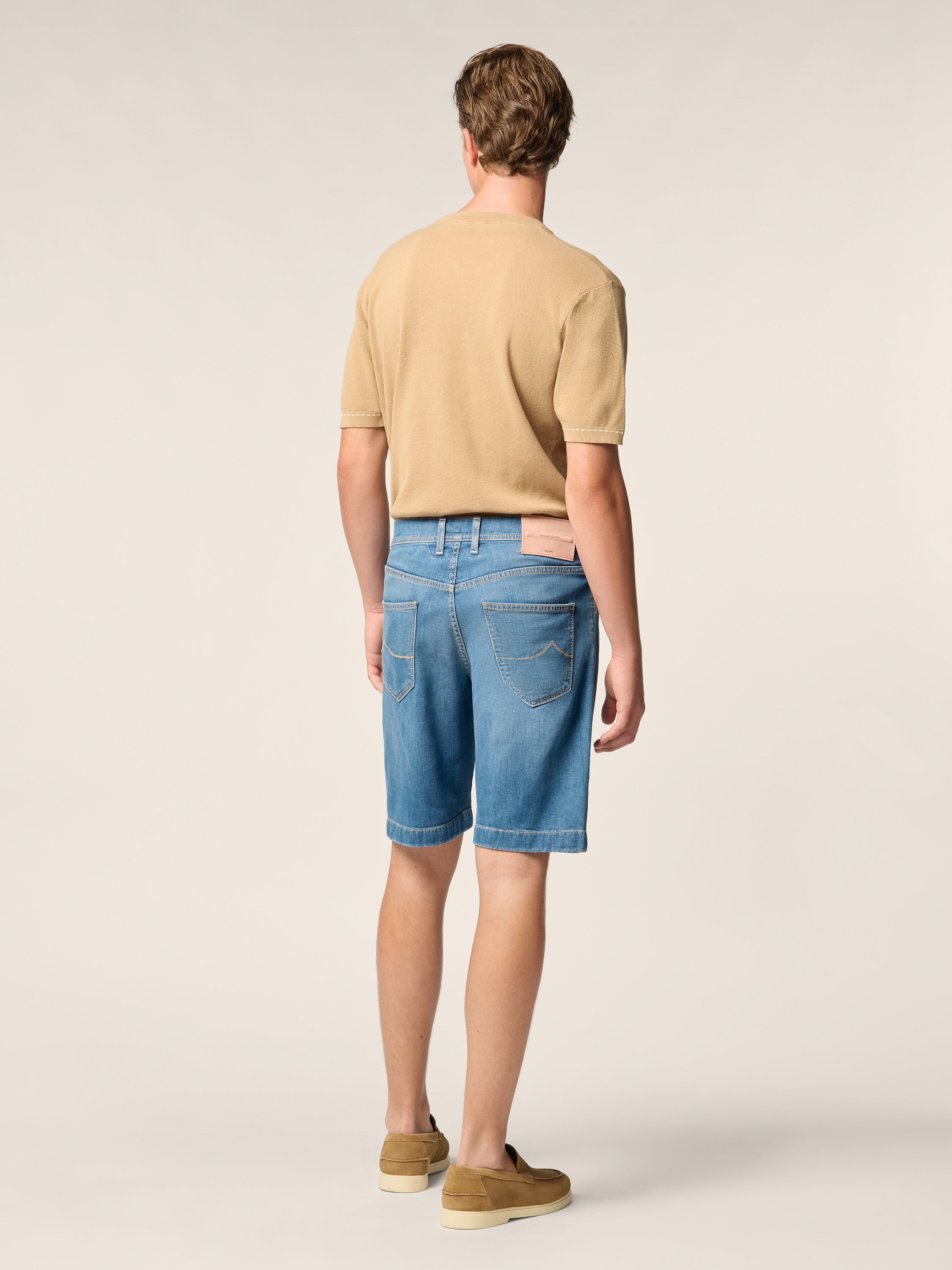 Bermudashorts Nicolas Slim aus hellblauem Power Stretch Denim mit Vintage-Waschung