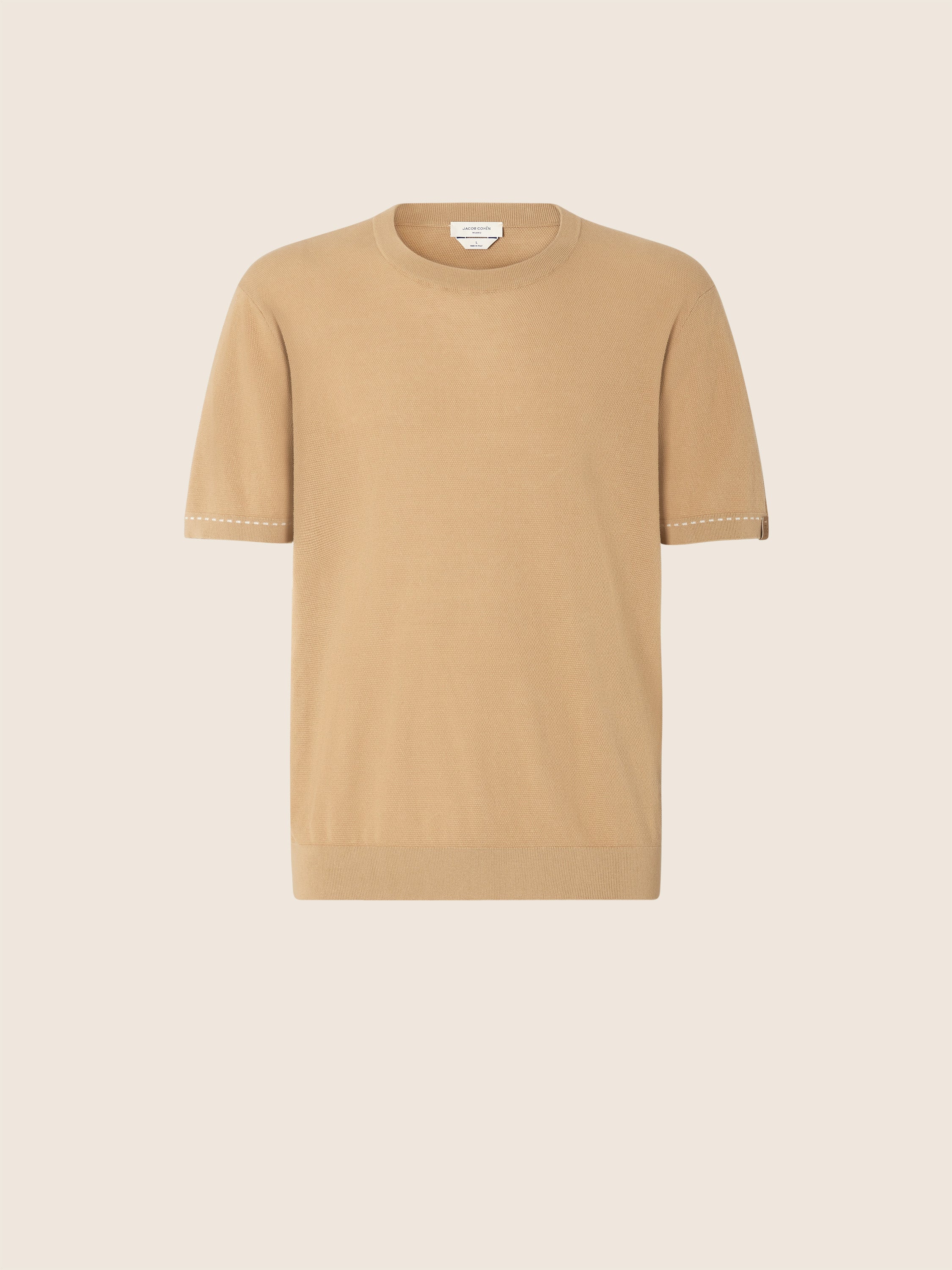 - Reine, gekämmte Baumwolle in Sandbraun mit grafischen Nahtdetails in Kontrastfarbe, Perlmuster, Feinheit 18
