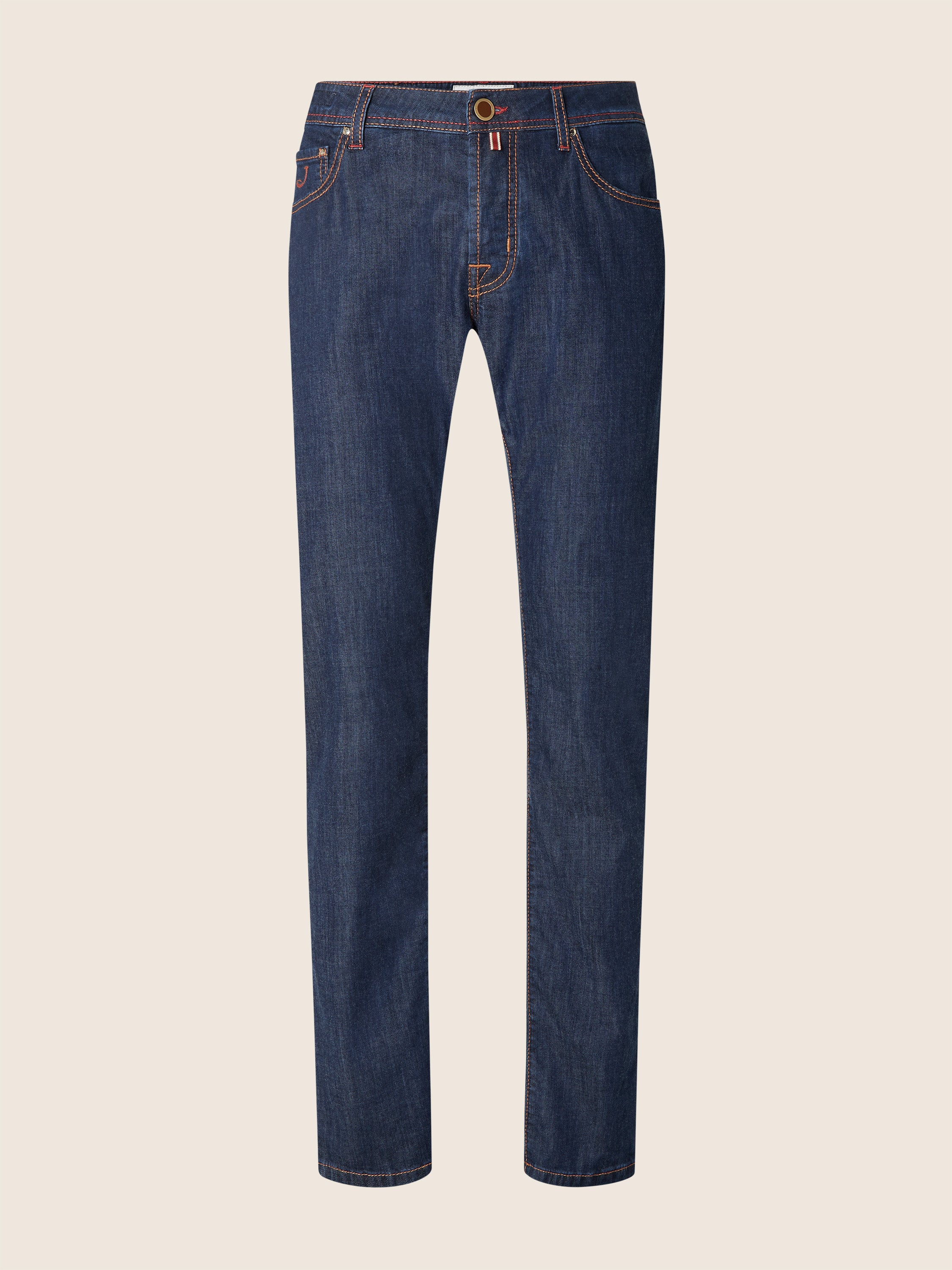 Bard Regular-Slim 5 Pocket Jeans in Dark Blue Power Stretch Denim with Rinse Wash