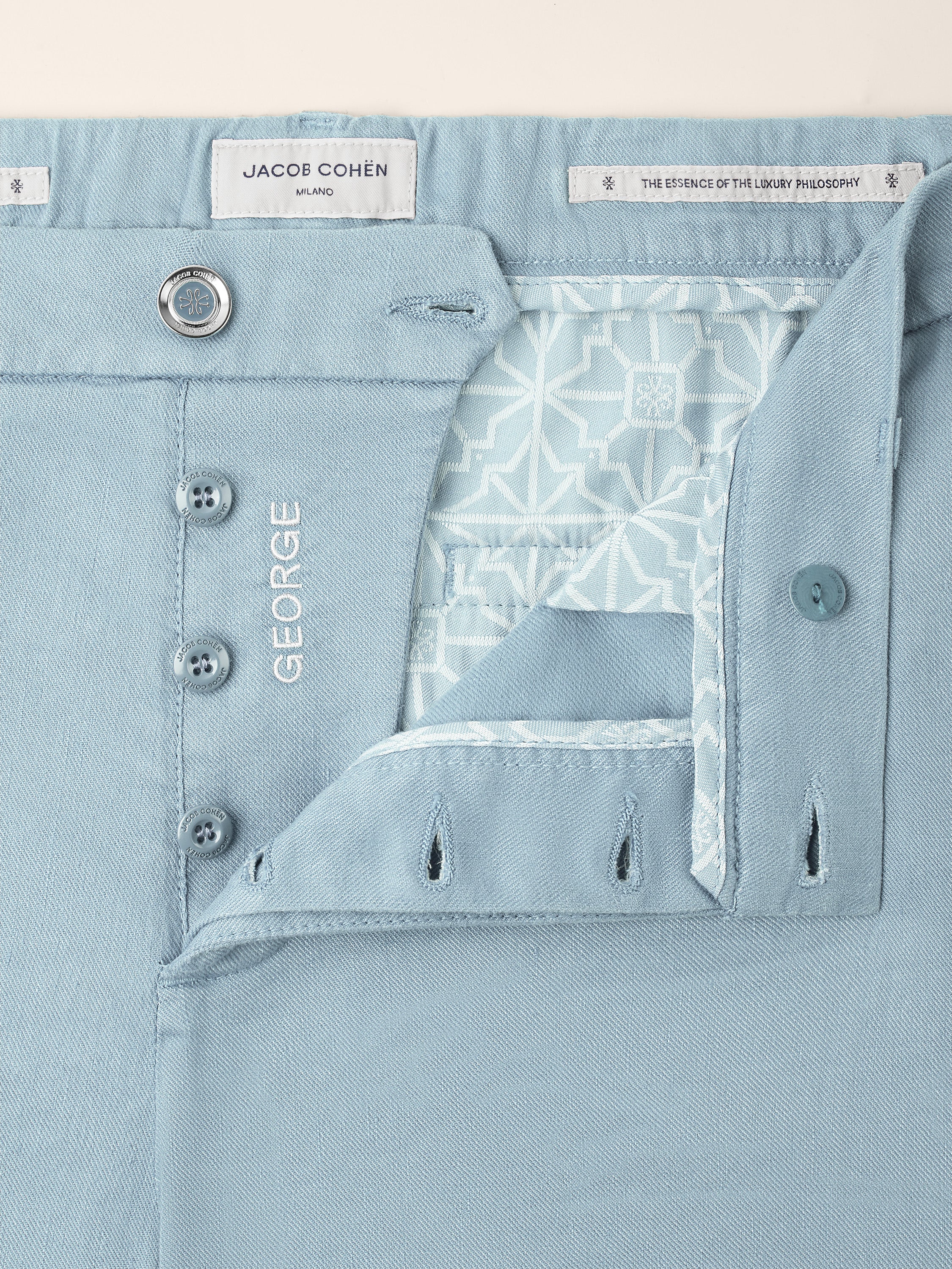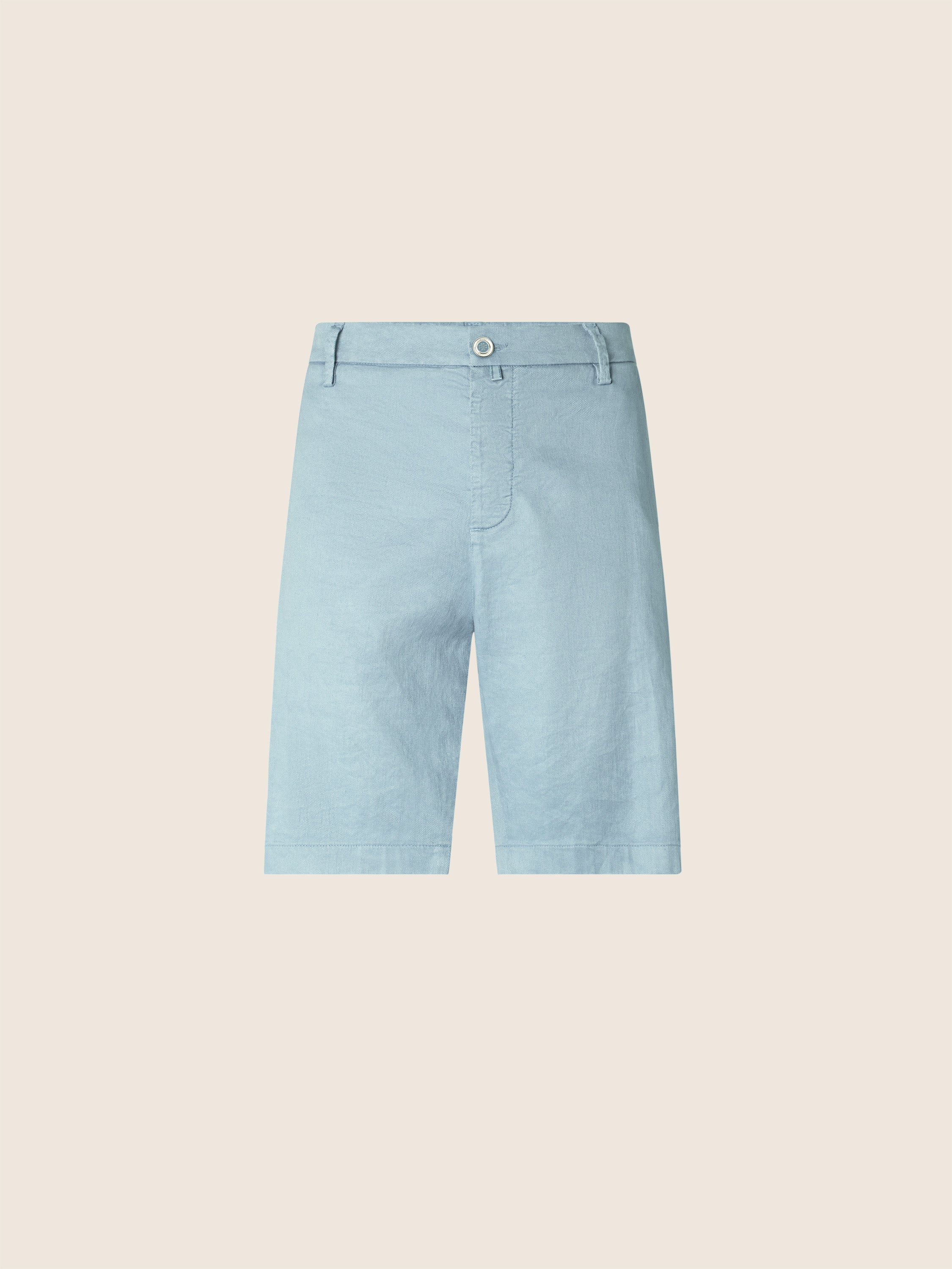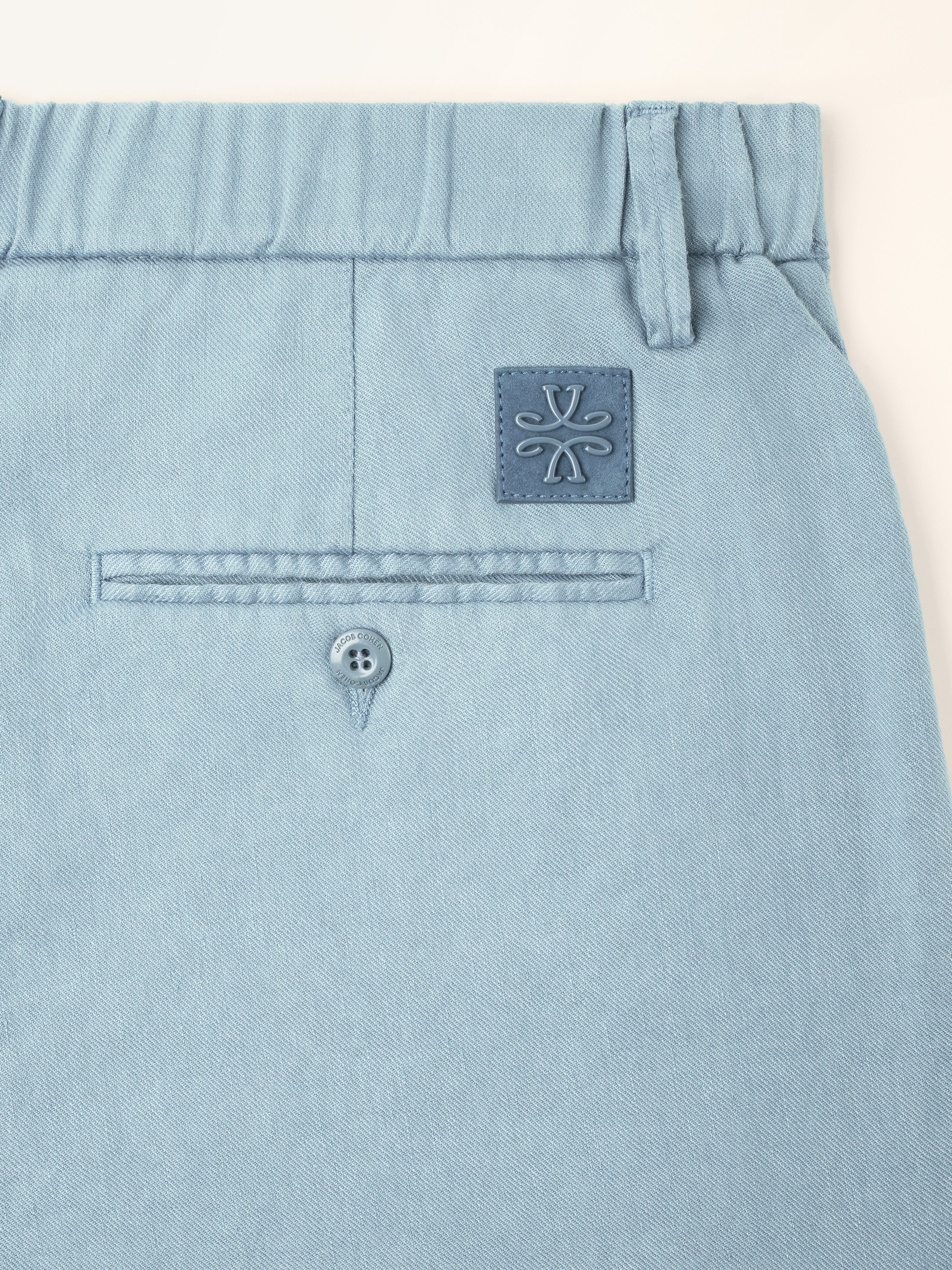 George Bermuda Pants in Sky Blue Cotton and Linen Stretch Gabardine