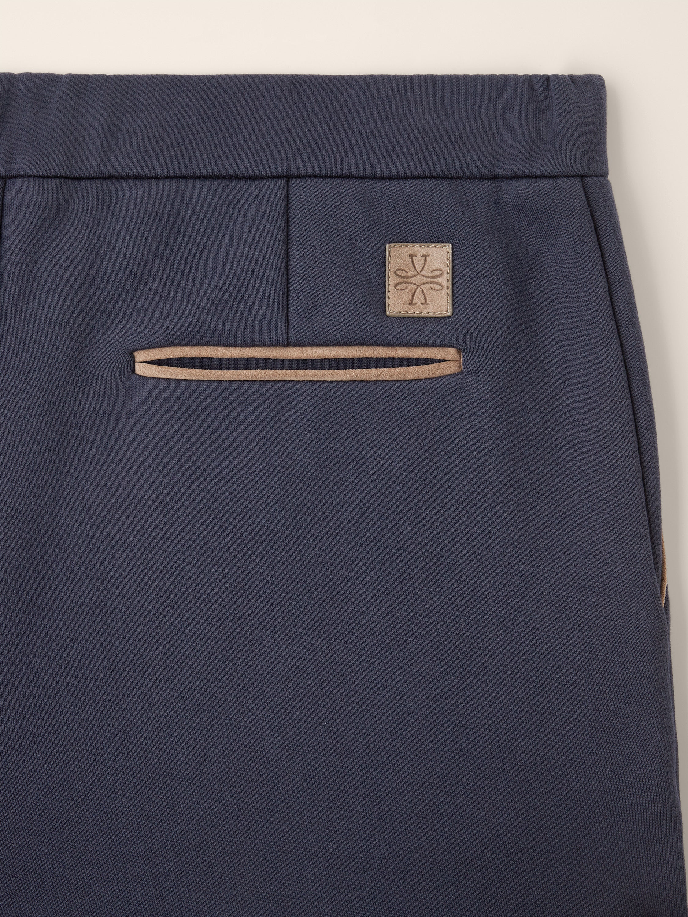 • Dark beige suede back patch with hot-stamped logo and frame