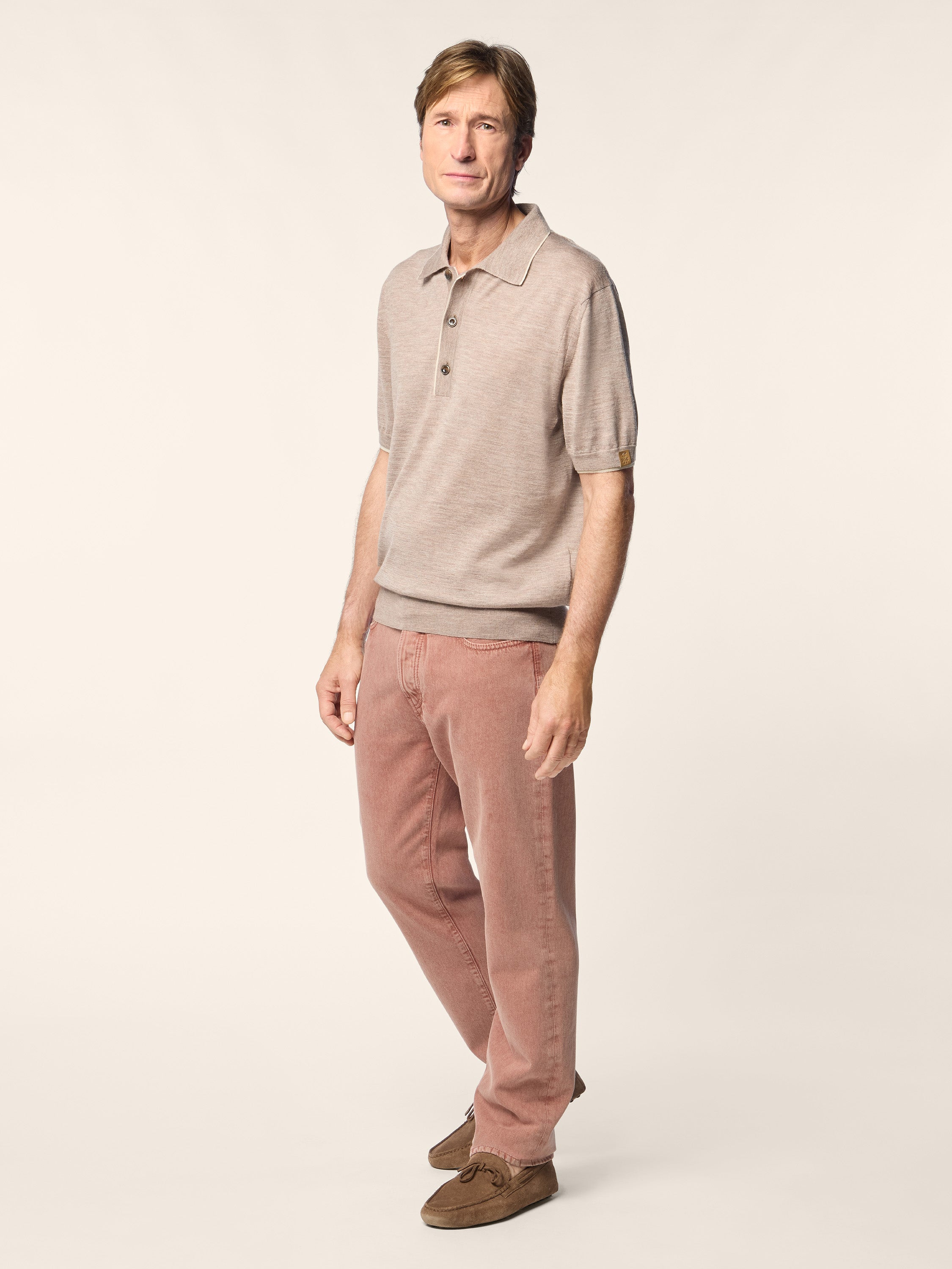 Polo Shirt in Dove Grey Melange Wool and Silk