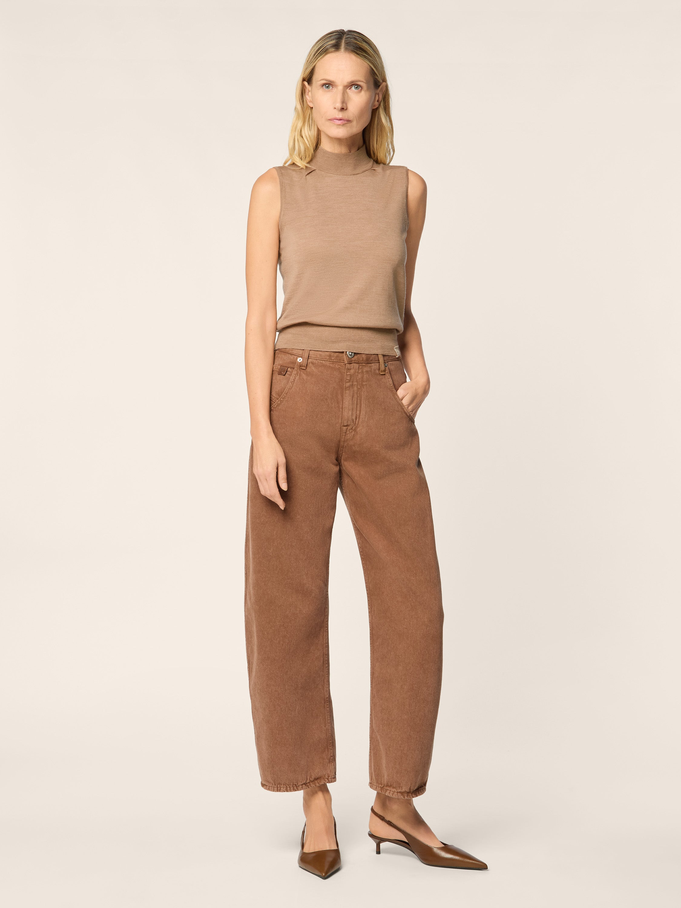 Lila Barrel 5 Pocket Trousers in Cocoa Cotton Bull