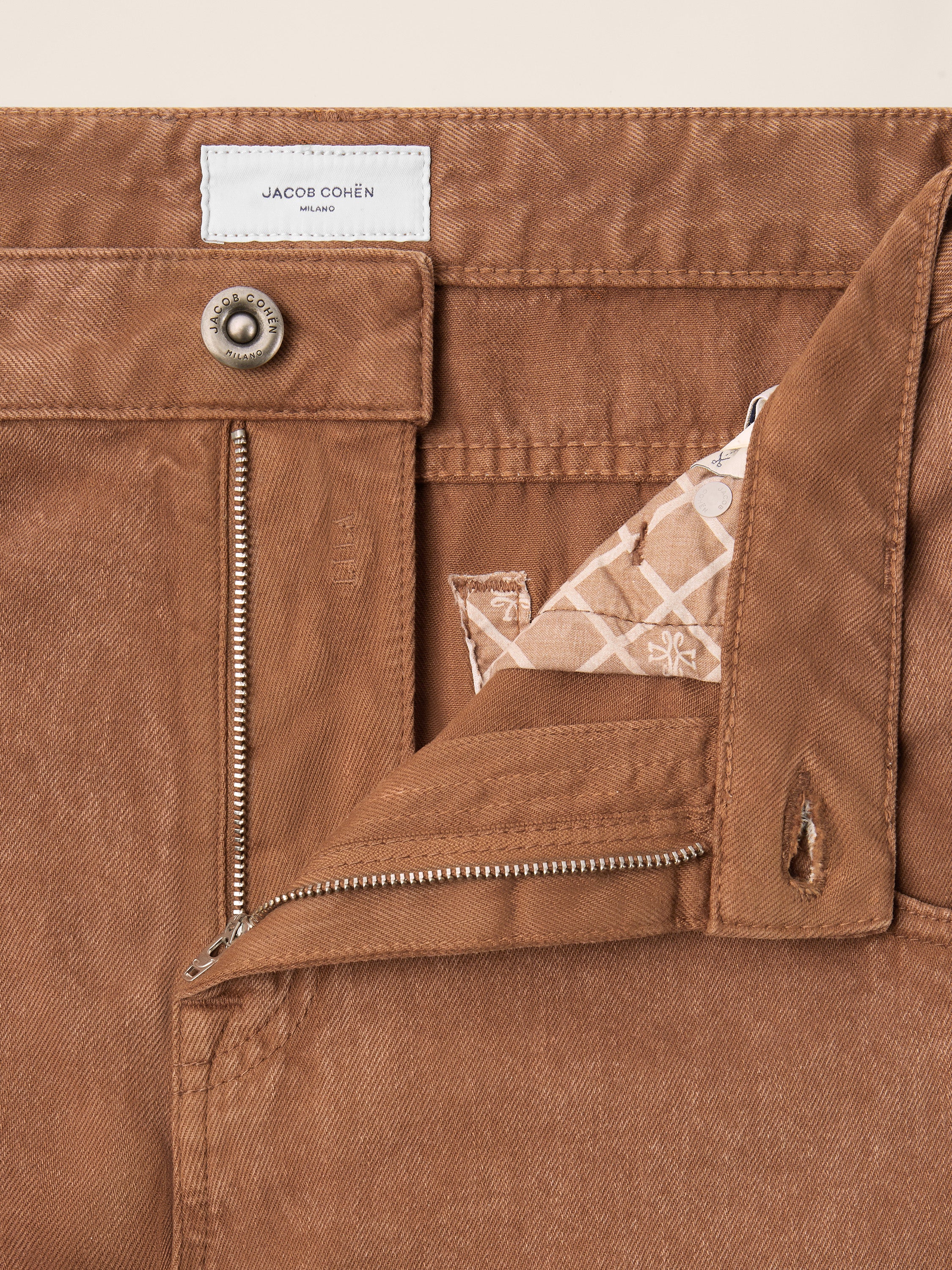 • Cocoa-brown pure cotton bull fabric, garment-dyed