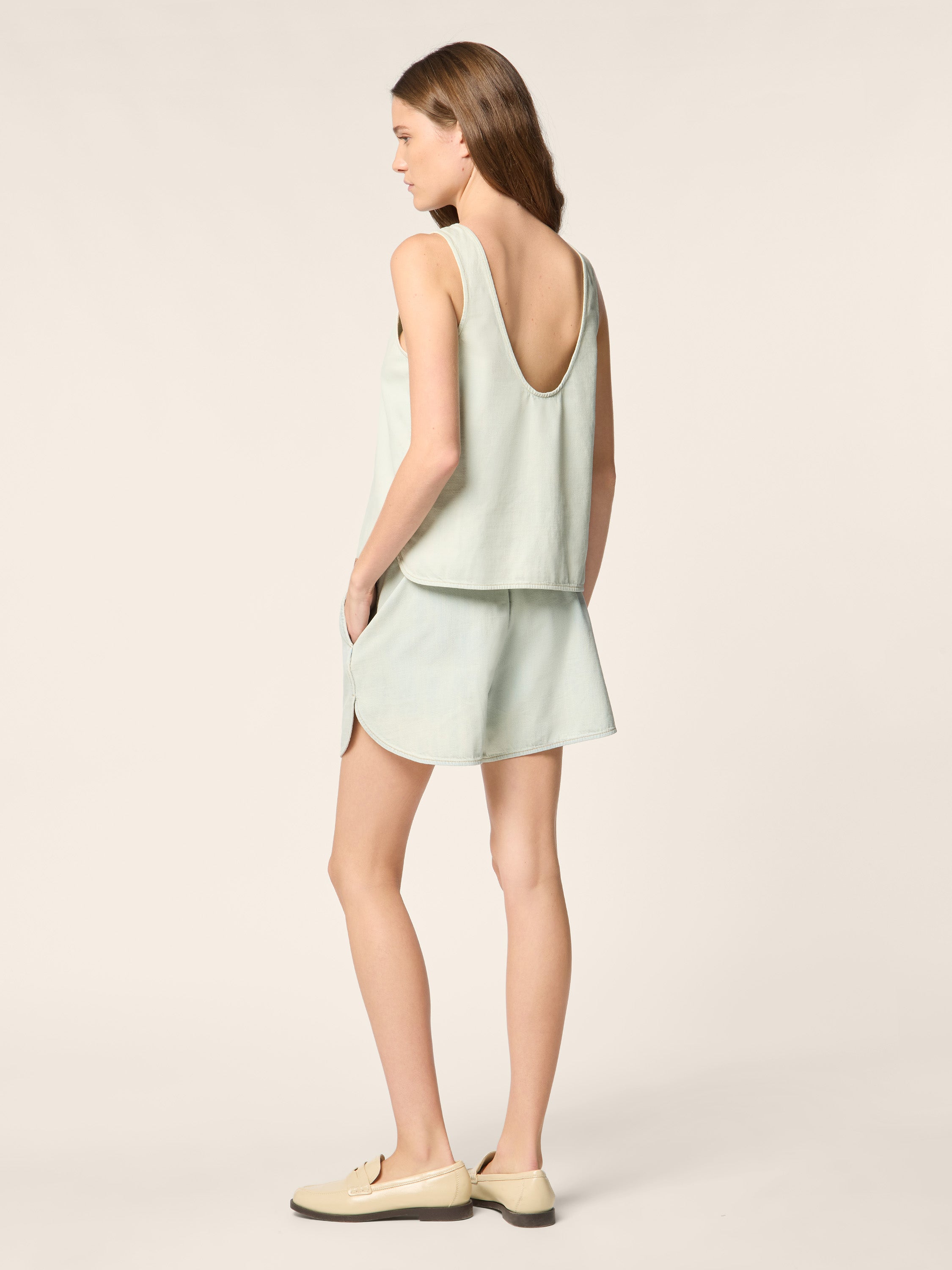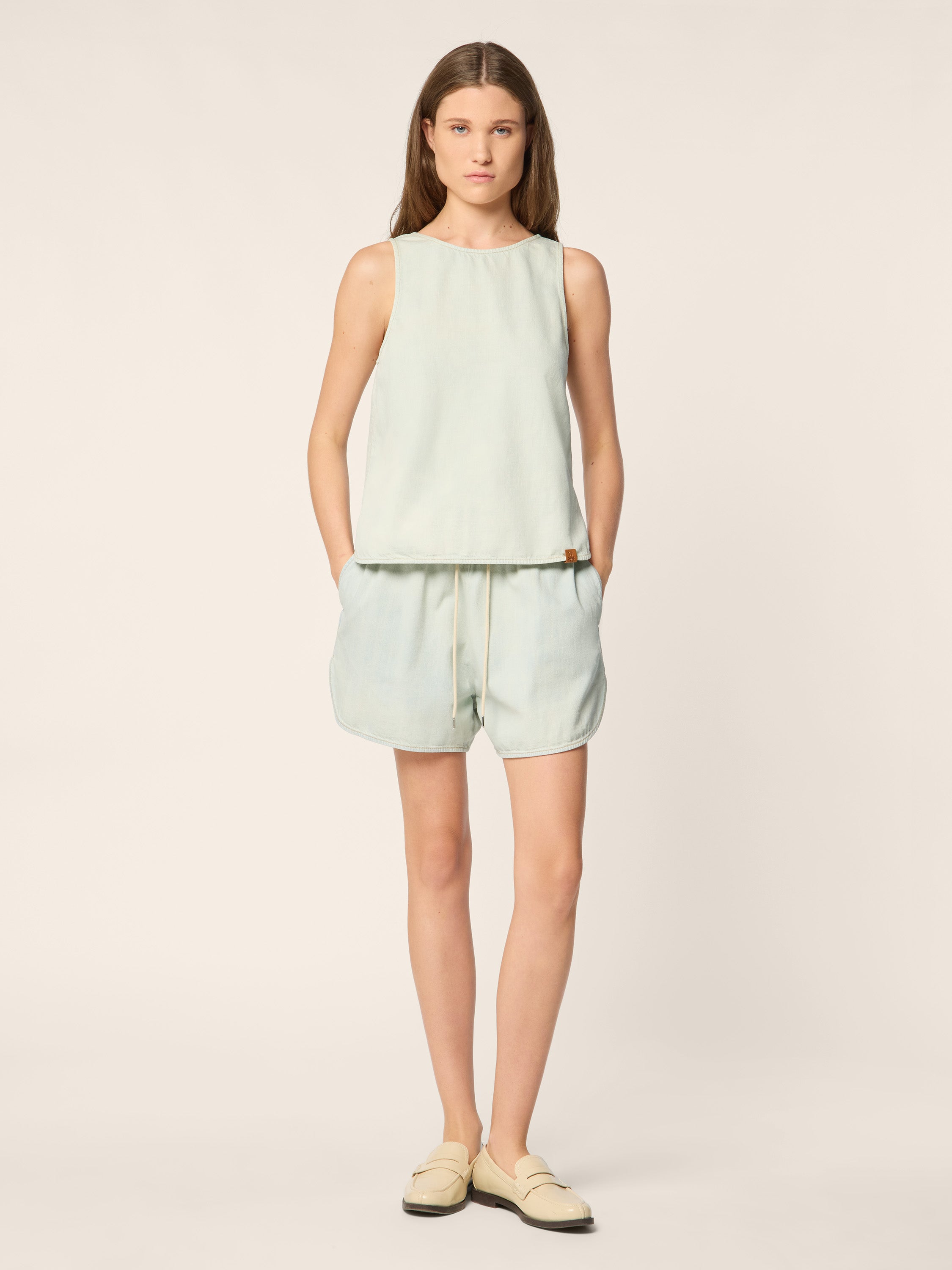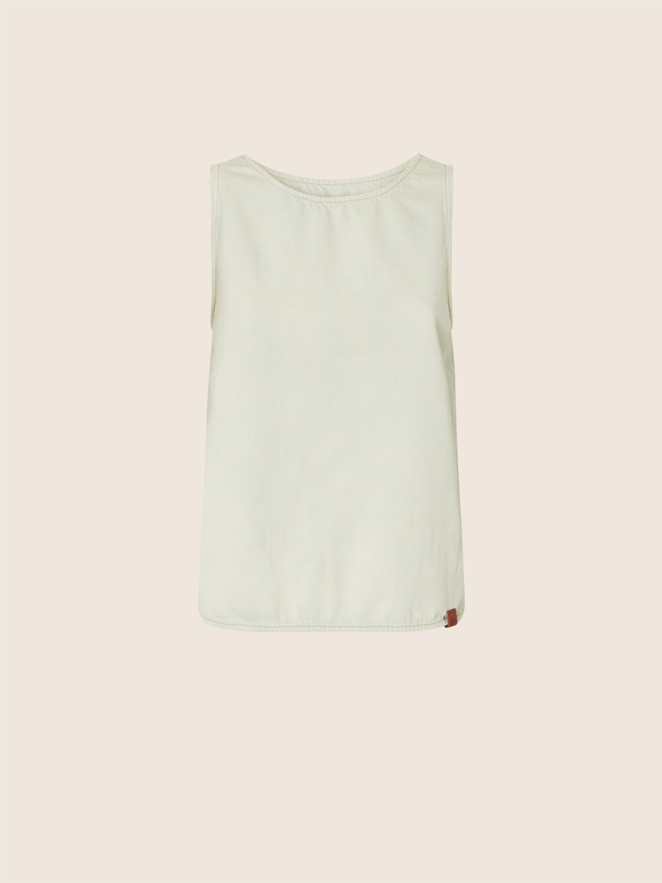 Tank Top in Light Blue Lightweight Denim with Bleach Wash