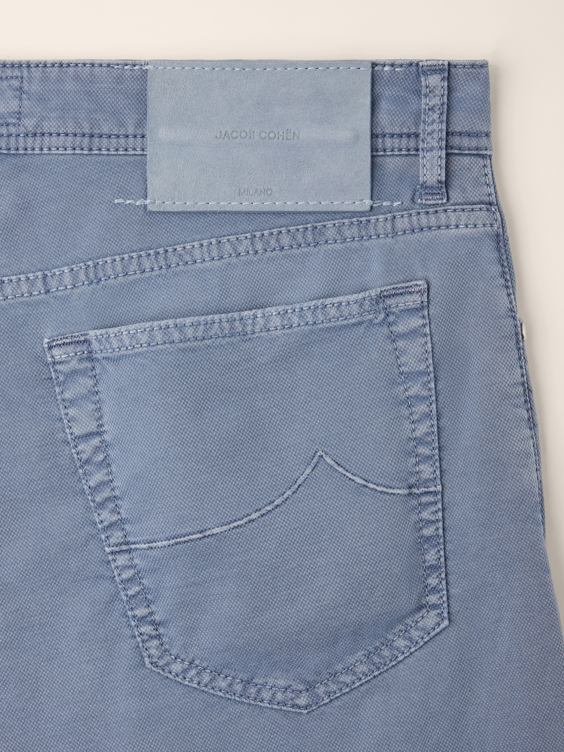 - Colony blue stretch-cotton fabric with micro honeycomb texture, garment-dyed