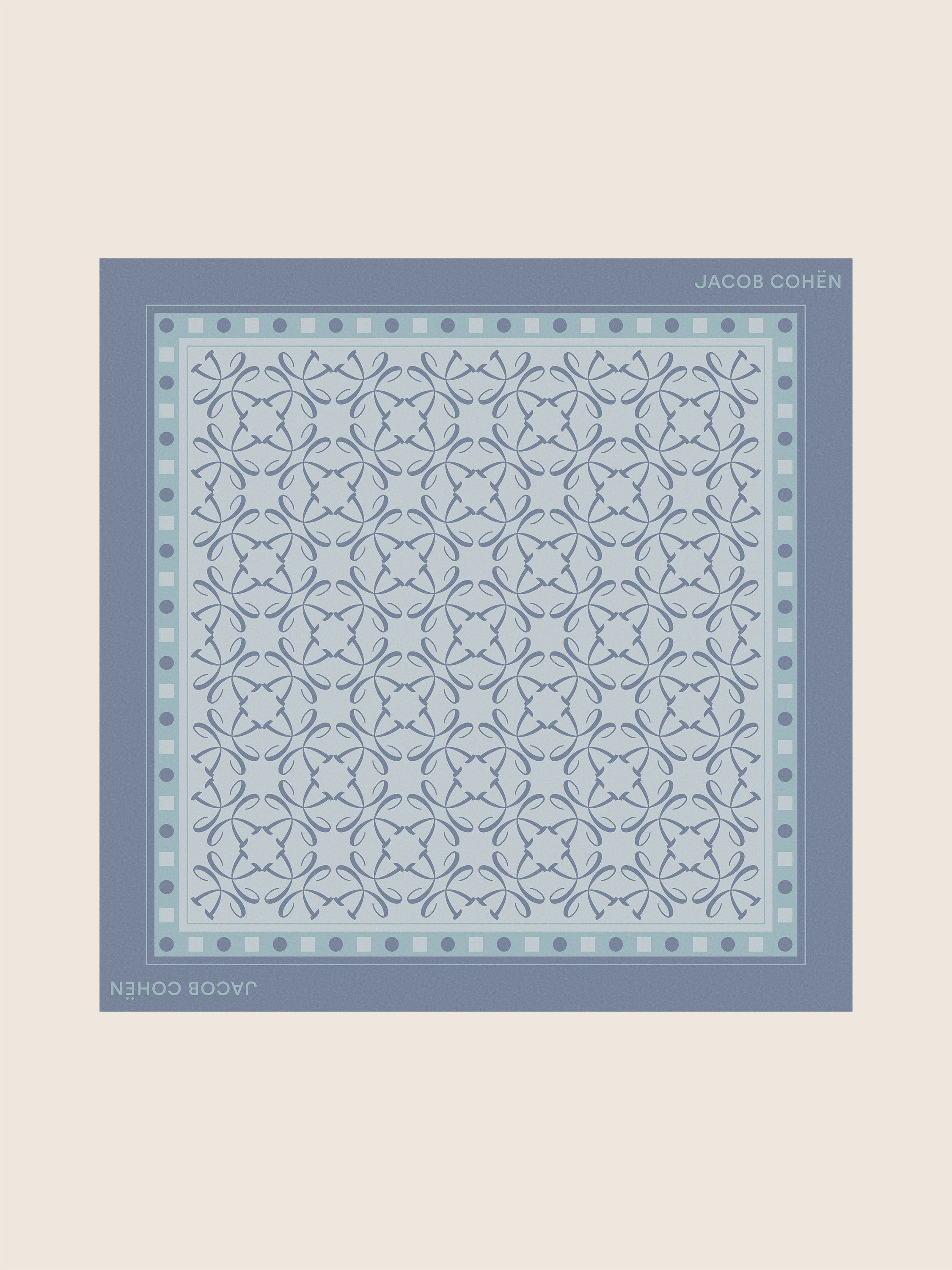 - Includes a cotton bandana with geometric monogram print in shades of light blue