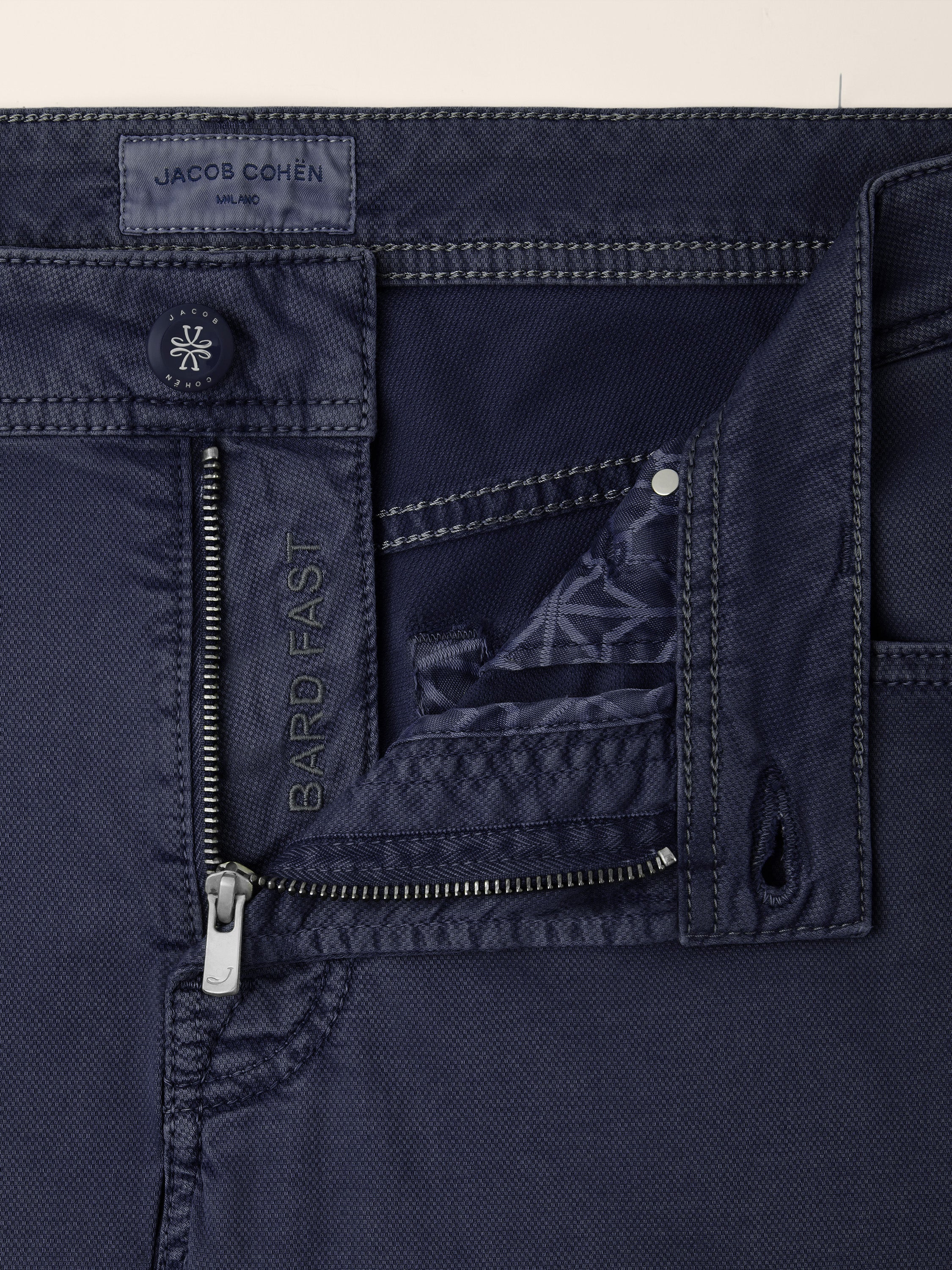 Bard Fast Regular-Slim 5 Pocket Pants in Caribbean Blue Honeycomb Stretch Cotton