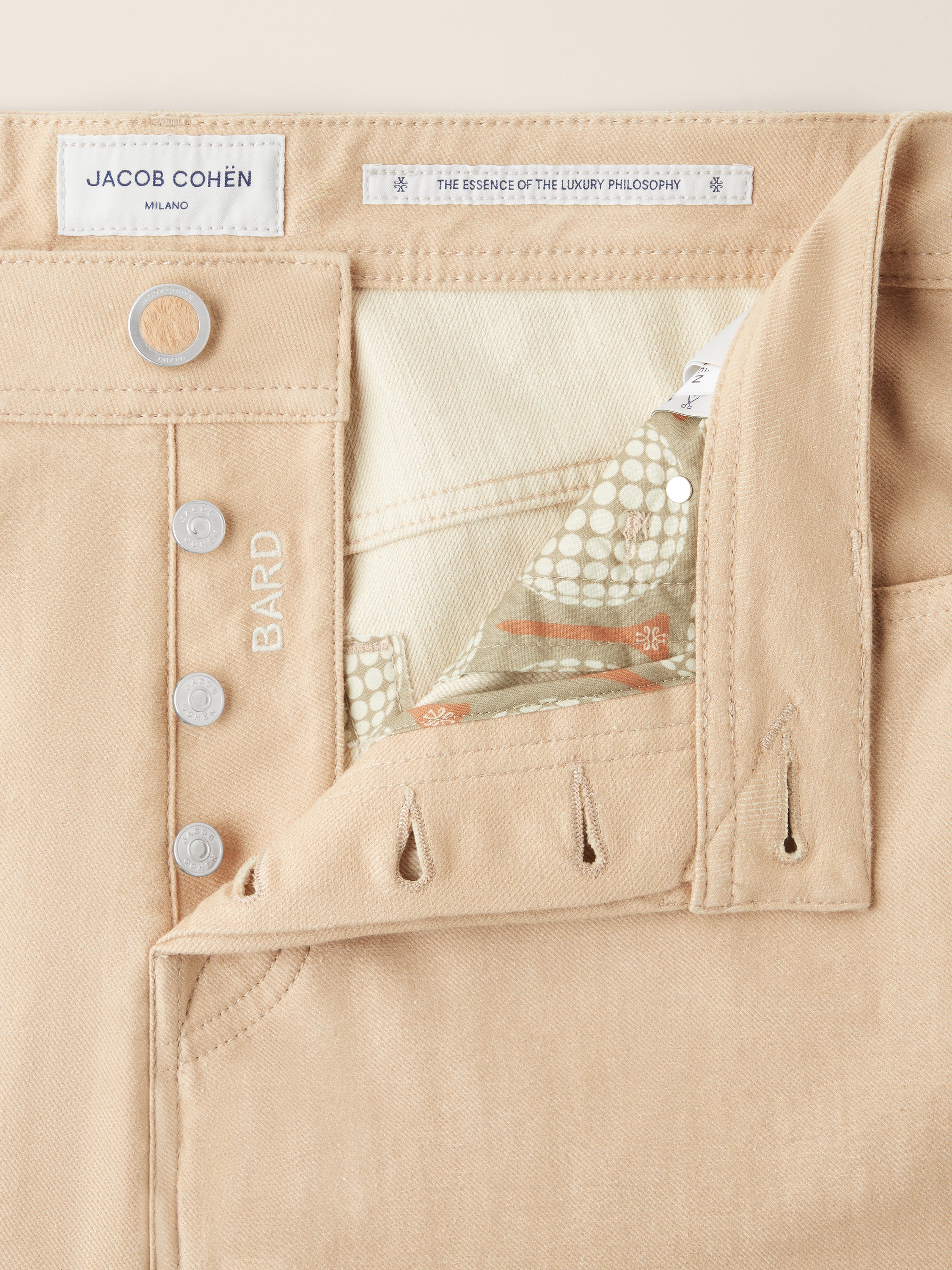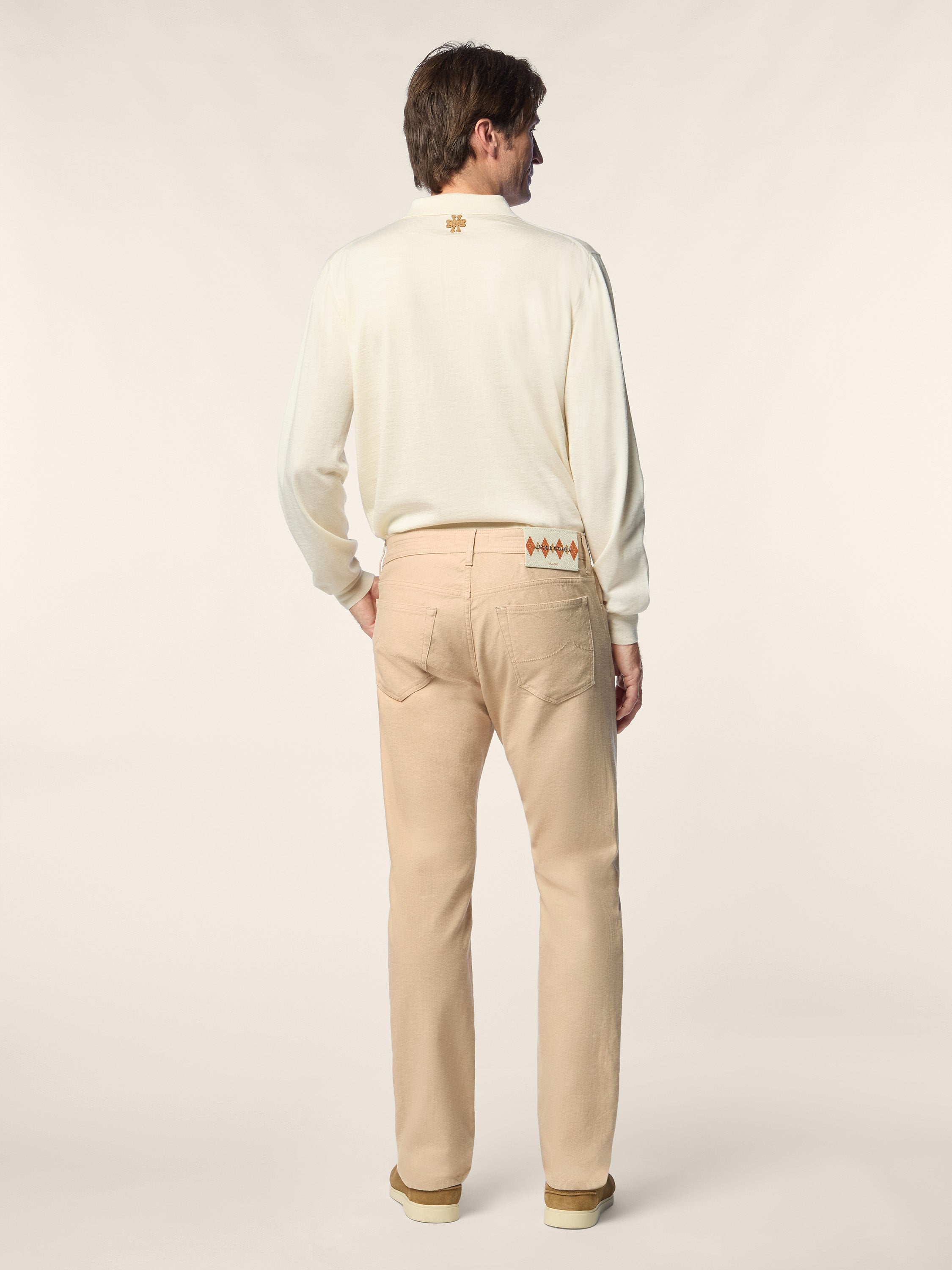 Bard Regular-Slim 5 Pocket Pants in Apricot Pink Stretch Cotton Drill Bard - Pants in Stretch Drill