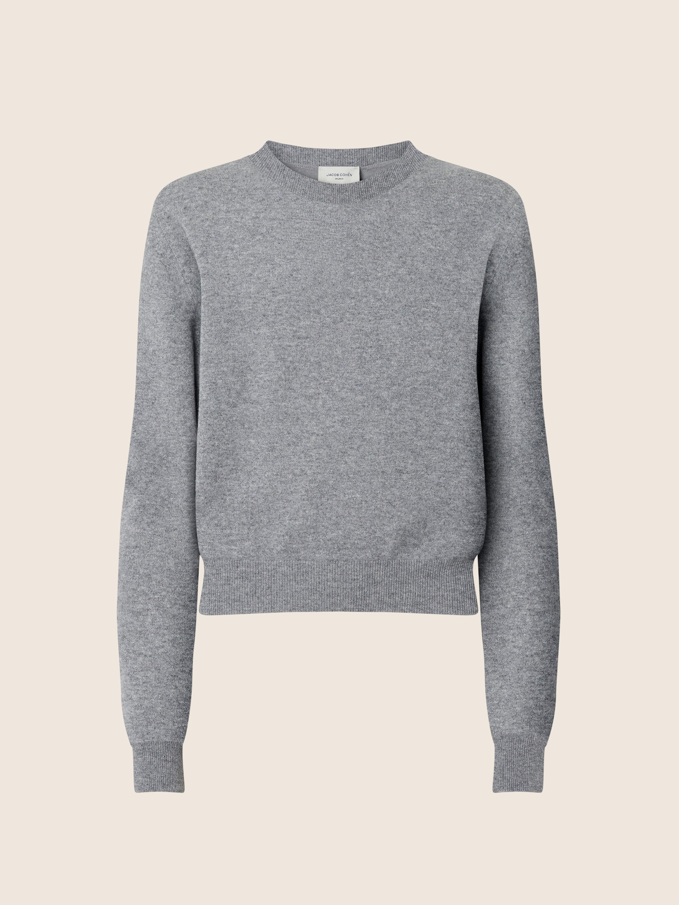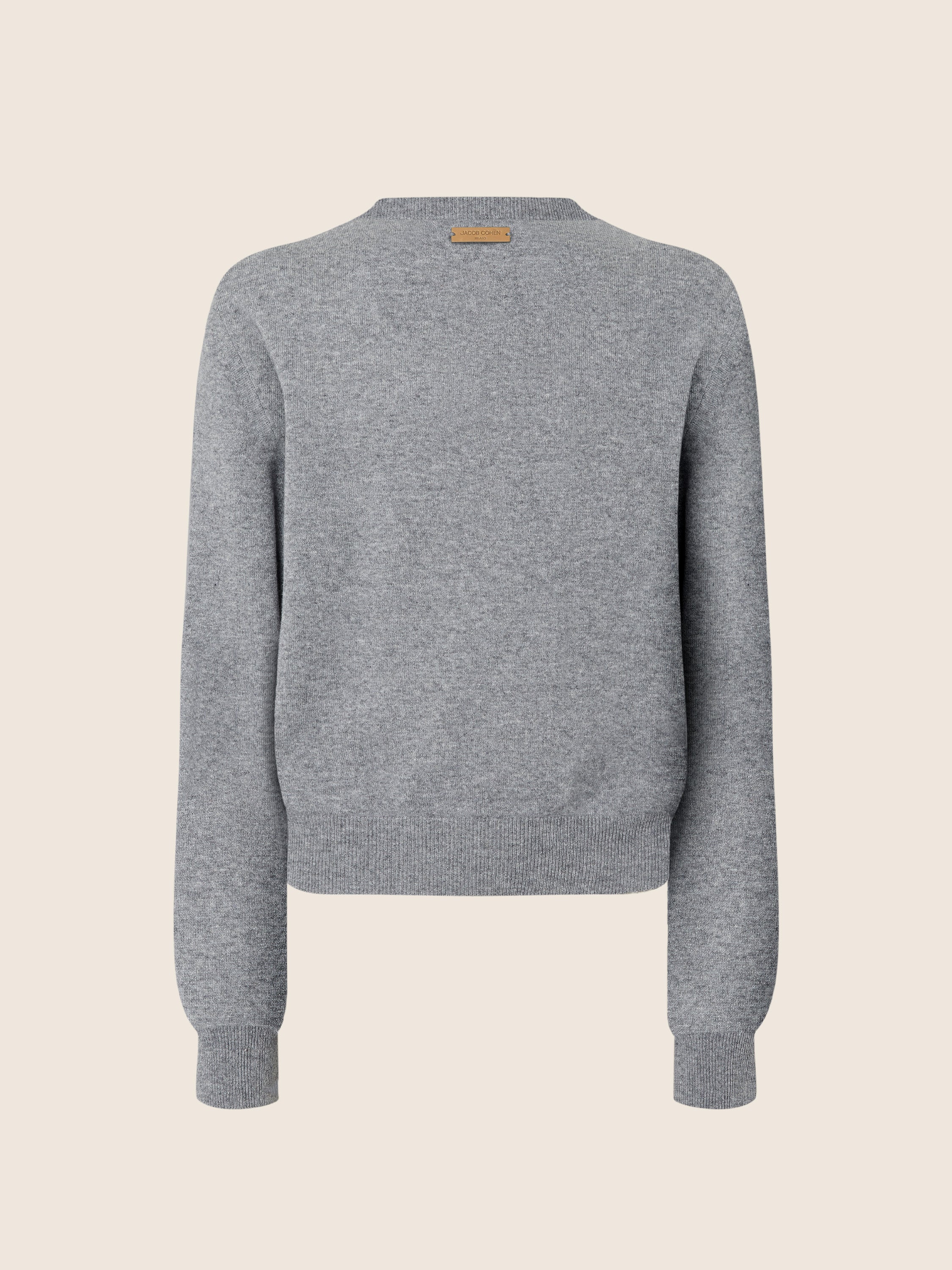 - Light grey melange pure cashmere, plain stitch gauge 12
