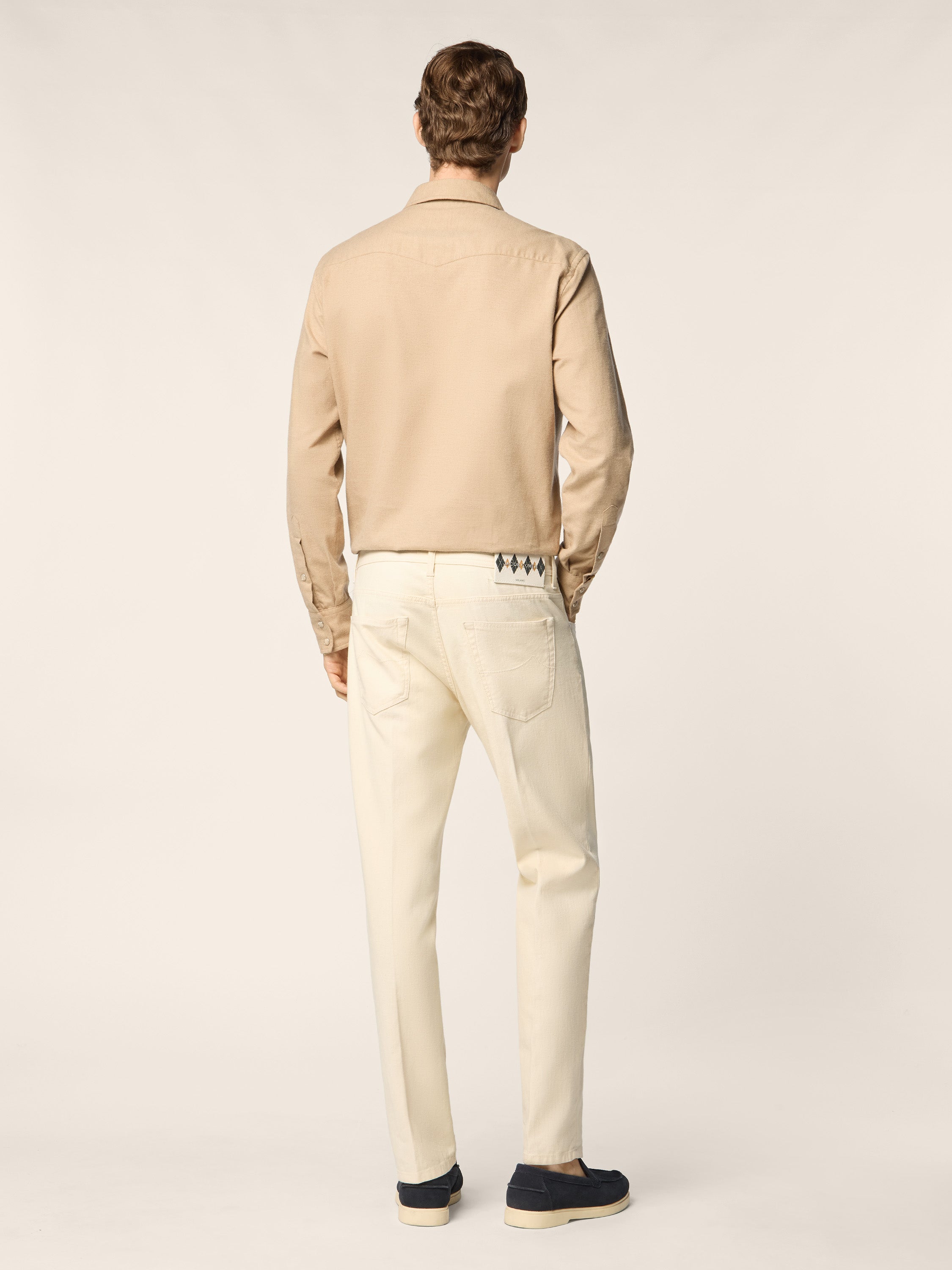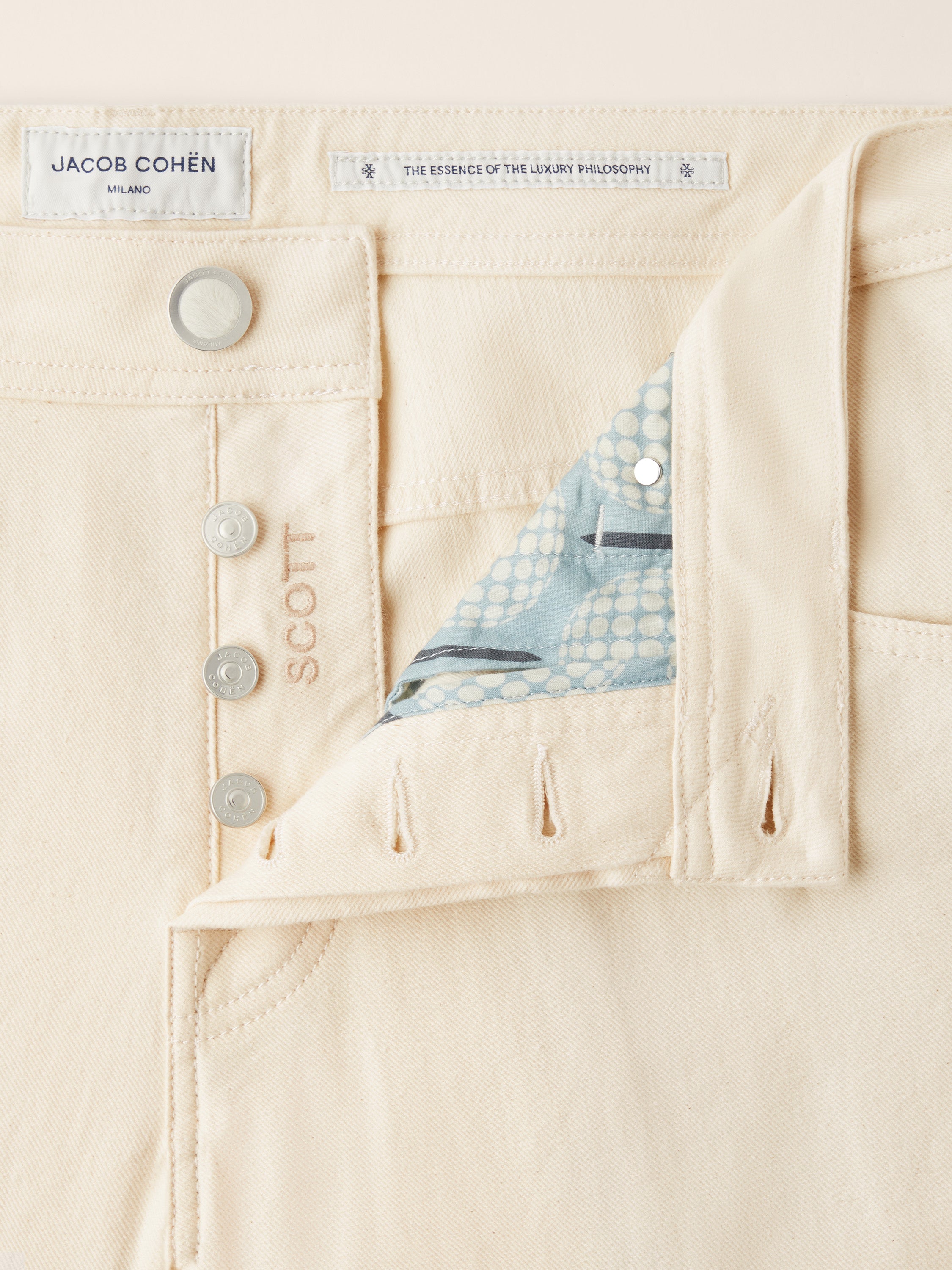 Scott Carrot Slim 5 Pocket Pants in Cream Stretch Cotton Drill