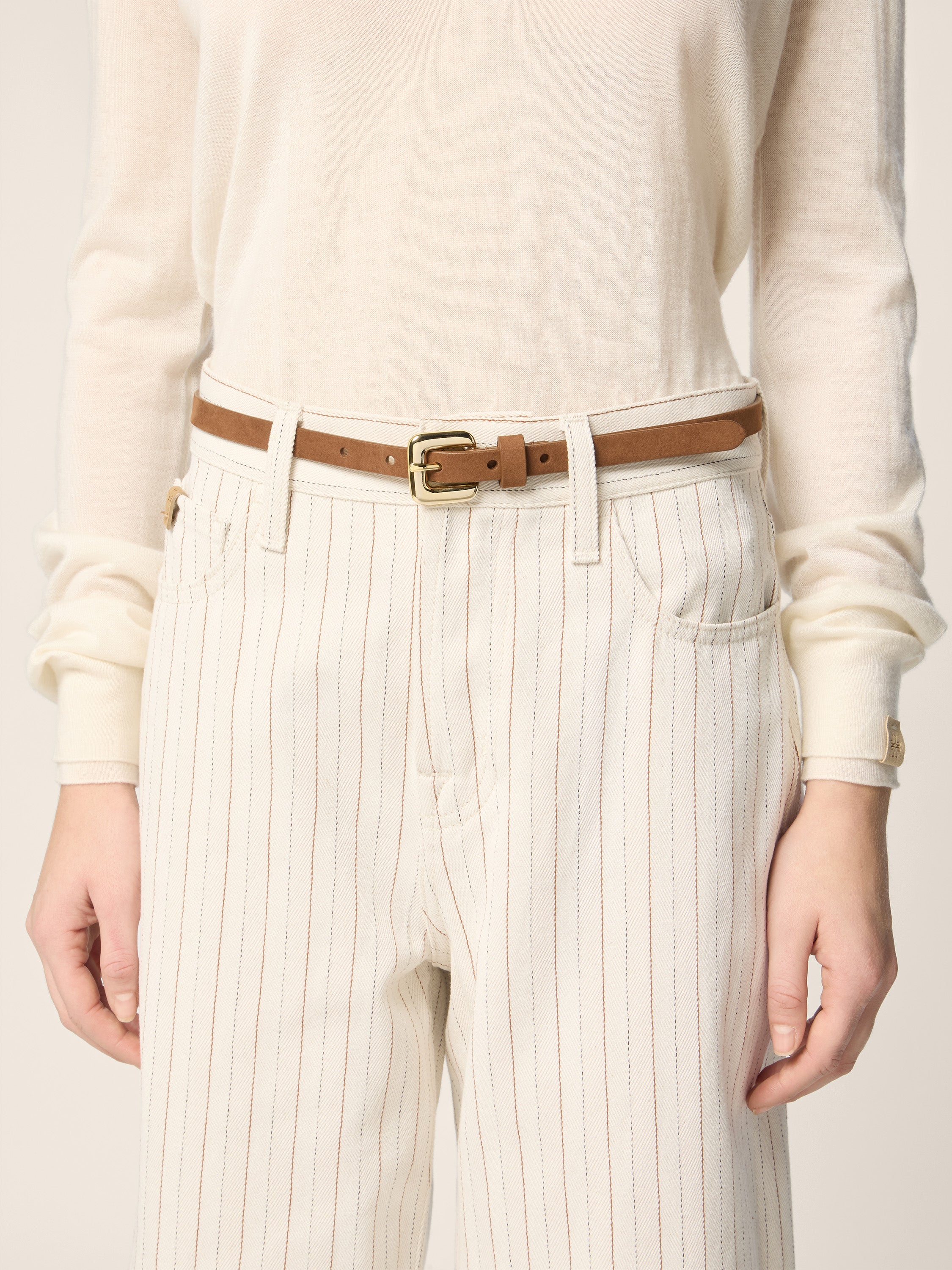 - Thin belt with metal buckle and loop