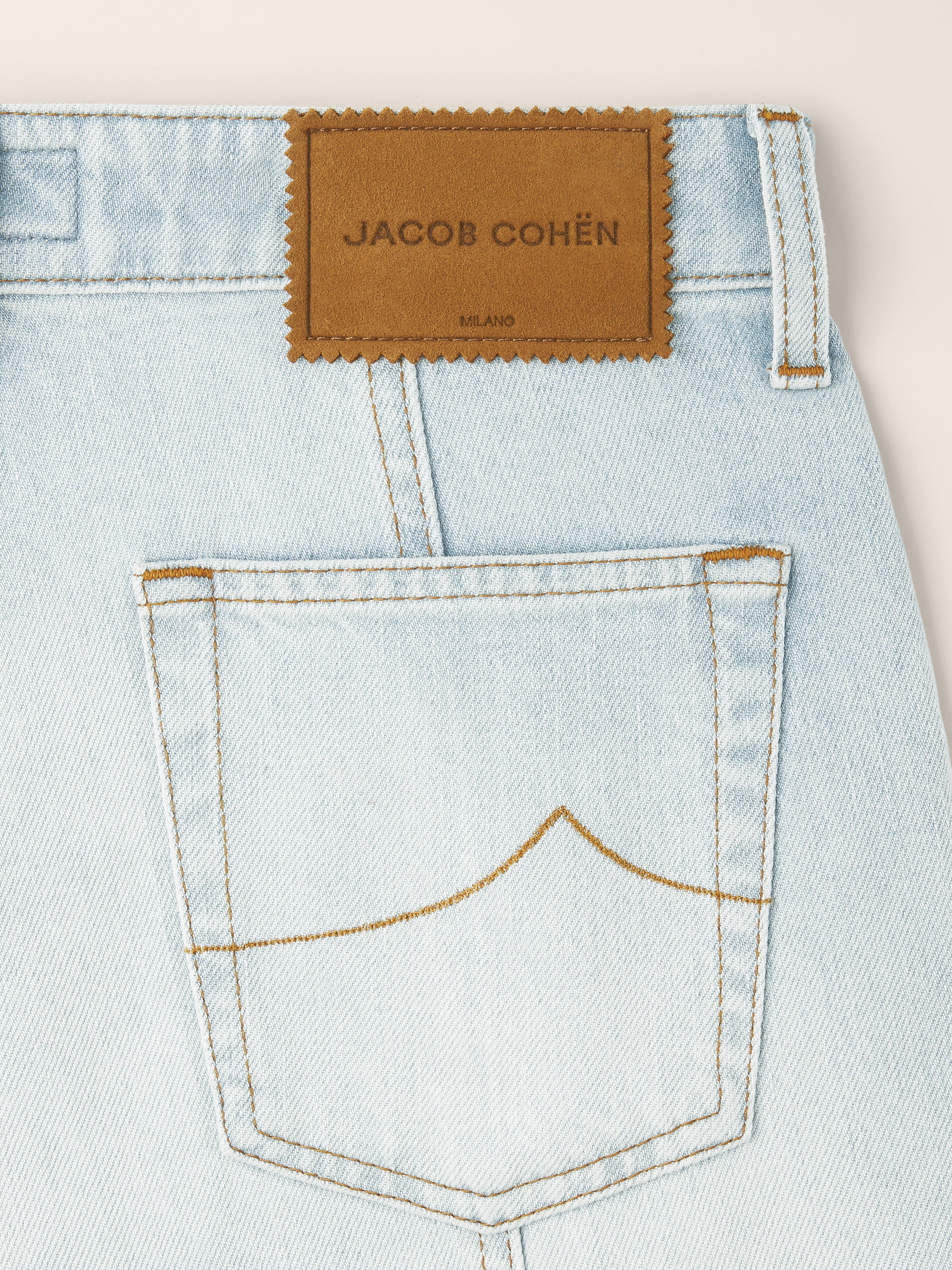 - Light blue cotton and lyocell comfort denim with a vintage-effect stone bleach wash, hand-sanded and enriched with whiskers and a dirt finish with mineral pigments (10 ounces)