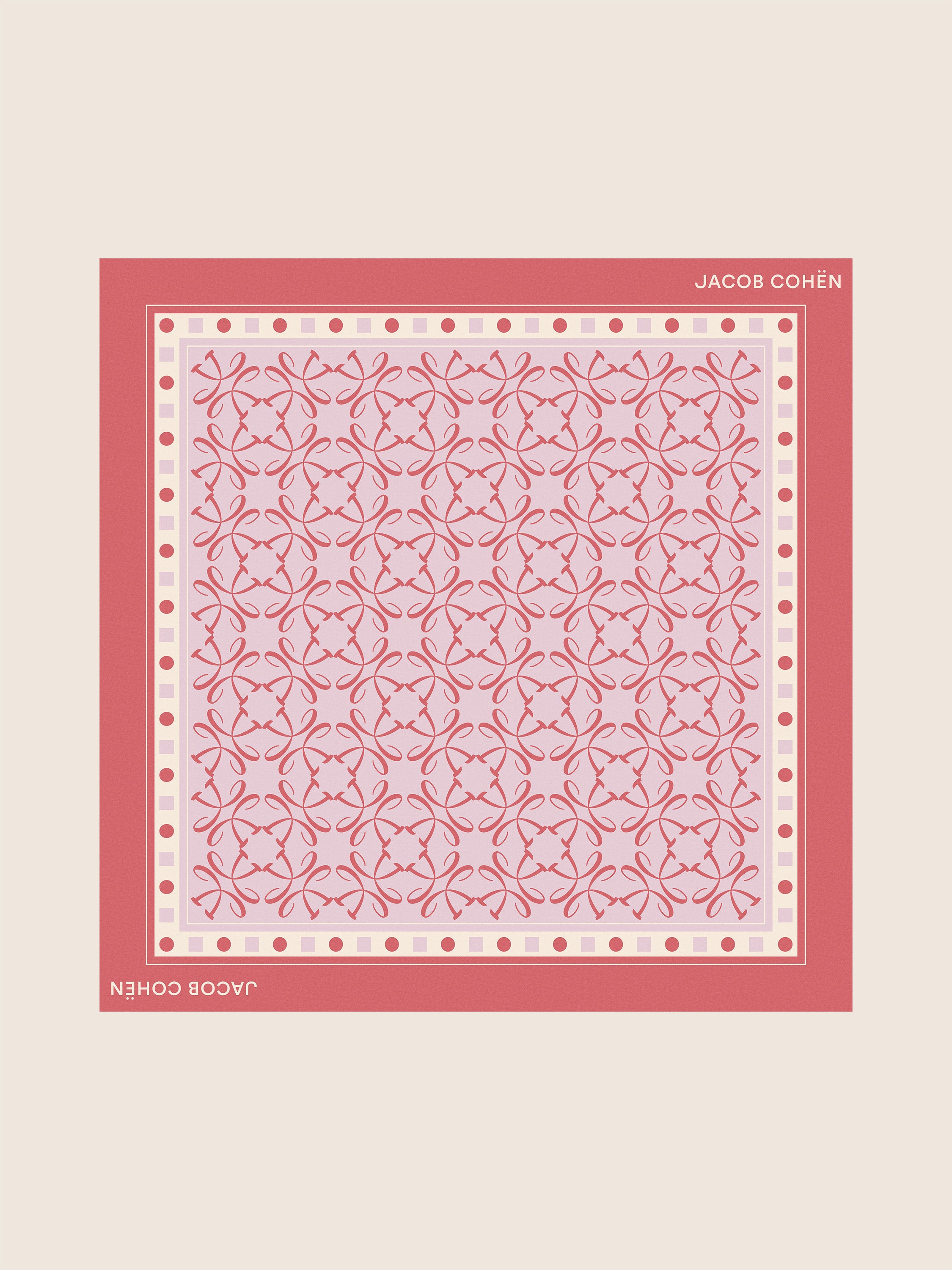 • Includes a cotton bandana with geometric monogram print in shades of red