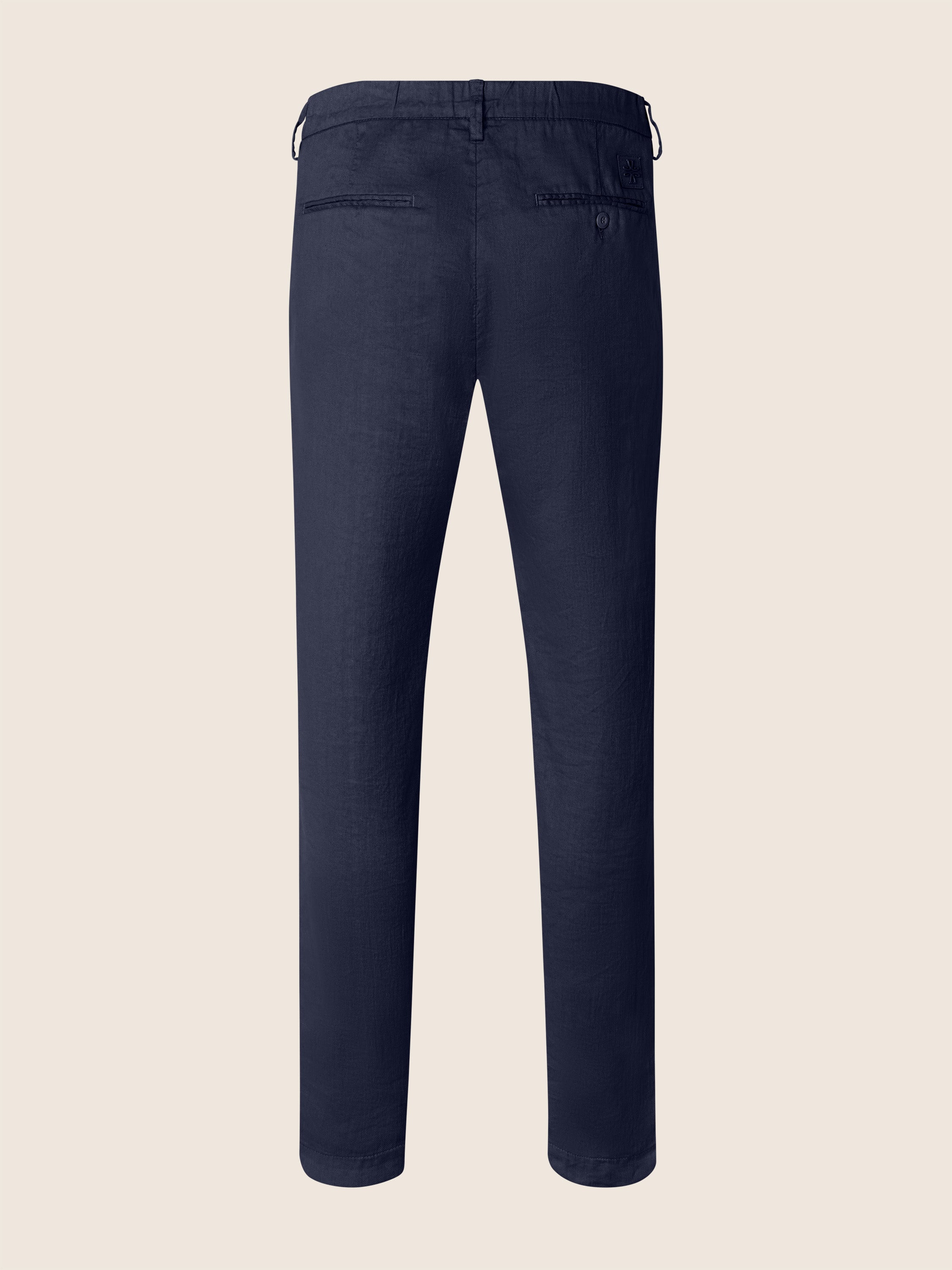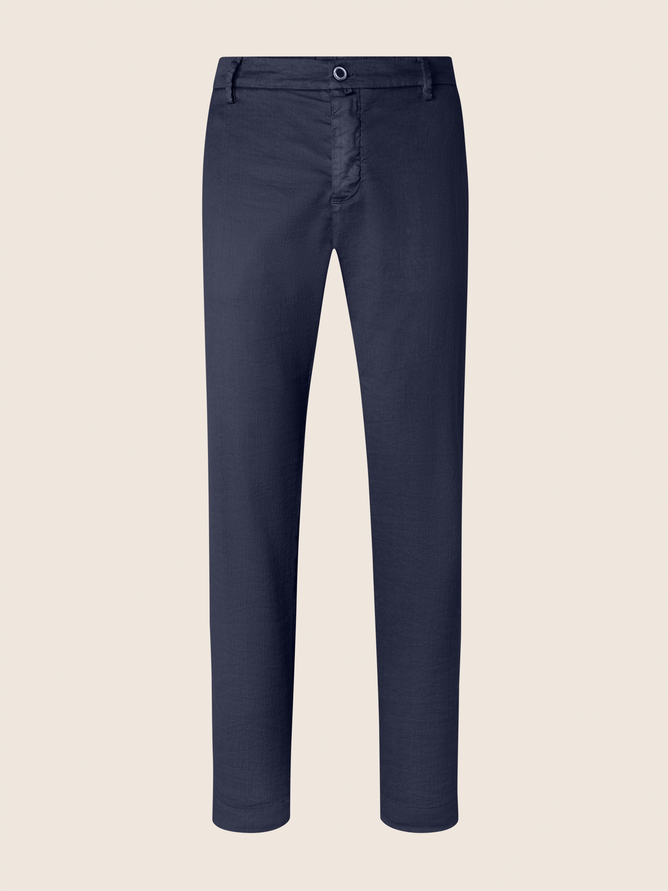 • Caribbean blue cotton and linen stretch-gabardine fabric, garment-dyed