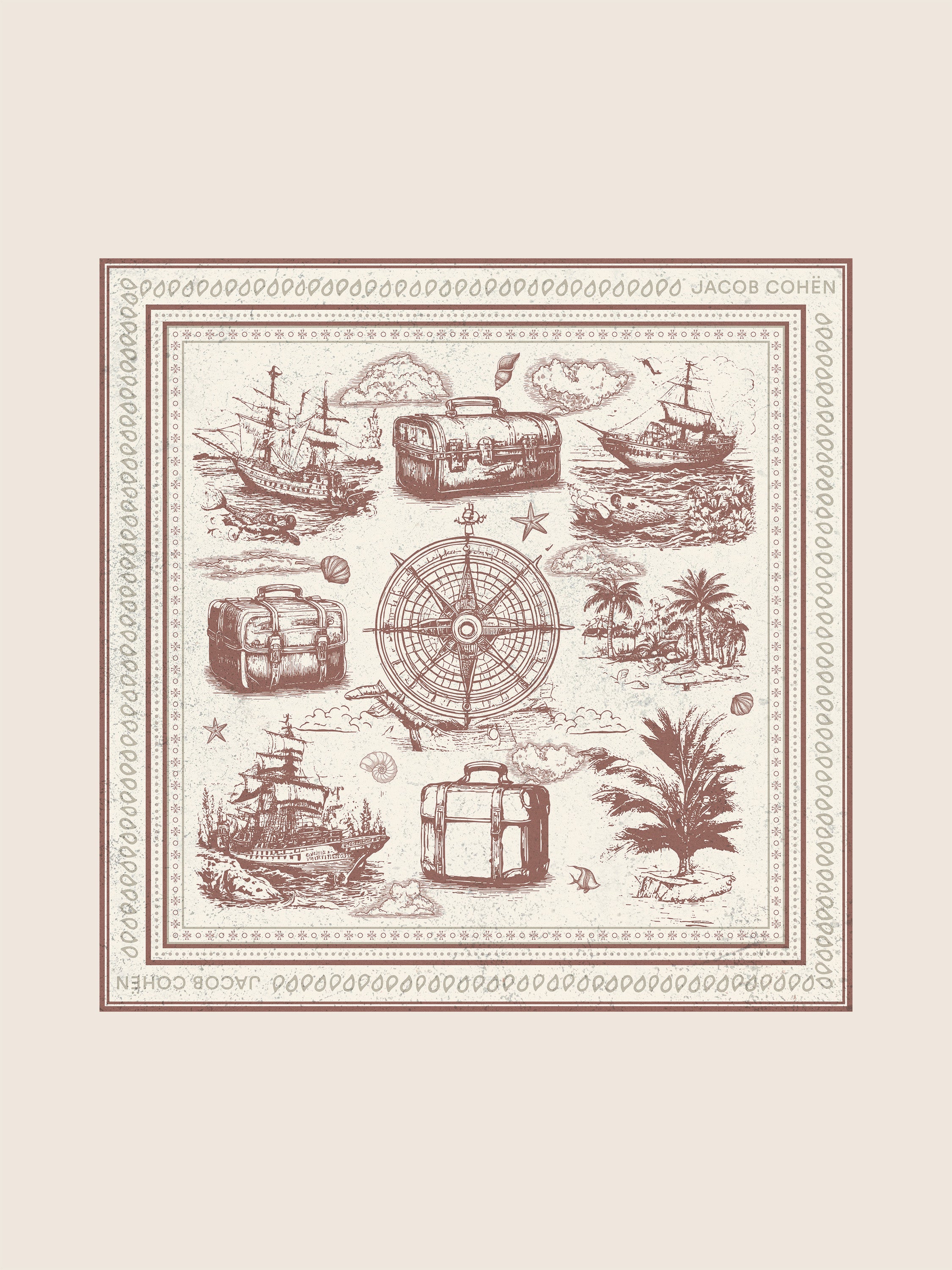 • Includes a cotton bandana with vintage-style travel drawings in shades of butter white, and spool of thread
