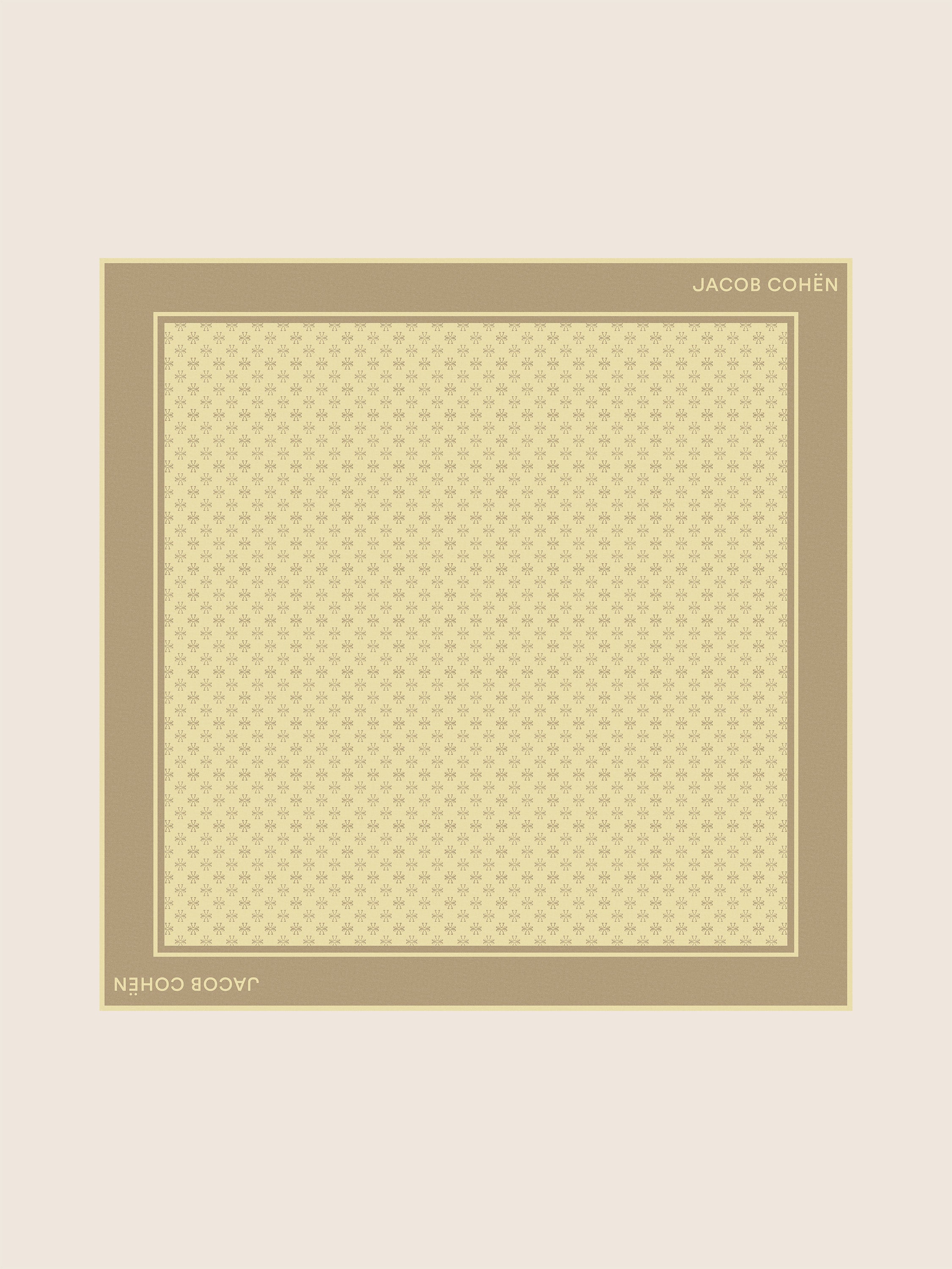 • Includes a cotton bandana with tie-motif print in shades of beige and yellow, and spool of thread