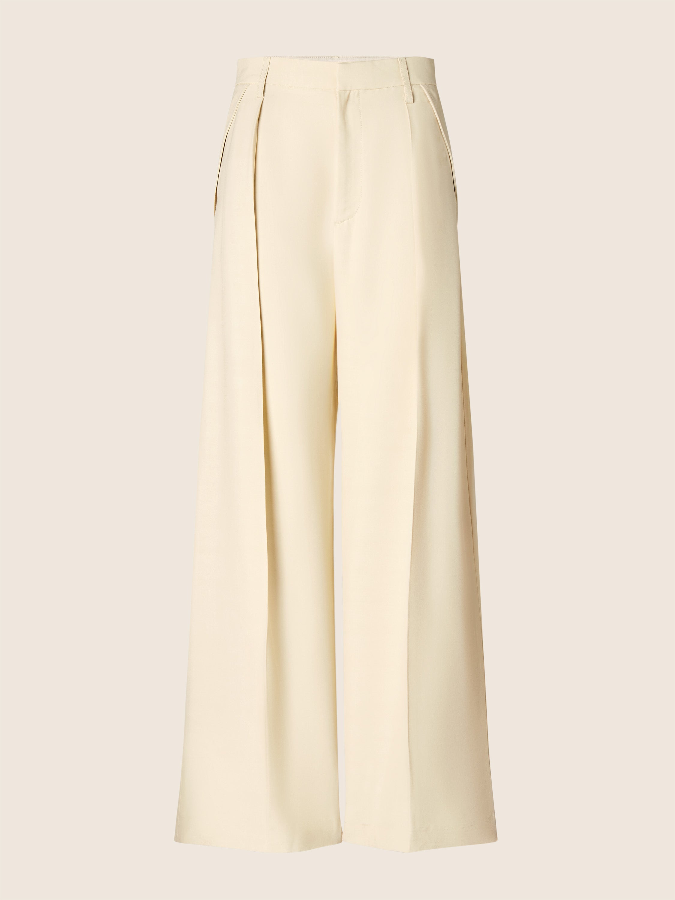 Vicky Wide Trousers in Cream Viscose and Silk Canvas