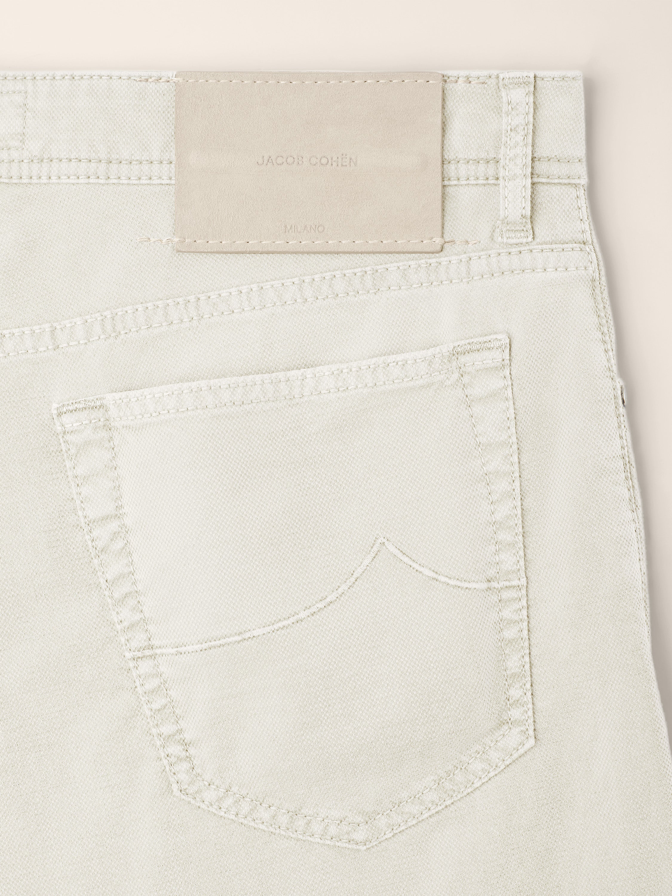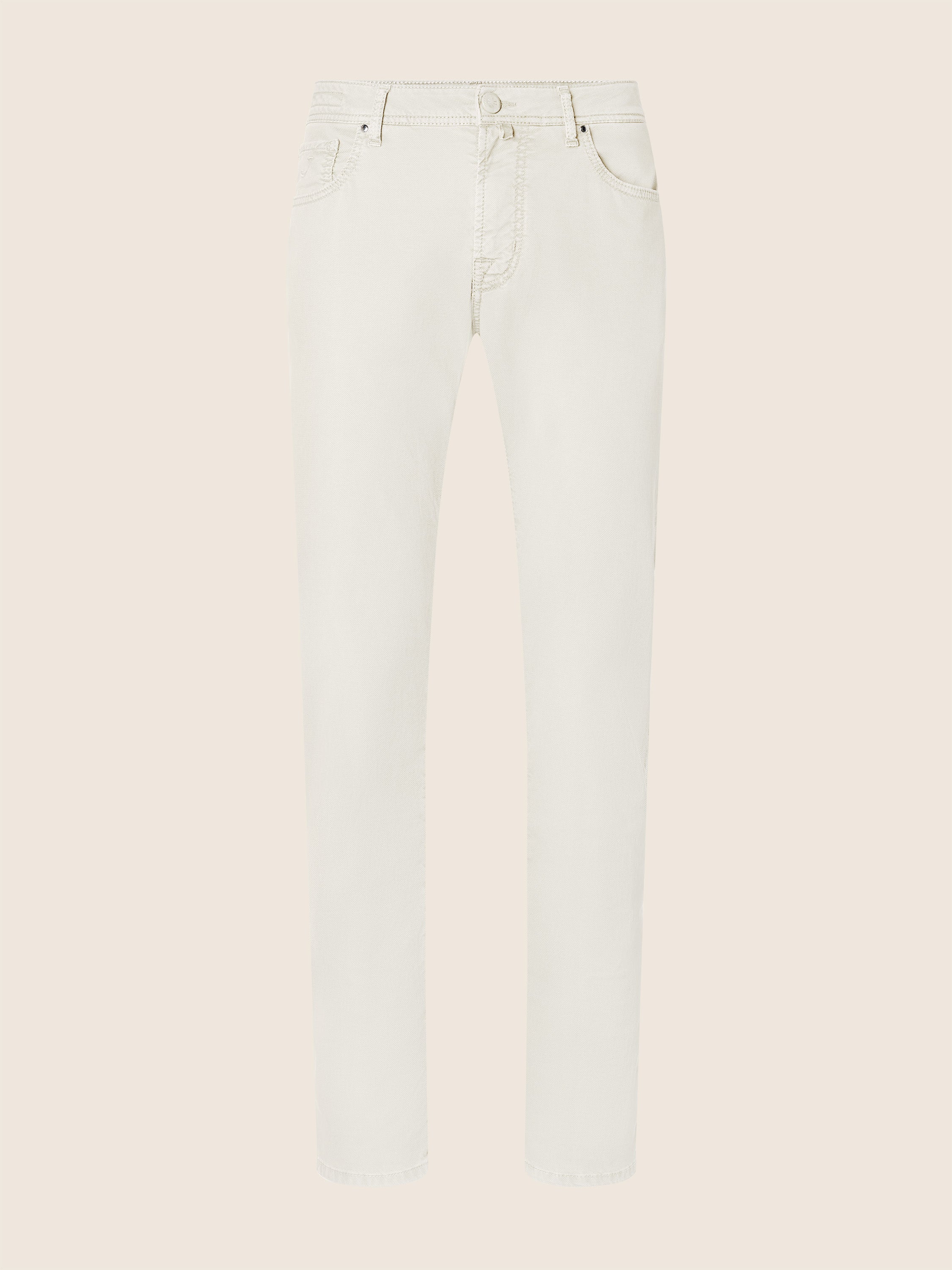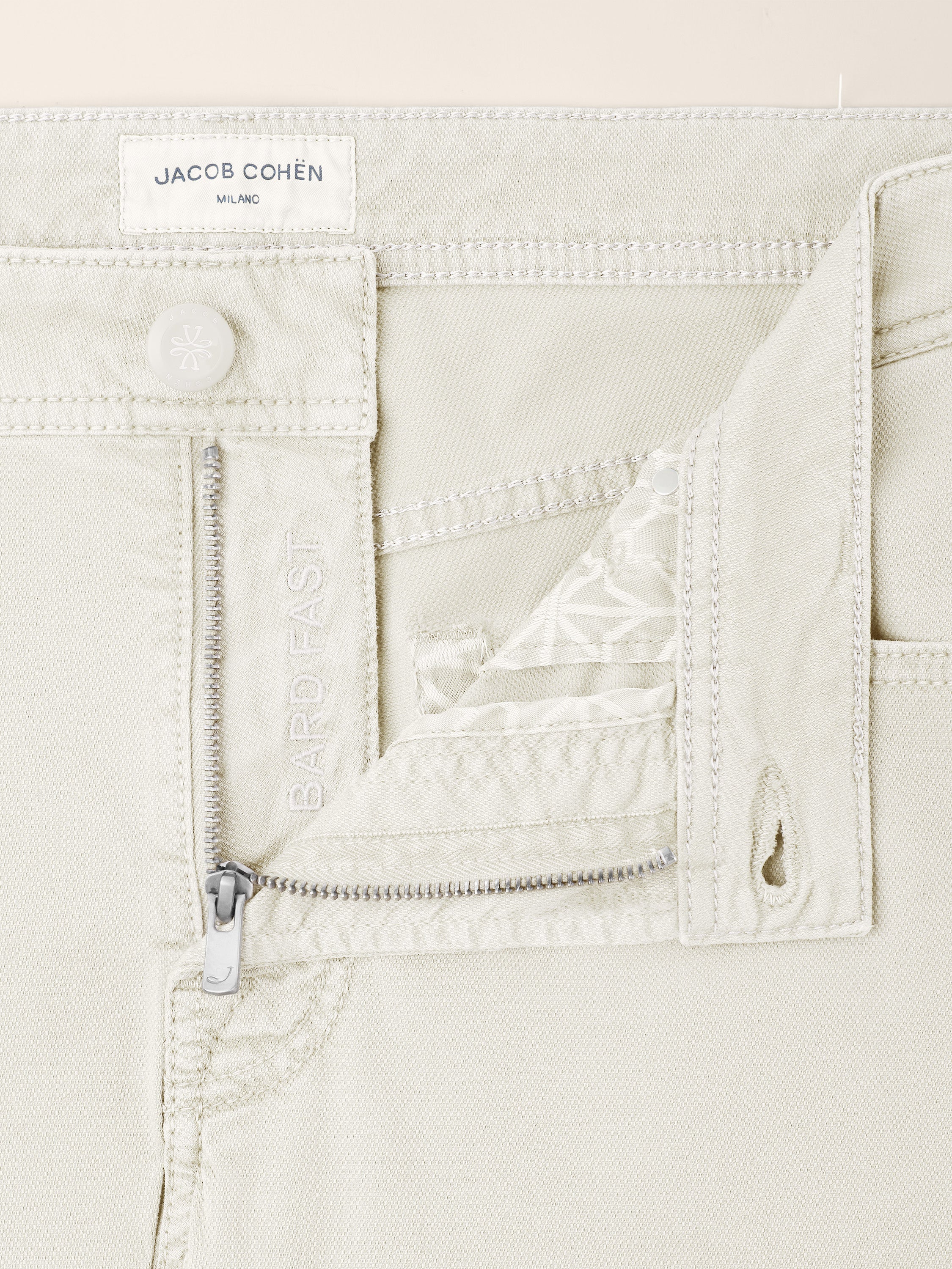 Bard Fast Regular-Slim 5 Pocket Pants in Off-White Honeycomb Stretch Cotton