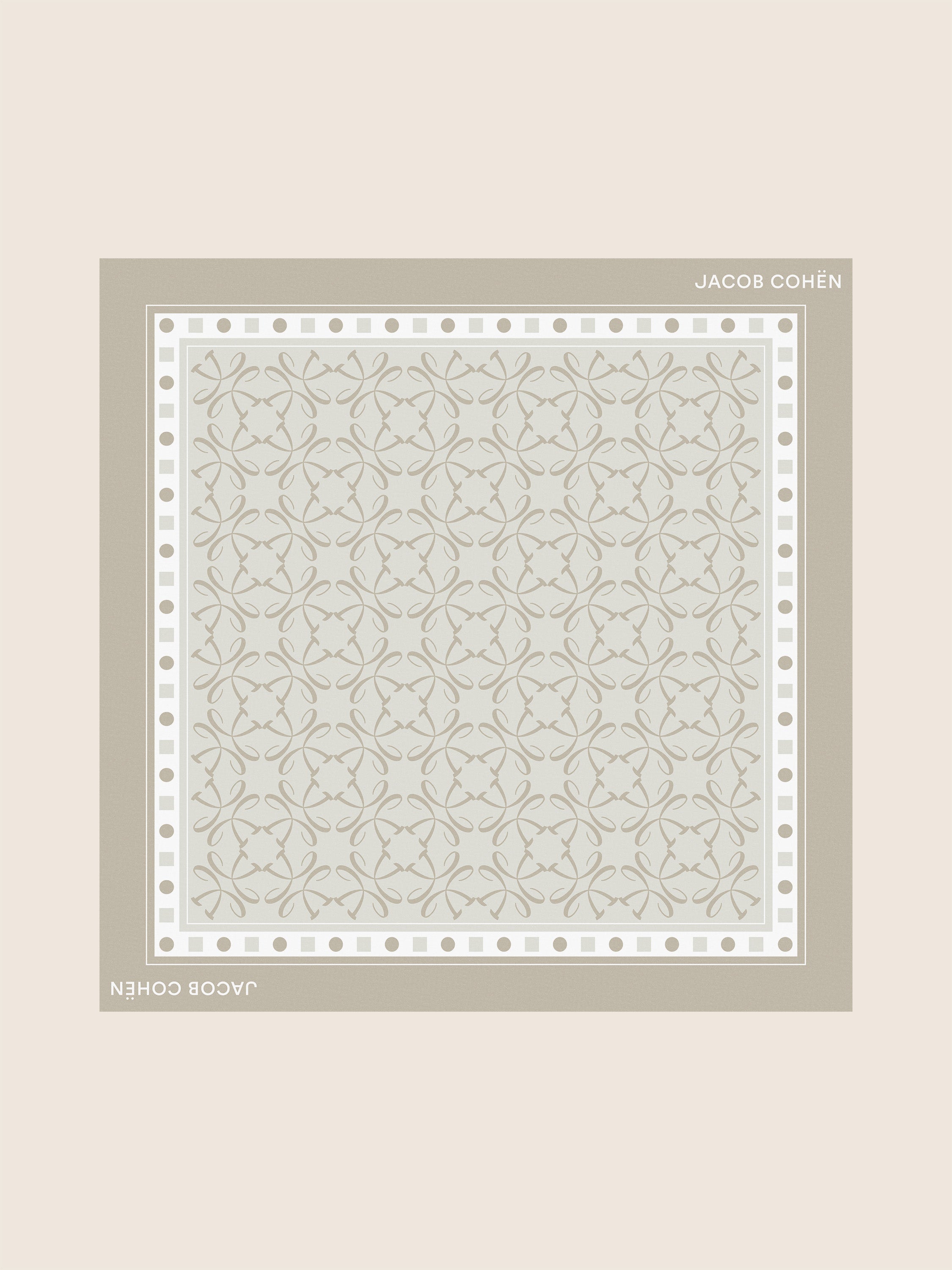 - Includes a cotton bandana with geometric monogram print in shades of ecru white