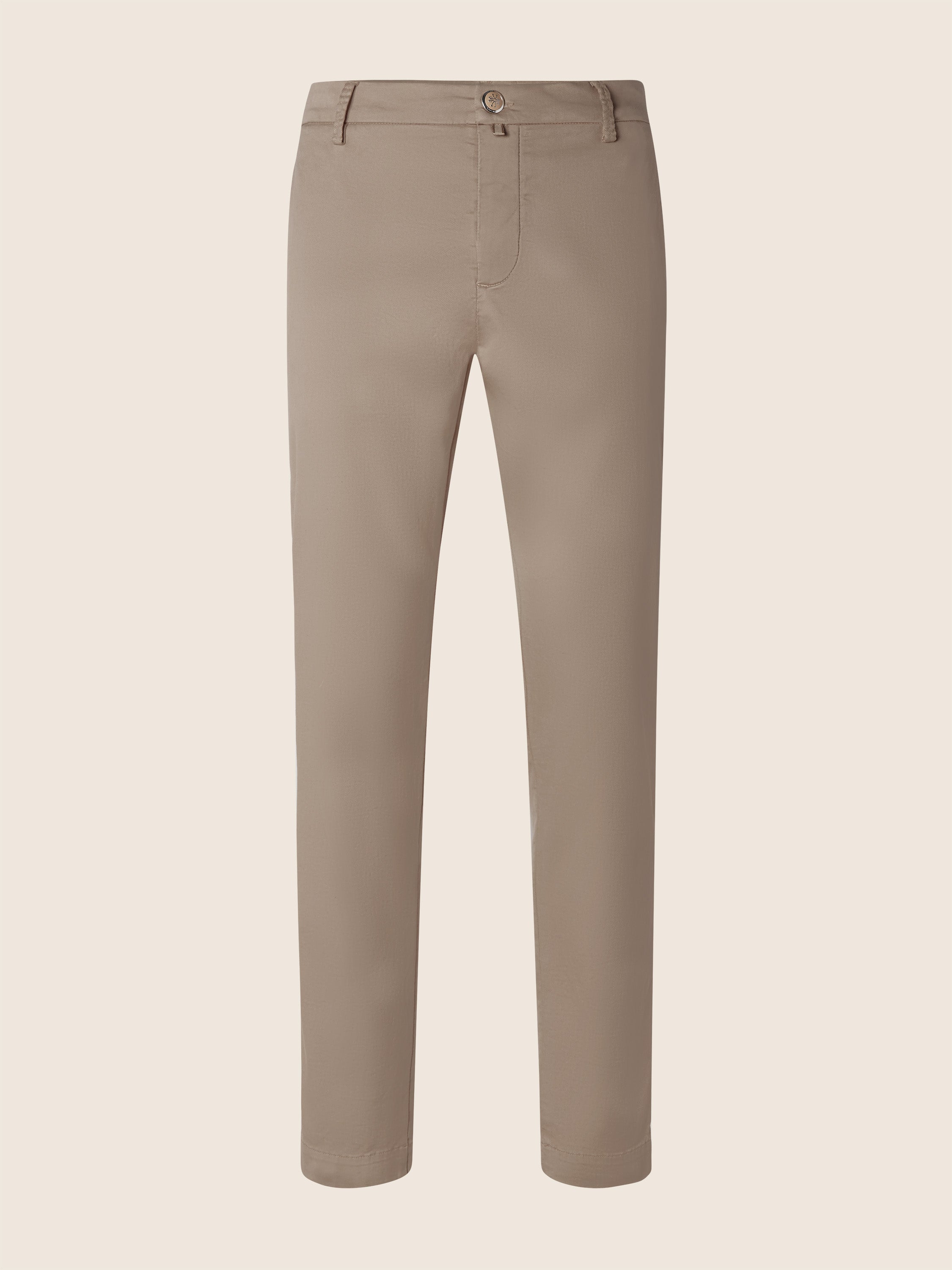 • Dove-grey stretch cotton and Lyocell diagonal twill, garment dyed