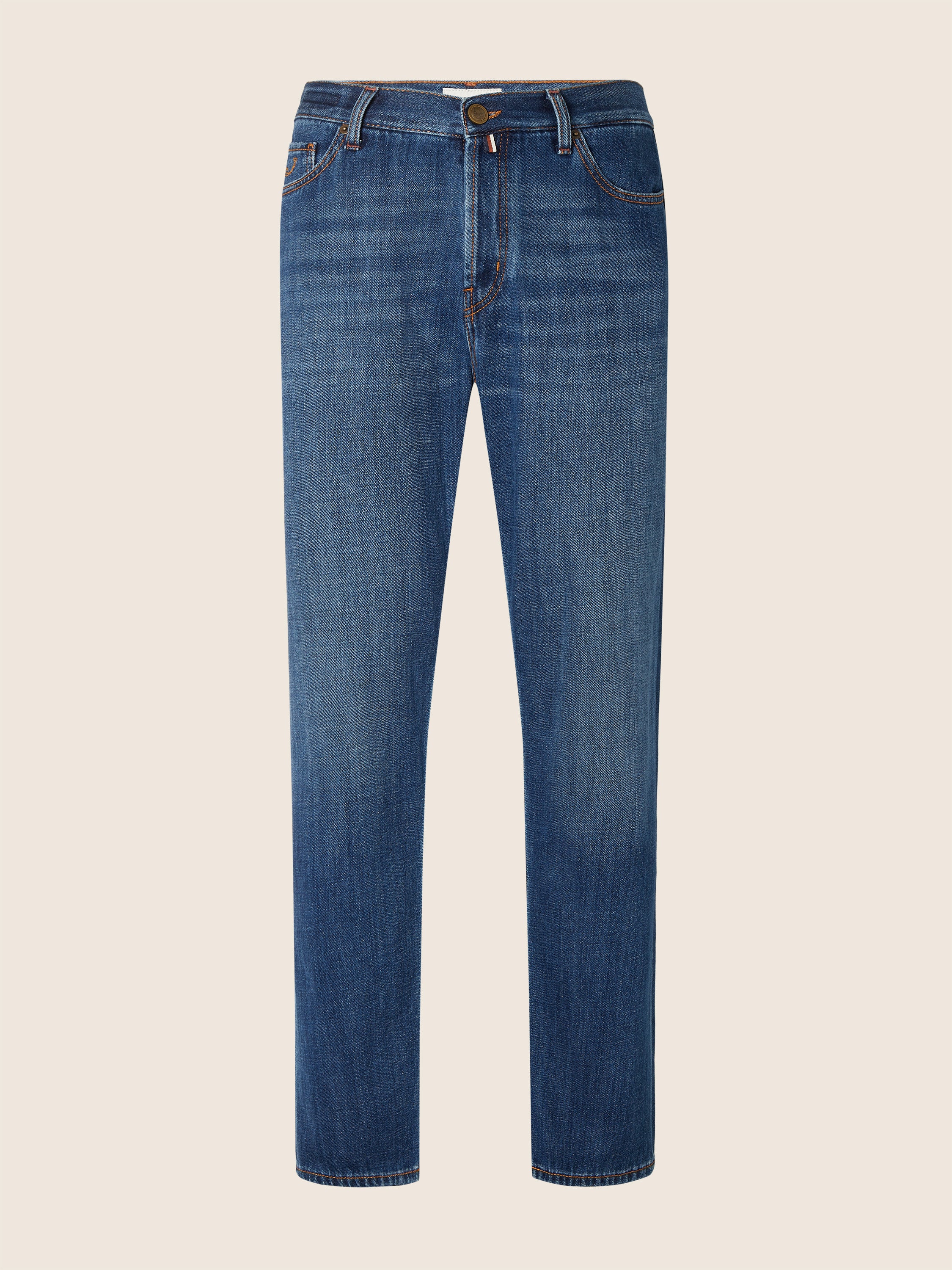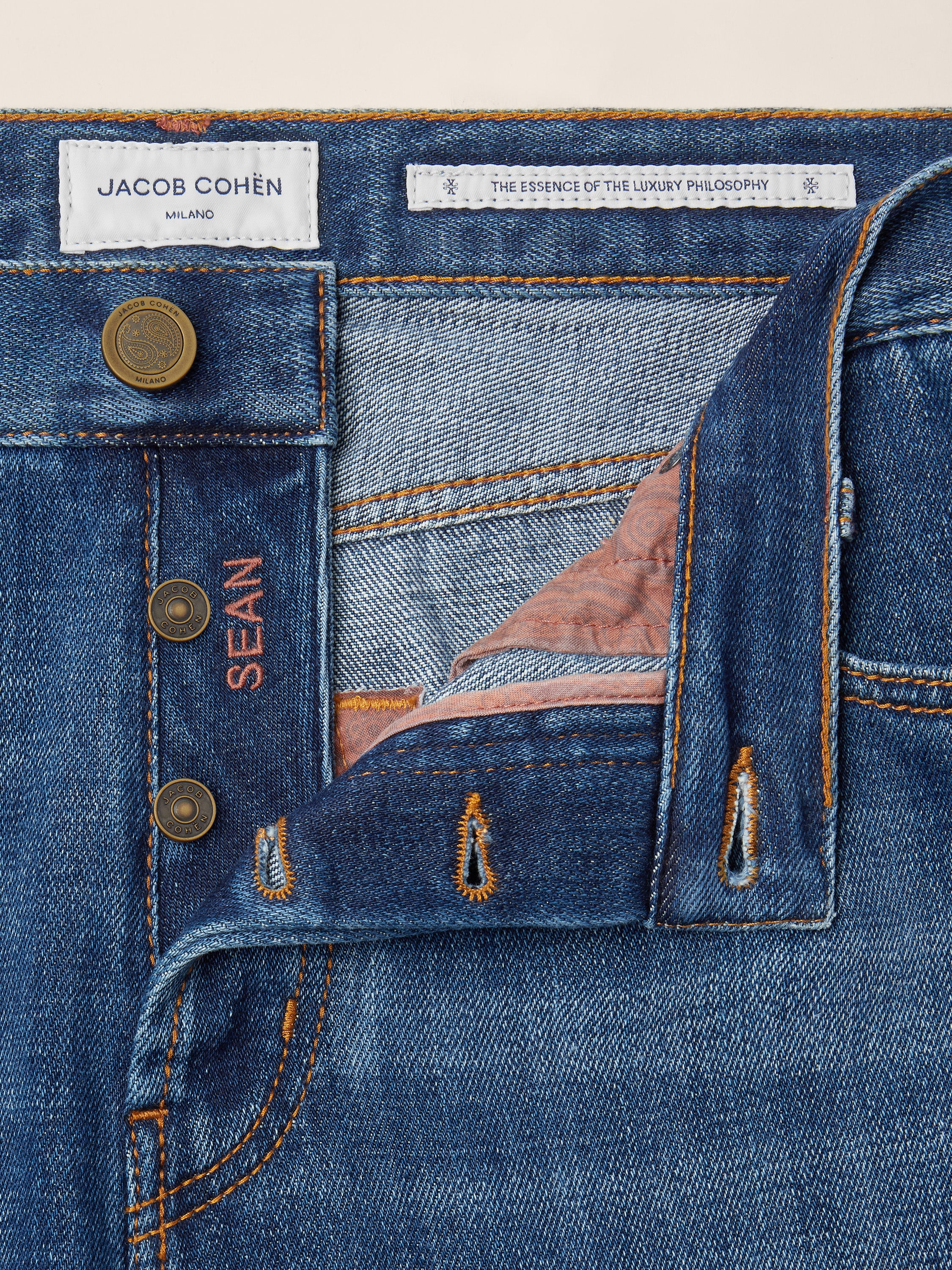 - Sean 5 pocket jeans with a relaxed-straight fit and low crotch