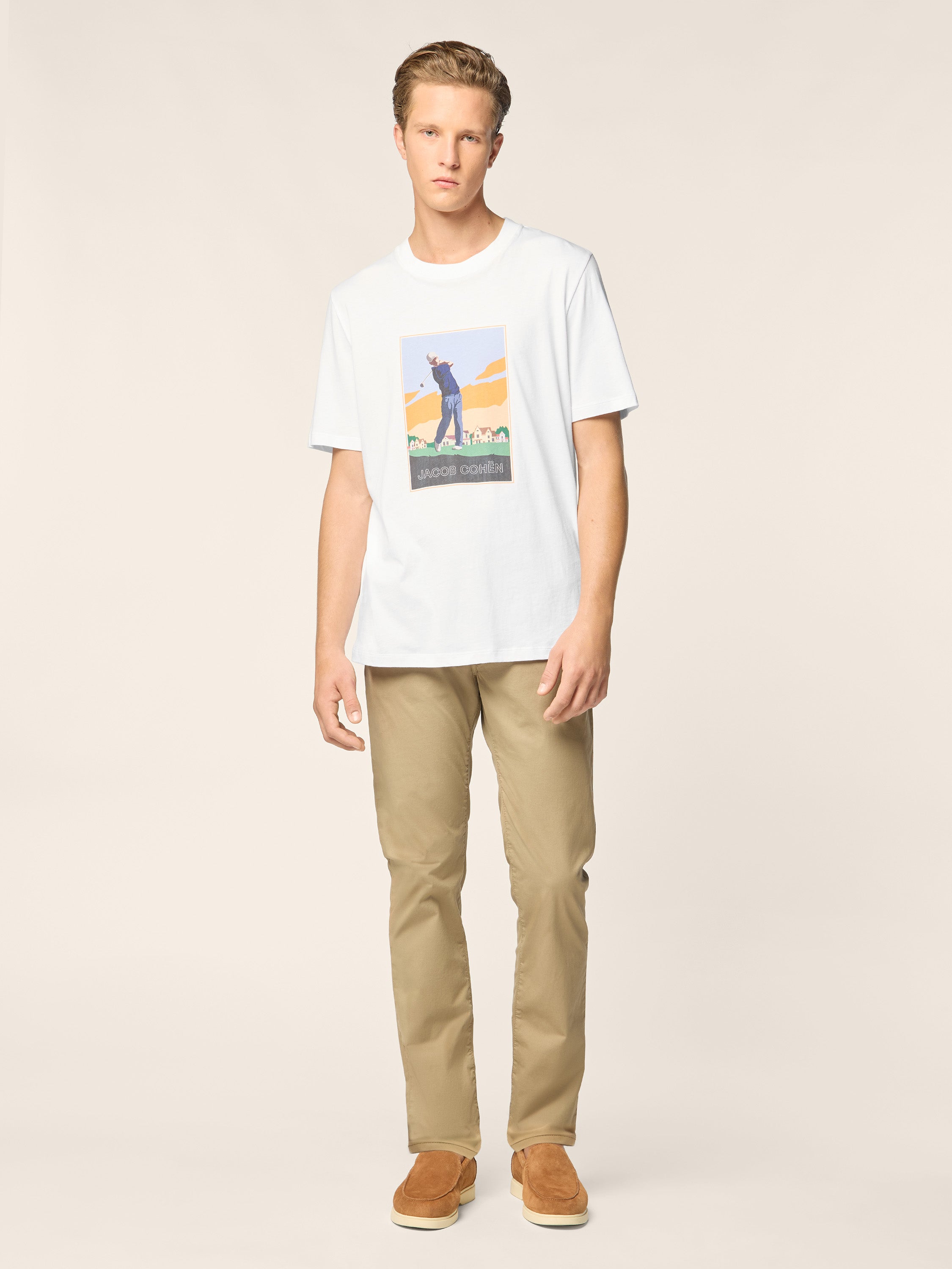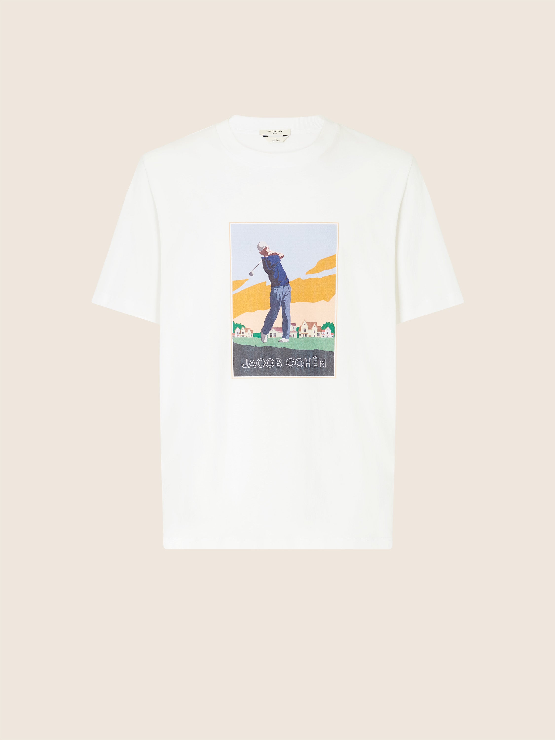 Jersey T-shirt in White Cotton with Multicolour Golf Print