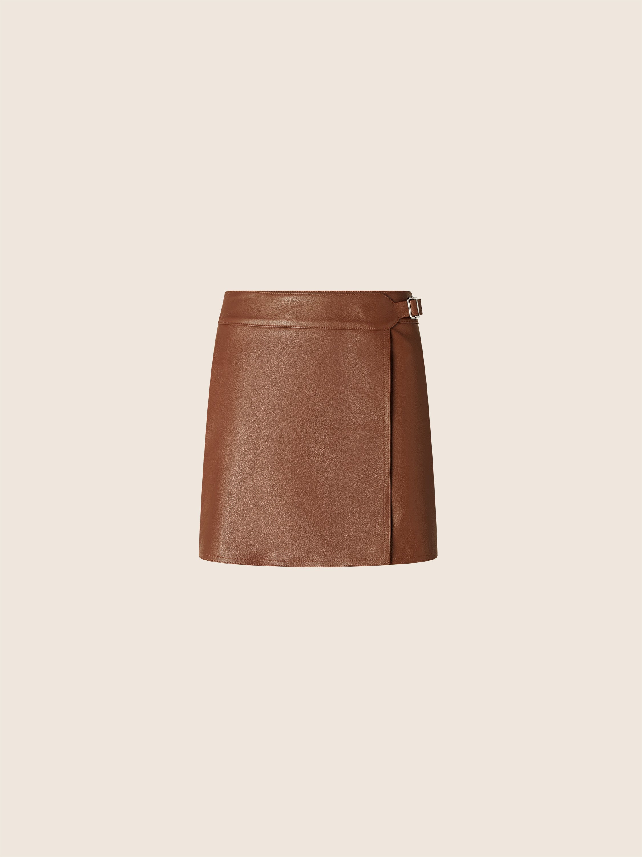 - Rectangular back patch in tobacco-brown leather with hot-stamped frame and logo