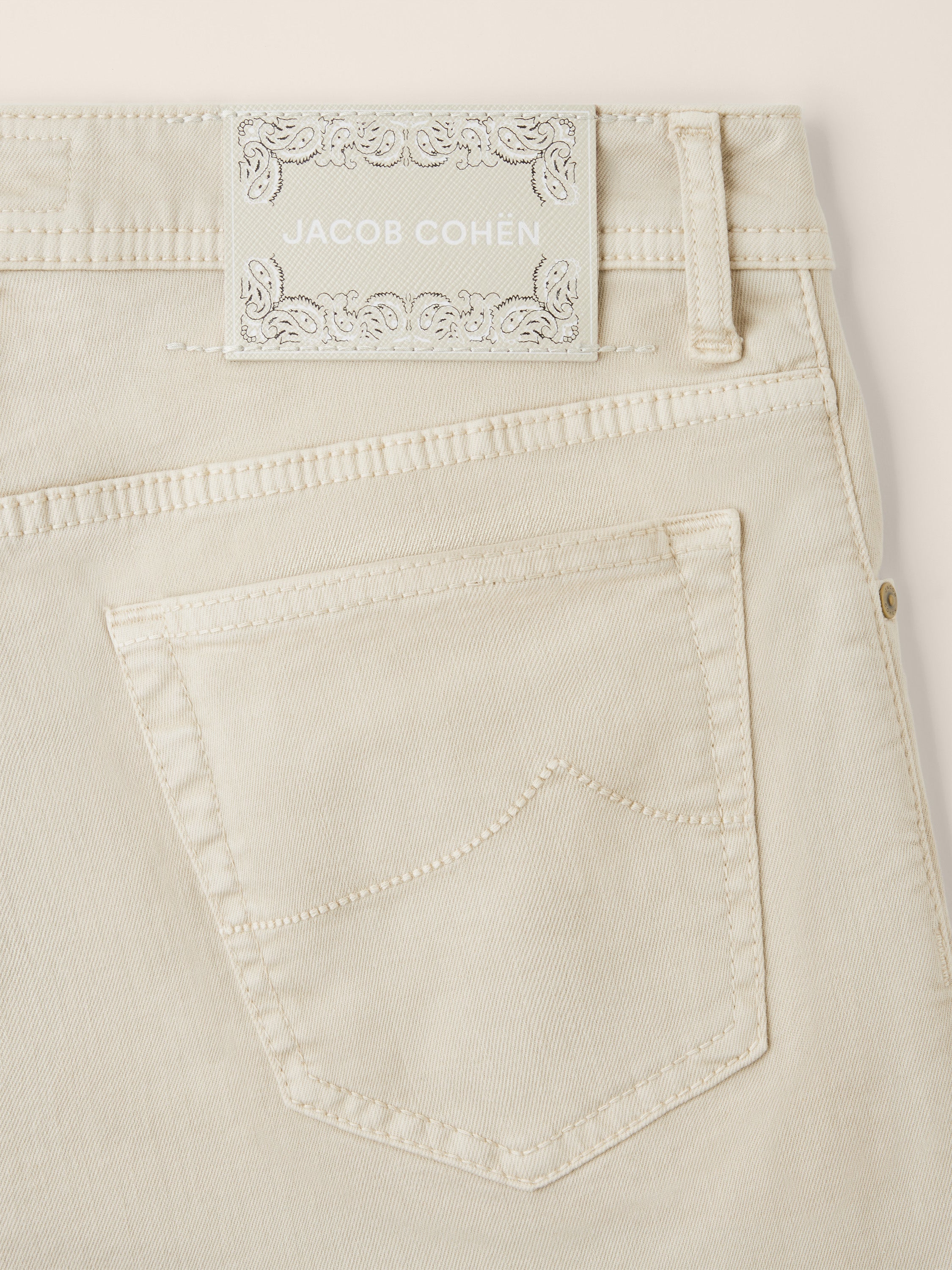 - Sand-beige Saffiano leather back patch with Paisley print and inlaid logo in white synthetic-leather