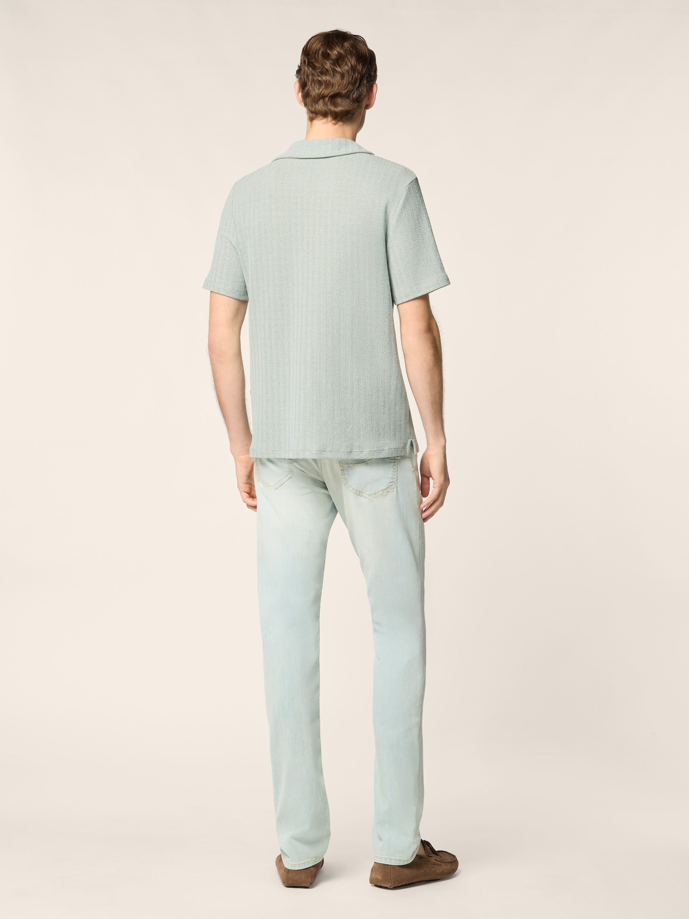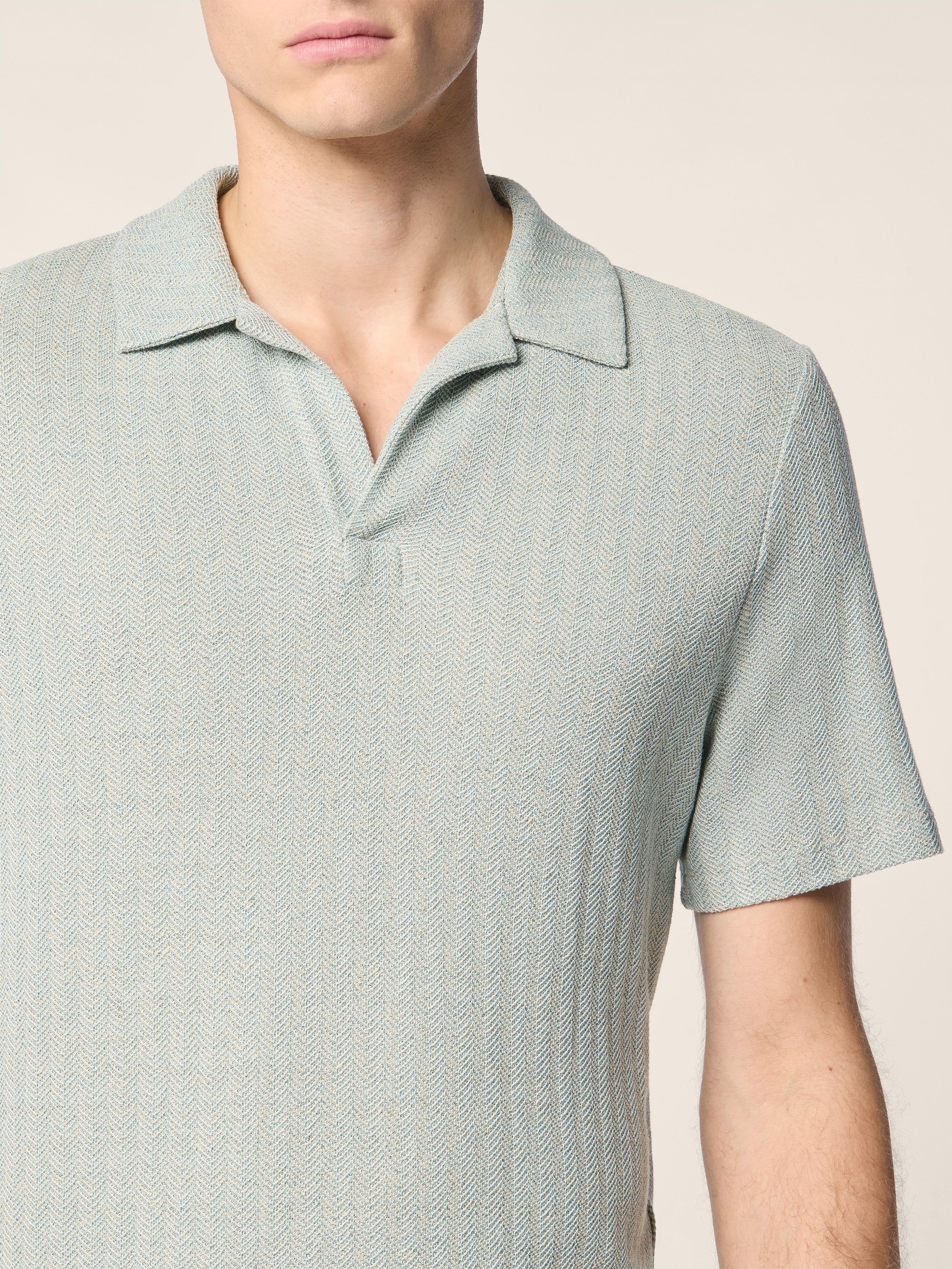 Polo Shirt in Acquamarine Blue Cotton and Solaro Linen