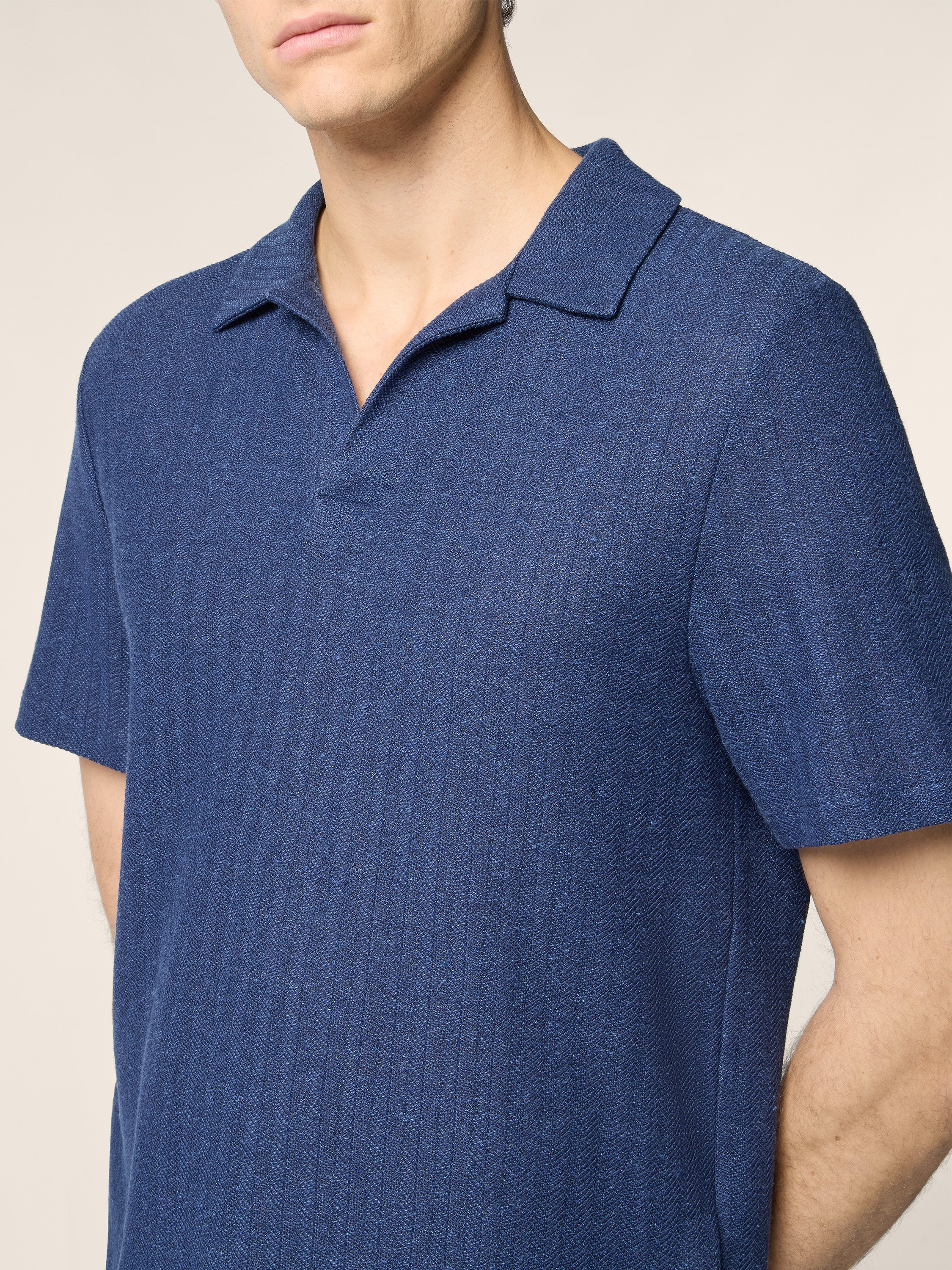 • Blue jersey in a premium Solaro linen and cotton blend