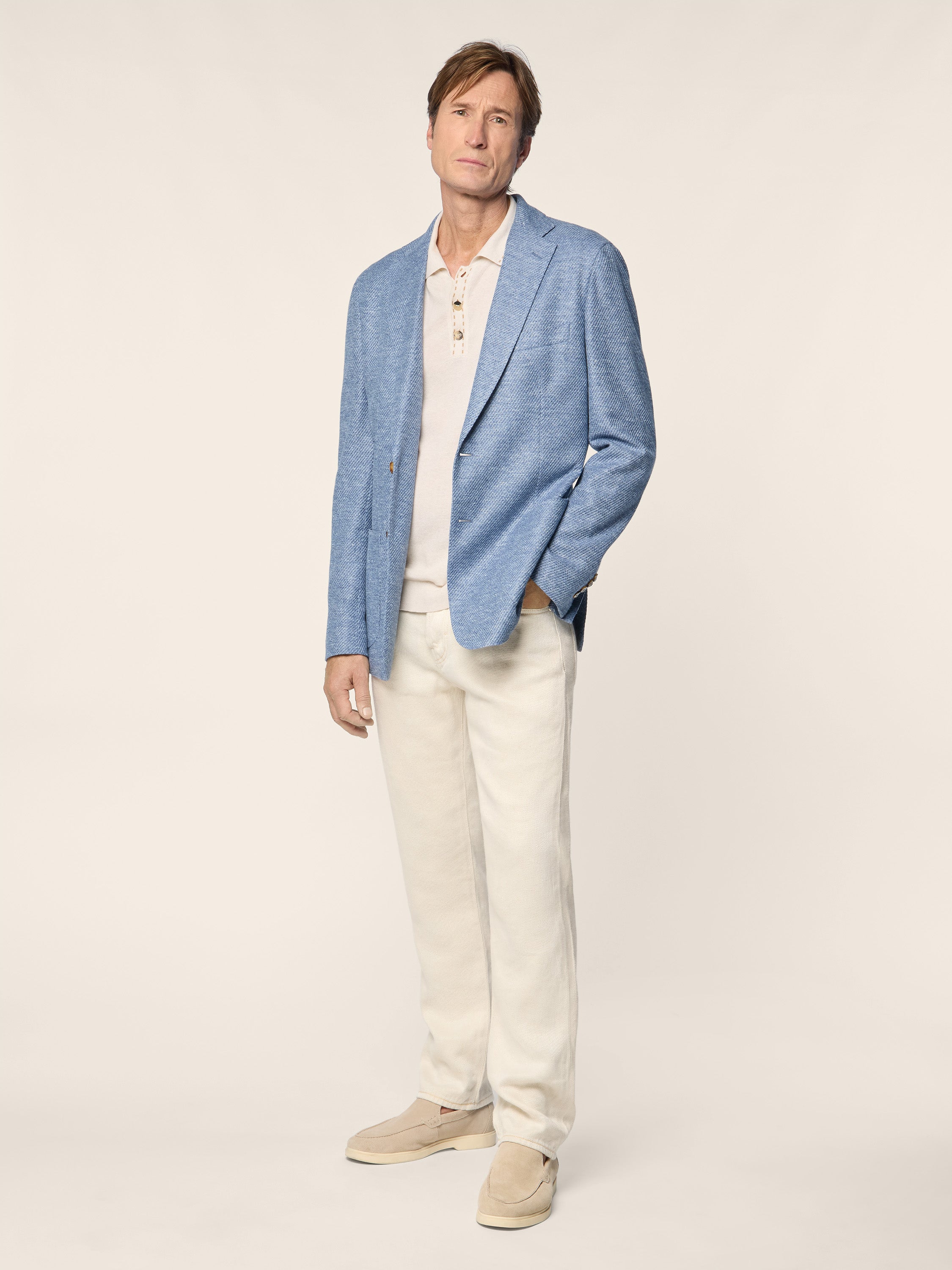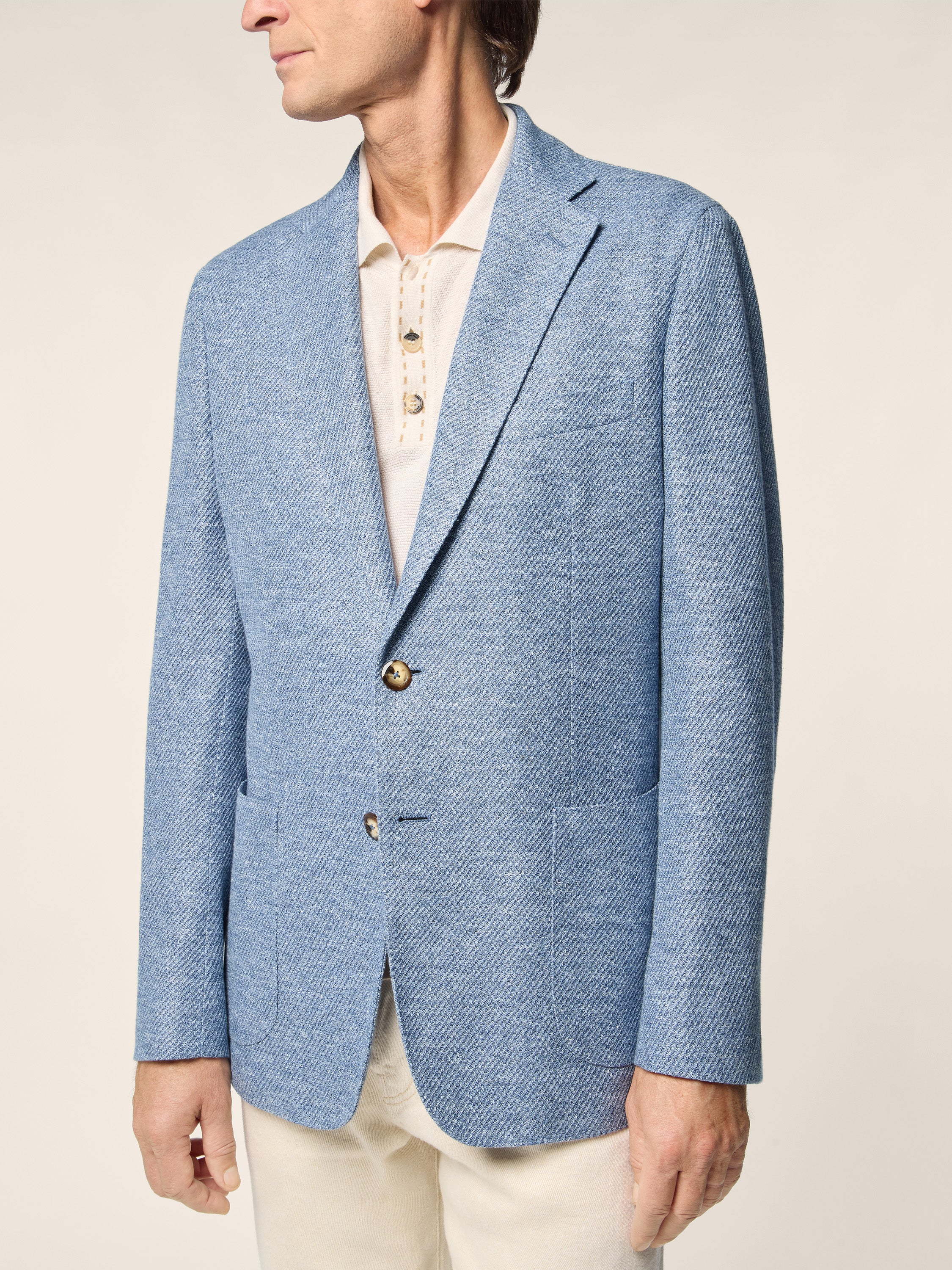 Blazer in Light Blue Melange Linen, Cotton and Silk Jersey