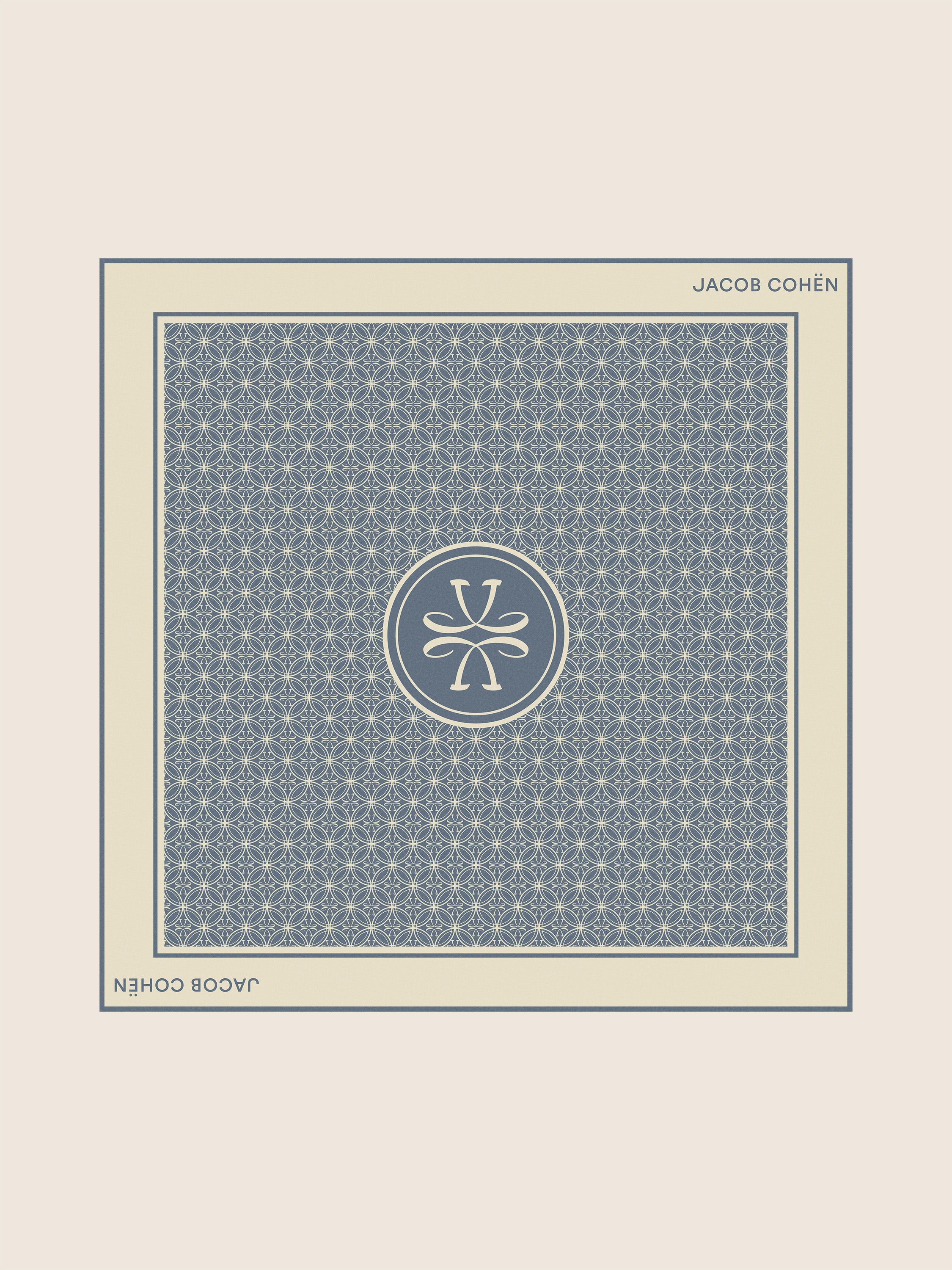 • Includes a cotton bandana with Giglio logo geometric print in shades of cream and blue, and spool of thread