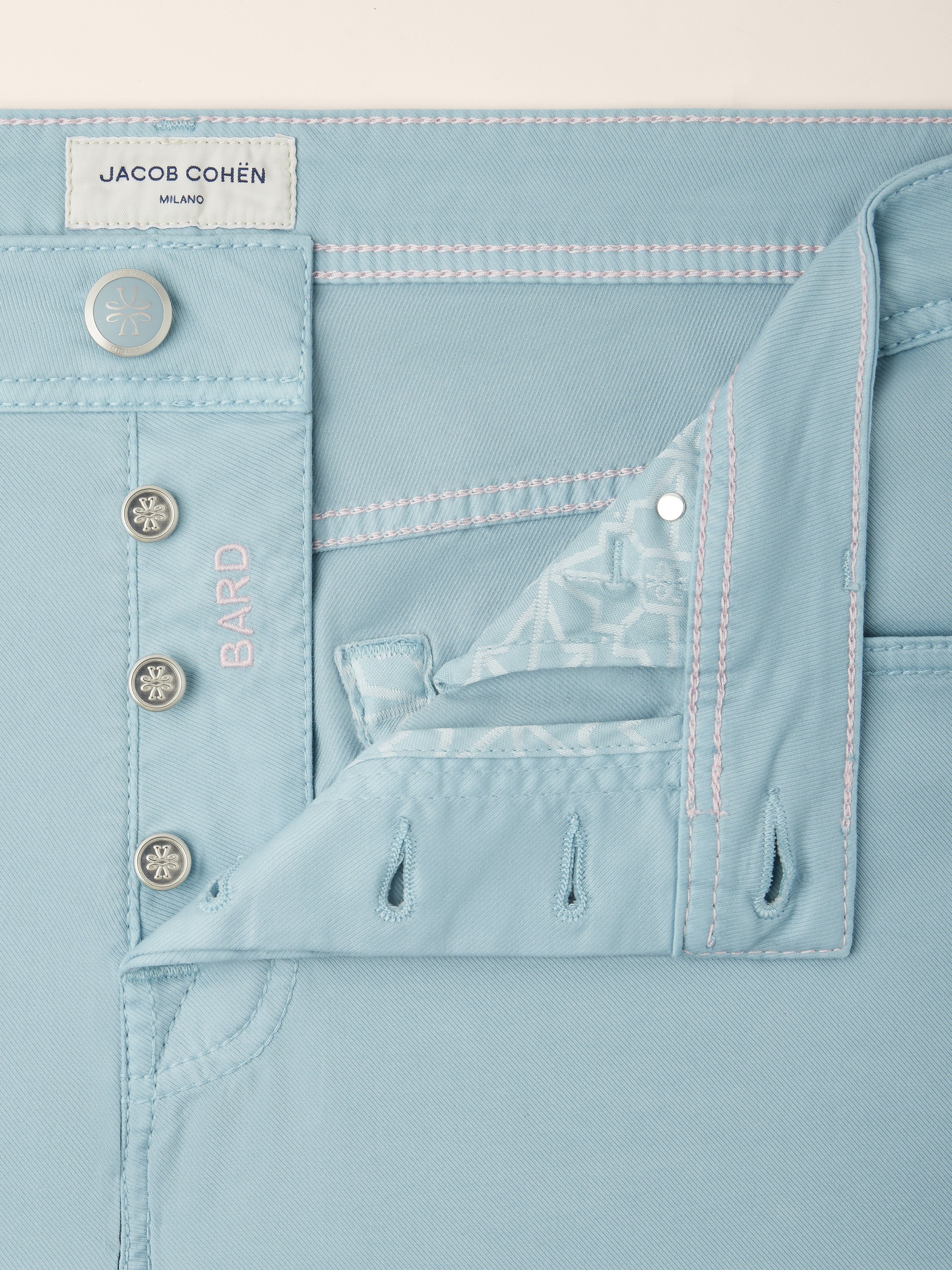 Bard Regular-Slim 5 Pocket Pants in Sky Blue Cotton and Lyocell Stretch Twill