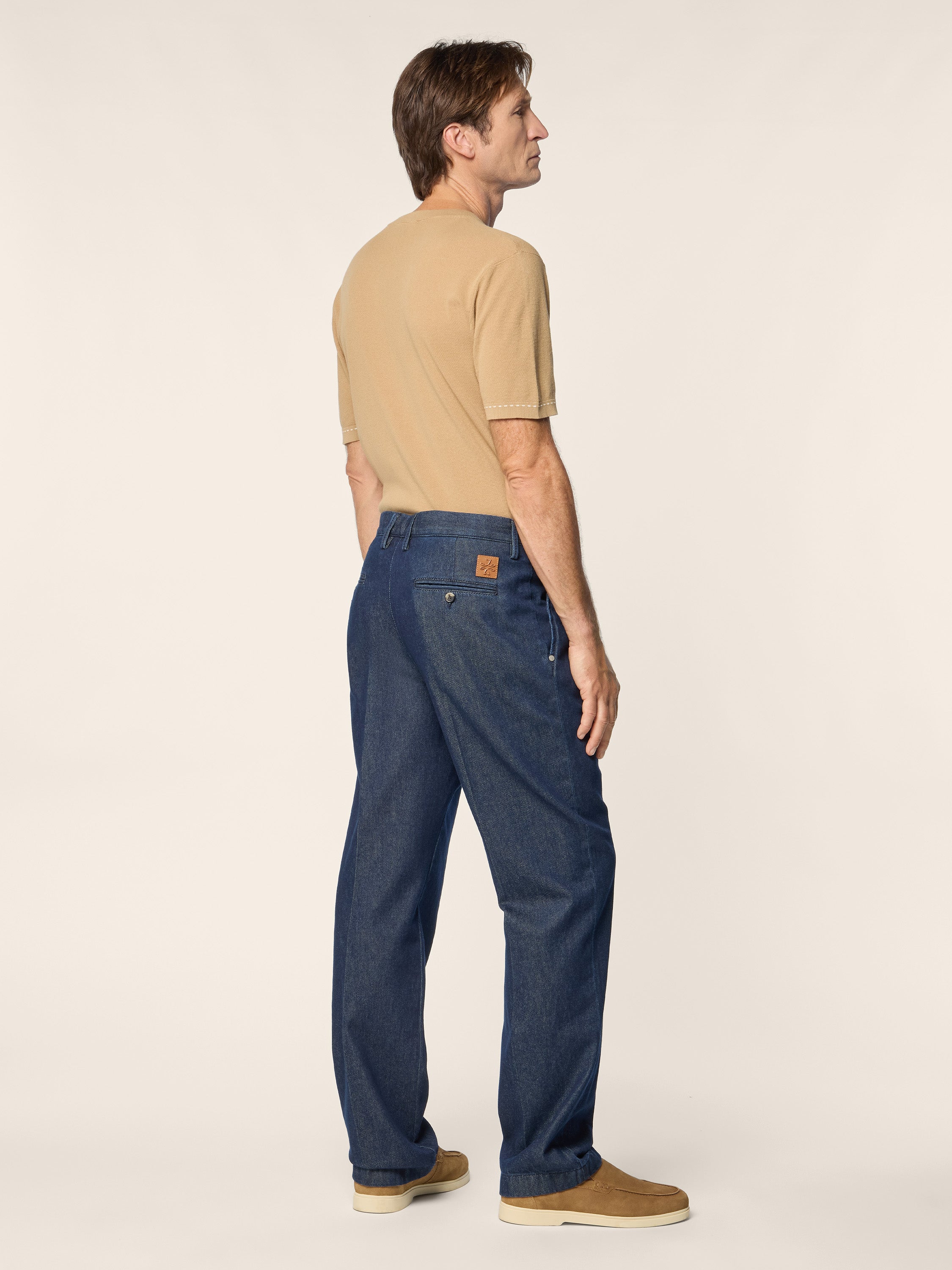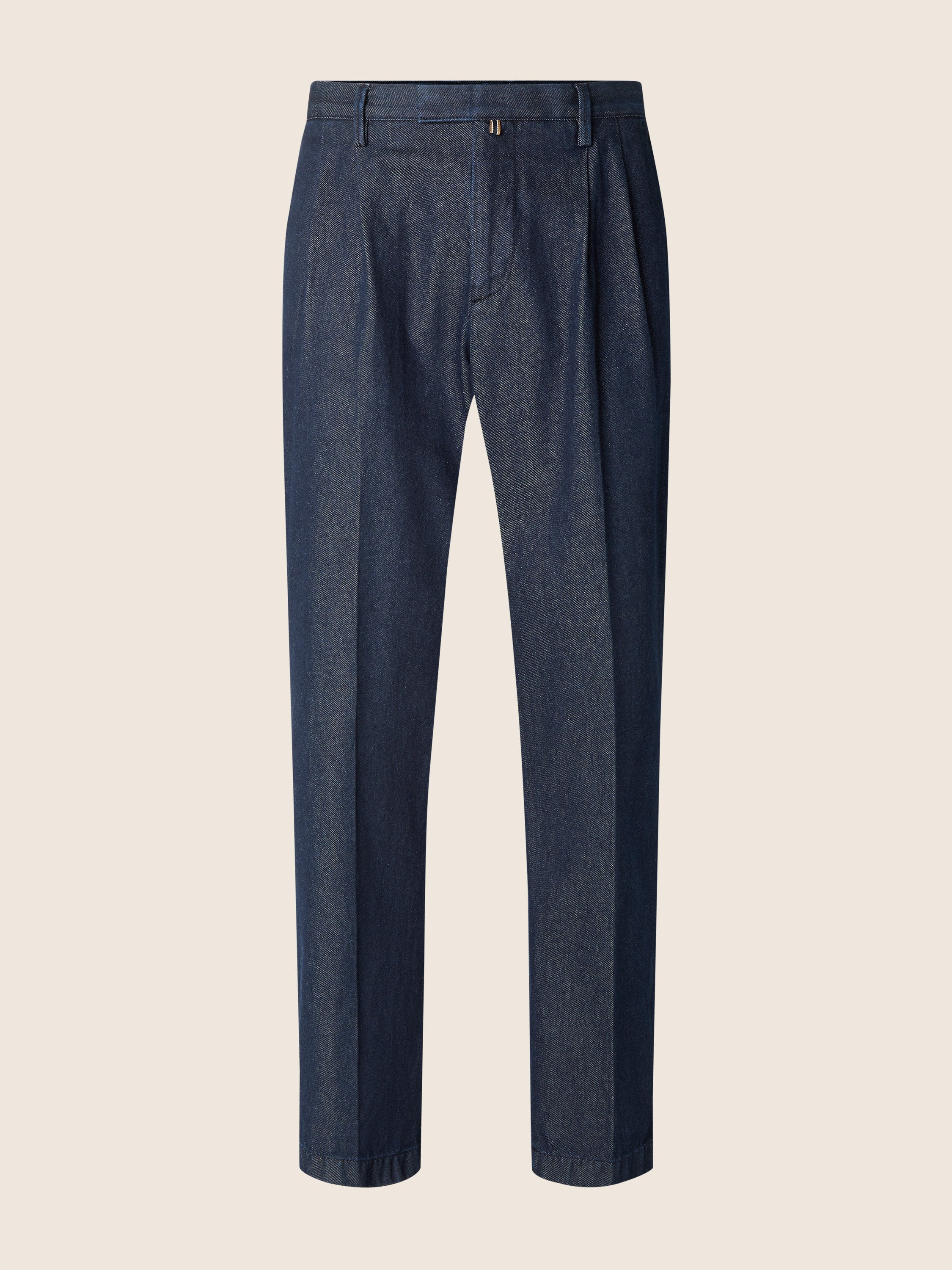 • Lucas regular-fit denim chino pants, medium rise with double darts