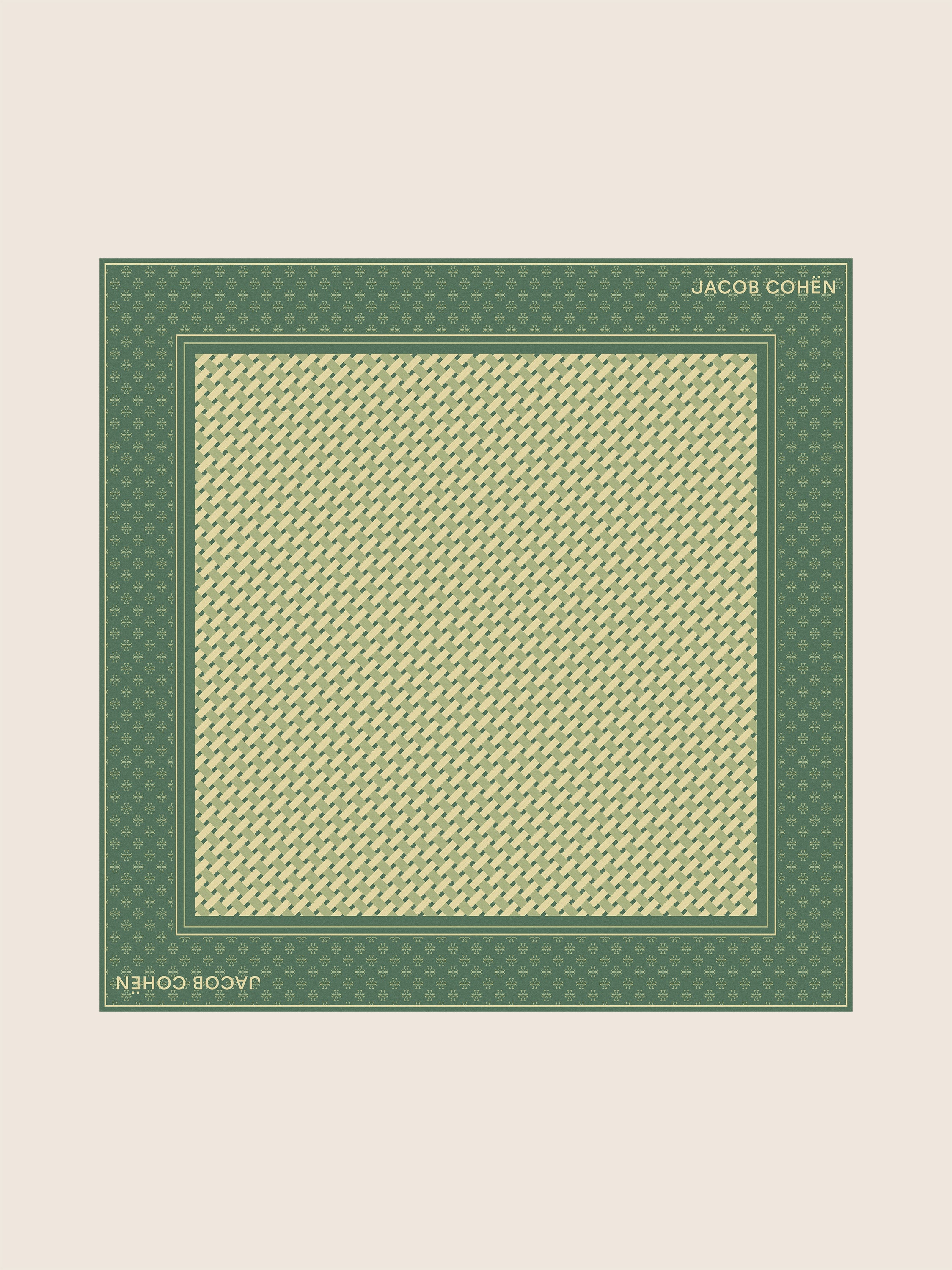 • Includes a cotton bandana with braided print in shades of green and spool of thread