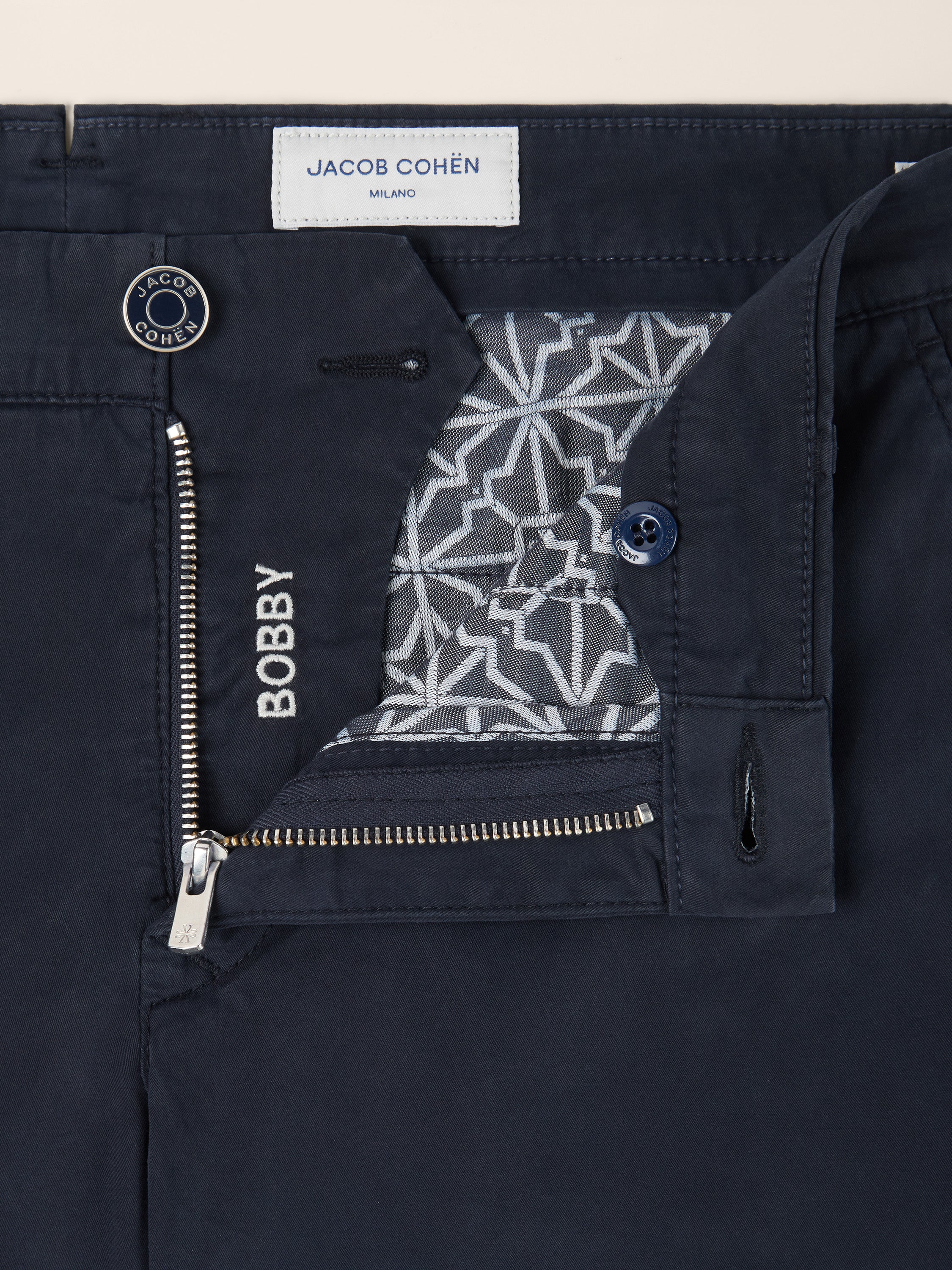 Bobby Slim Chino Pants in Navy Blue Stretch Cotton Gabardine