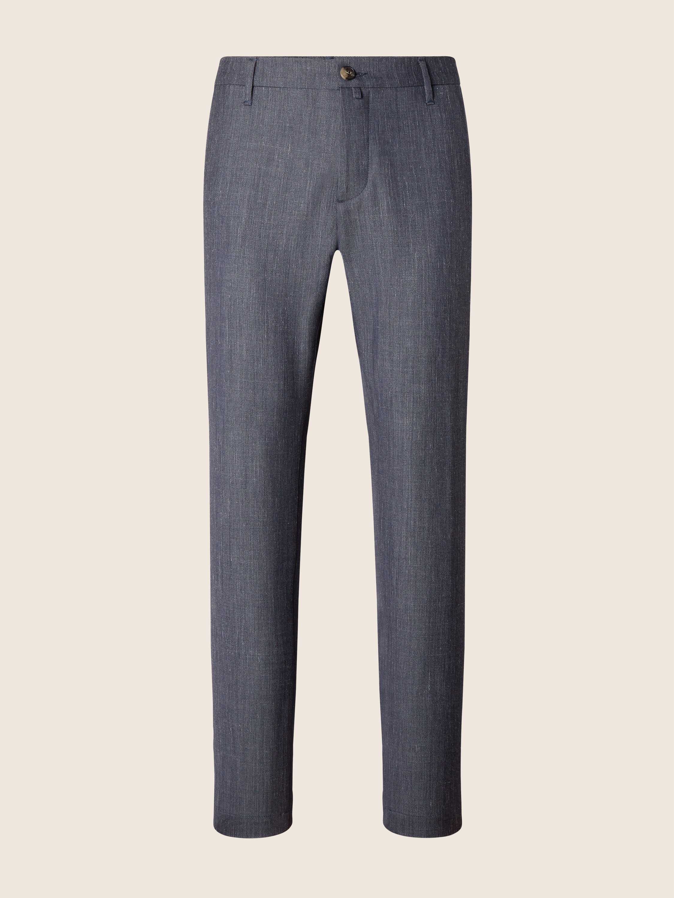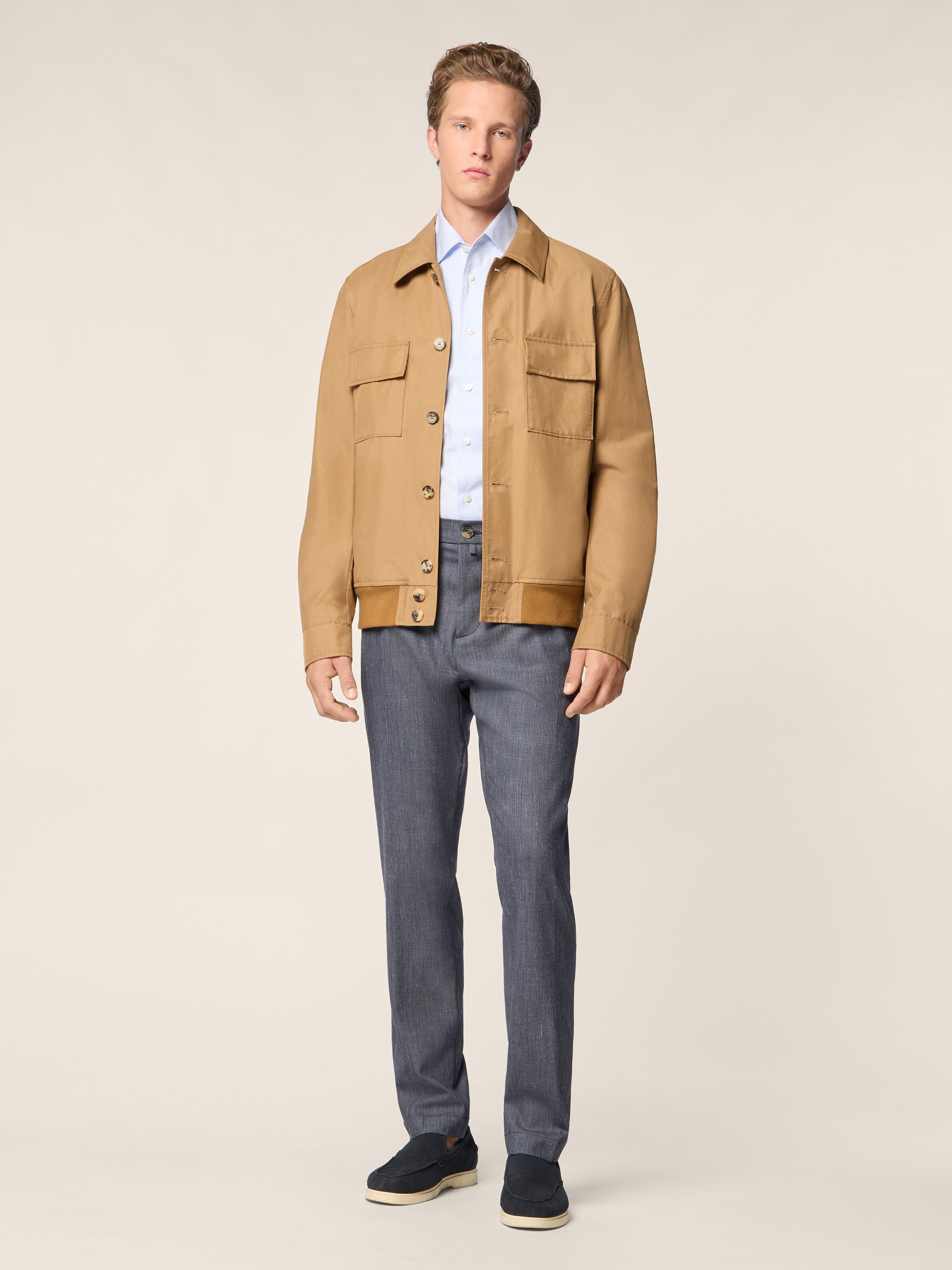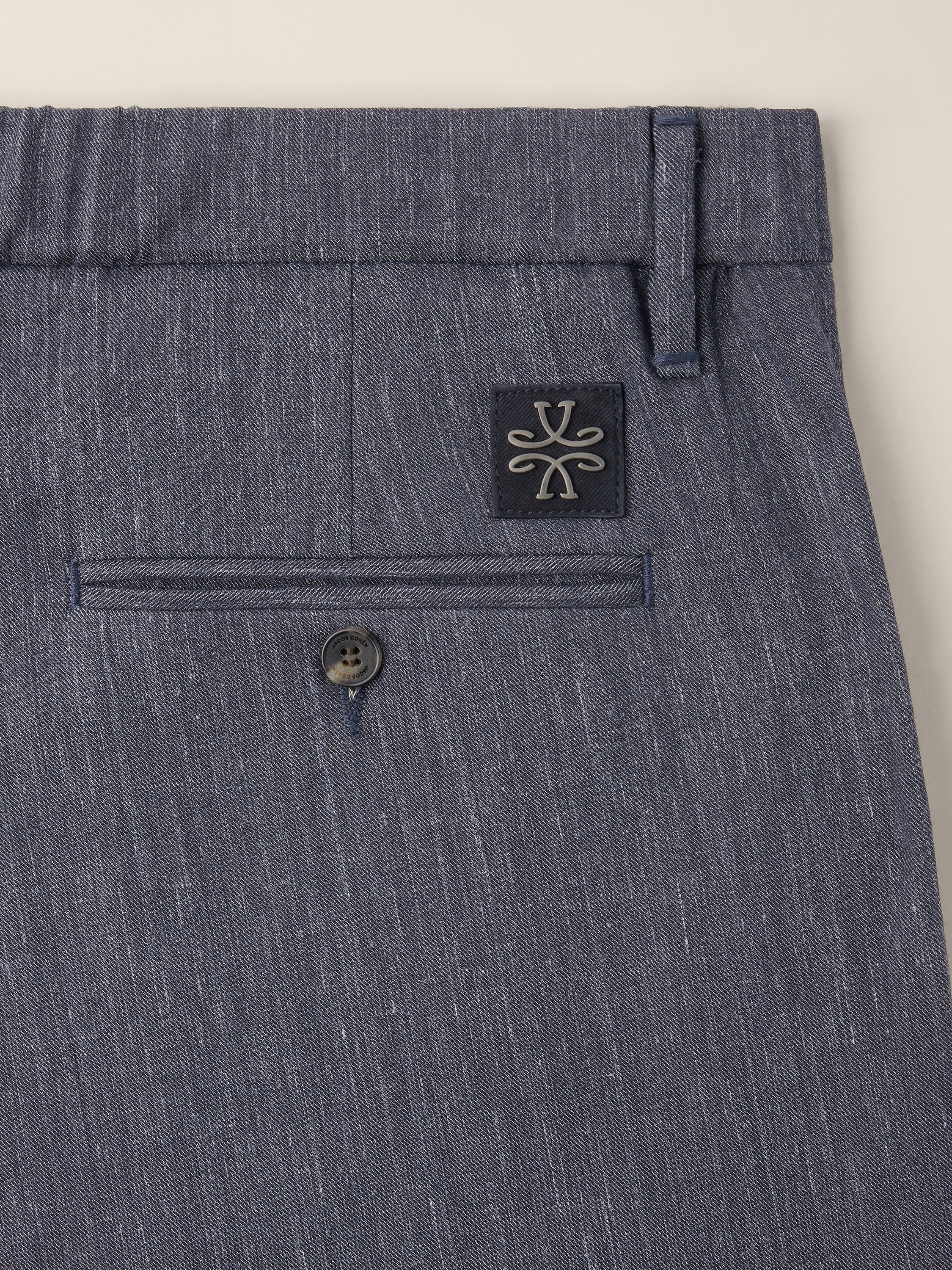 - Denim-blue melange Loro Piana stretch gabardine fabric in a refined blend of virgin wool, silk and linen