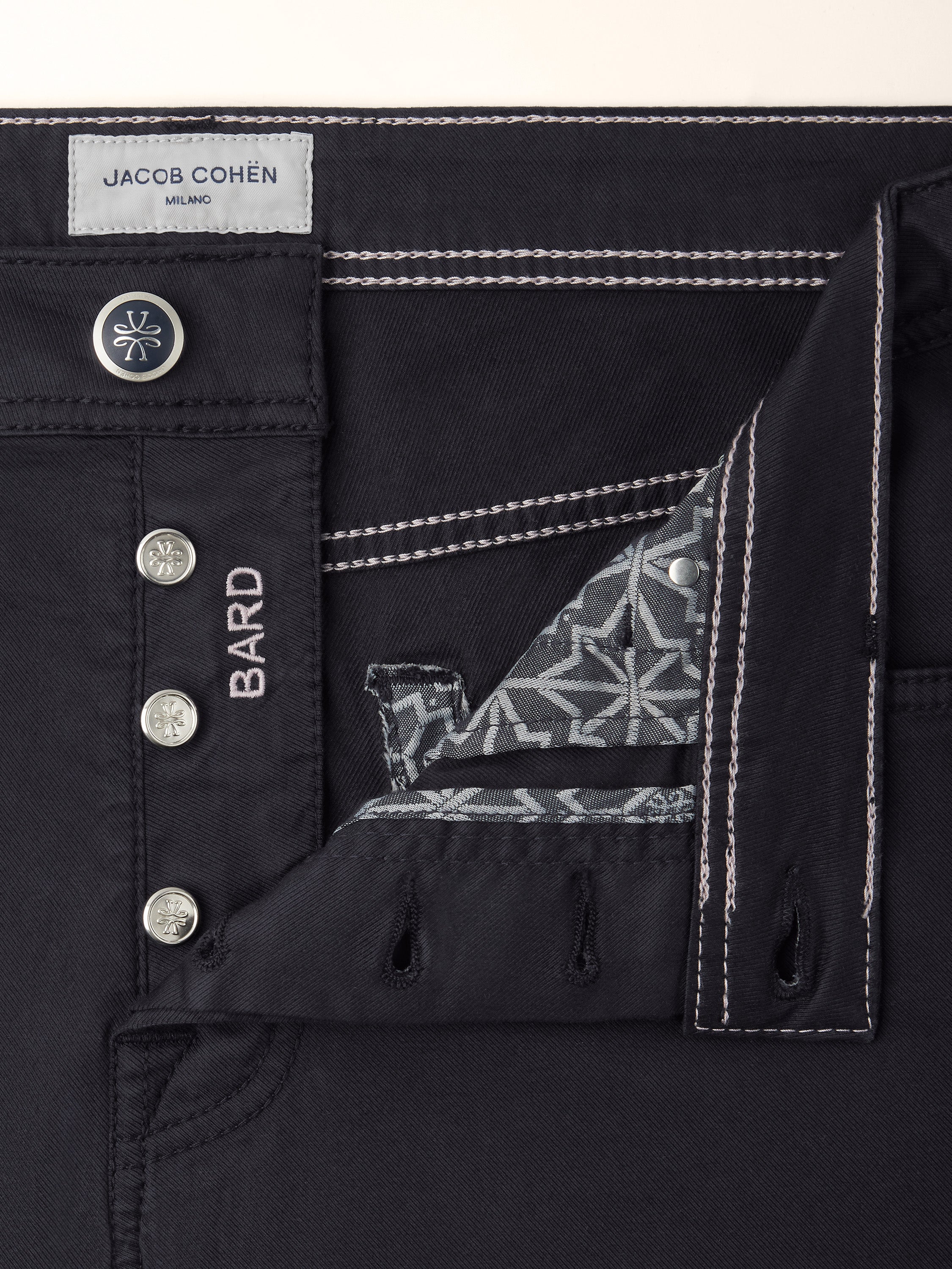 Bard Regular-Slim 5 Pocket Pants in Navy Blue Cotton and Lyocell Stretch Twill
