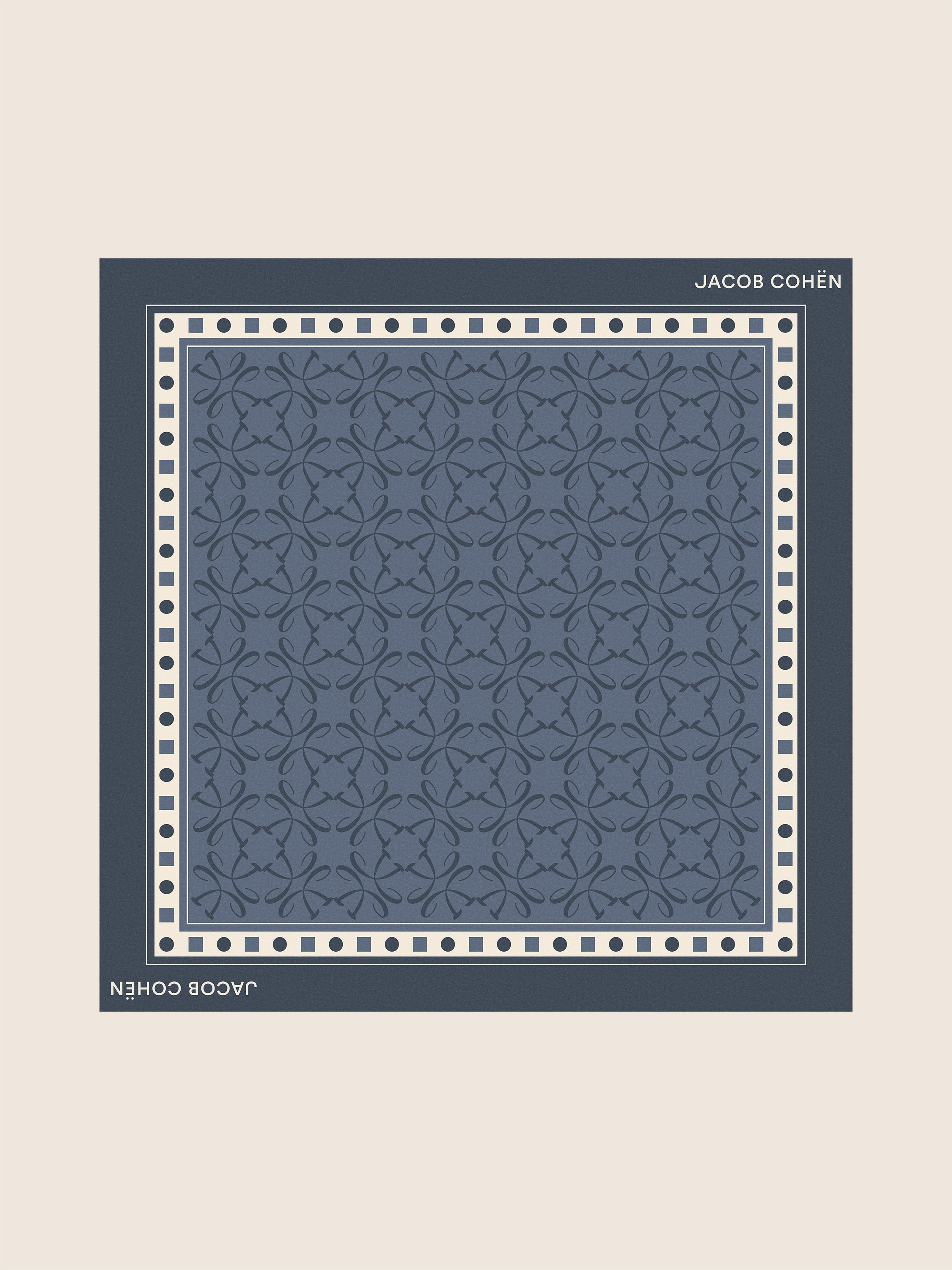 • Includes a cotton bandana with geometric monogram print in shades of navy blue