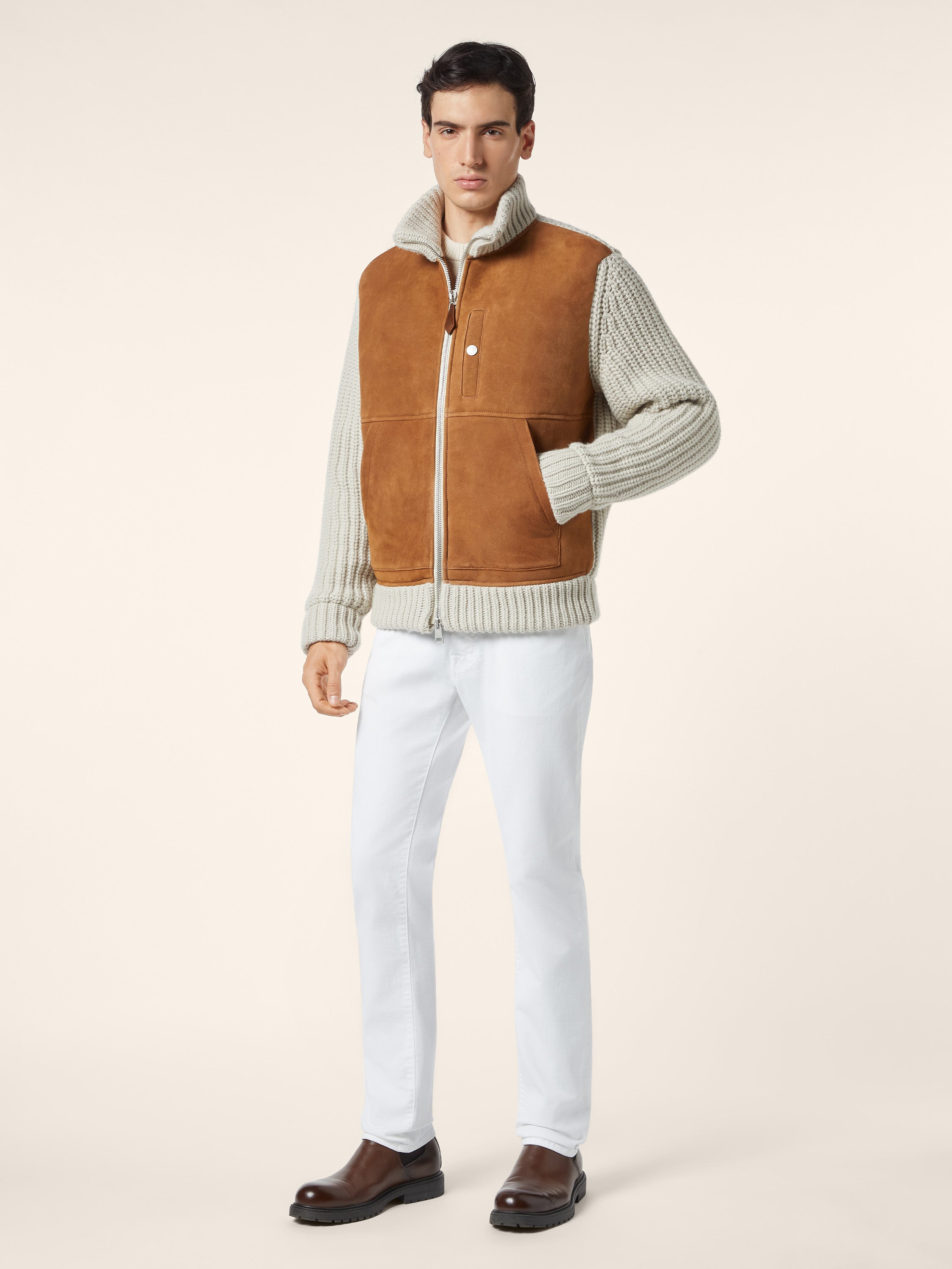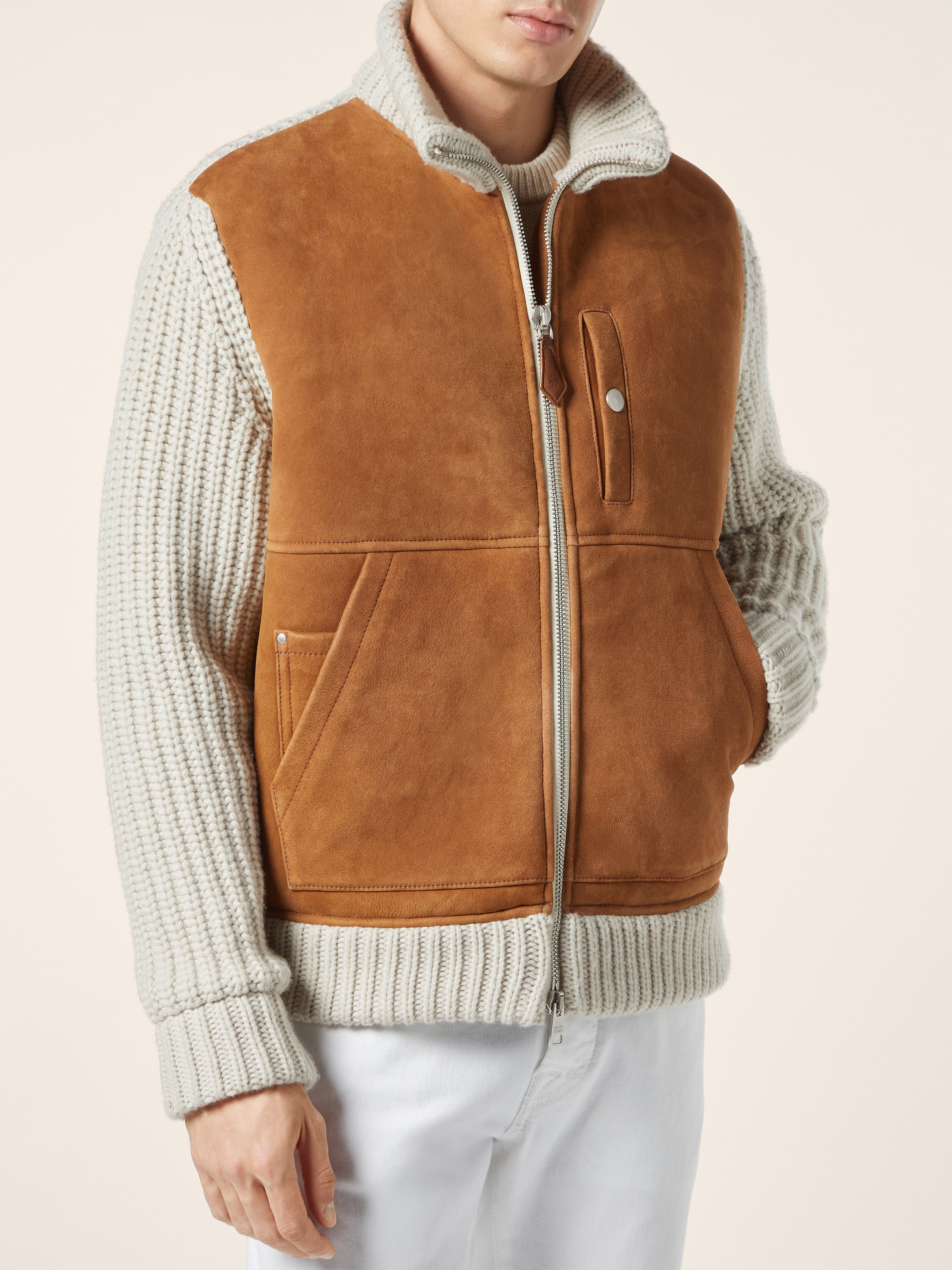 Almond Wool and Shearling Knitted Jacket Wool and Shearling Jacket