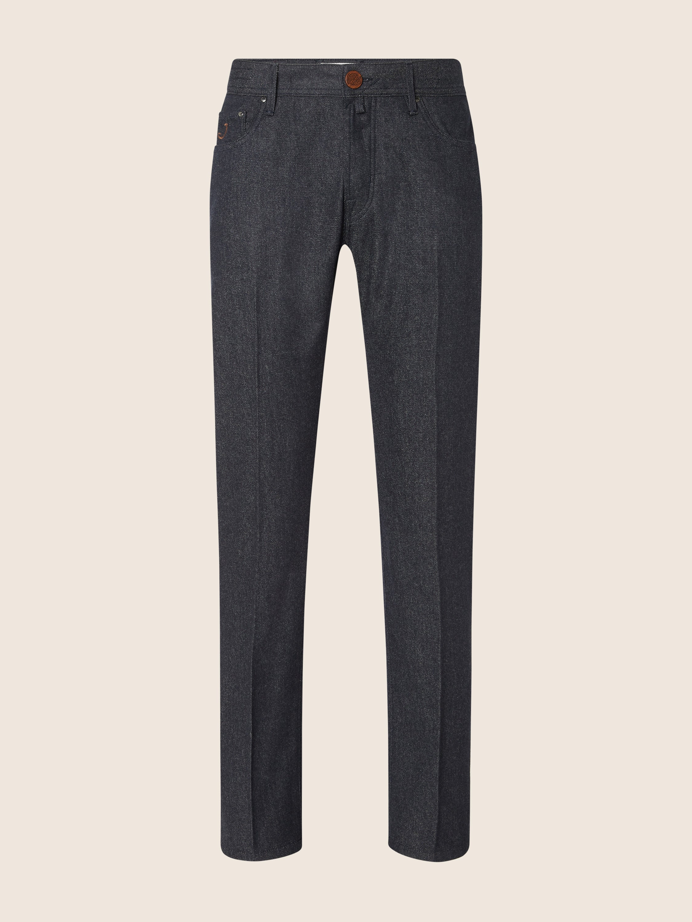 Bard Regular-Slim 5 Pocket Pants in Dark Blue Melange Pure Cashmere Bard – Pants in Cashmere