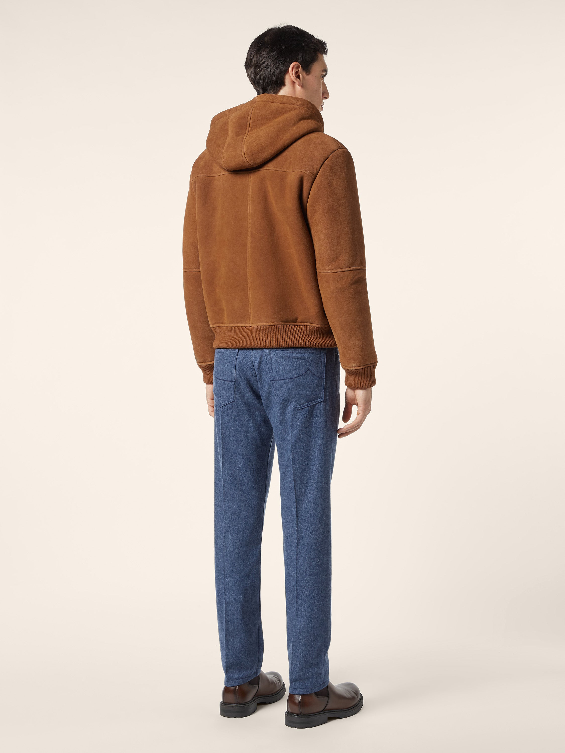 Rust-Brown Shearling Hooded Jacket