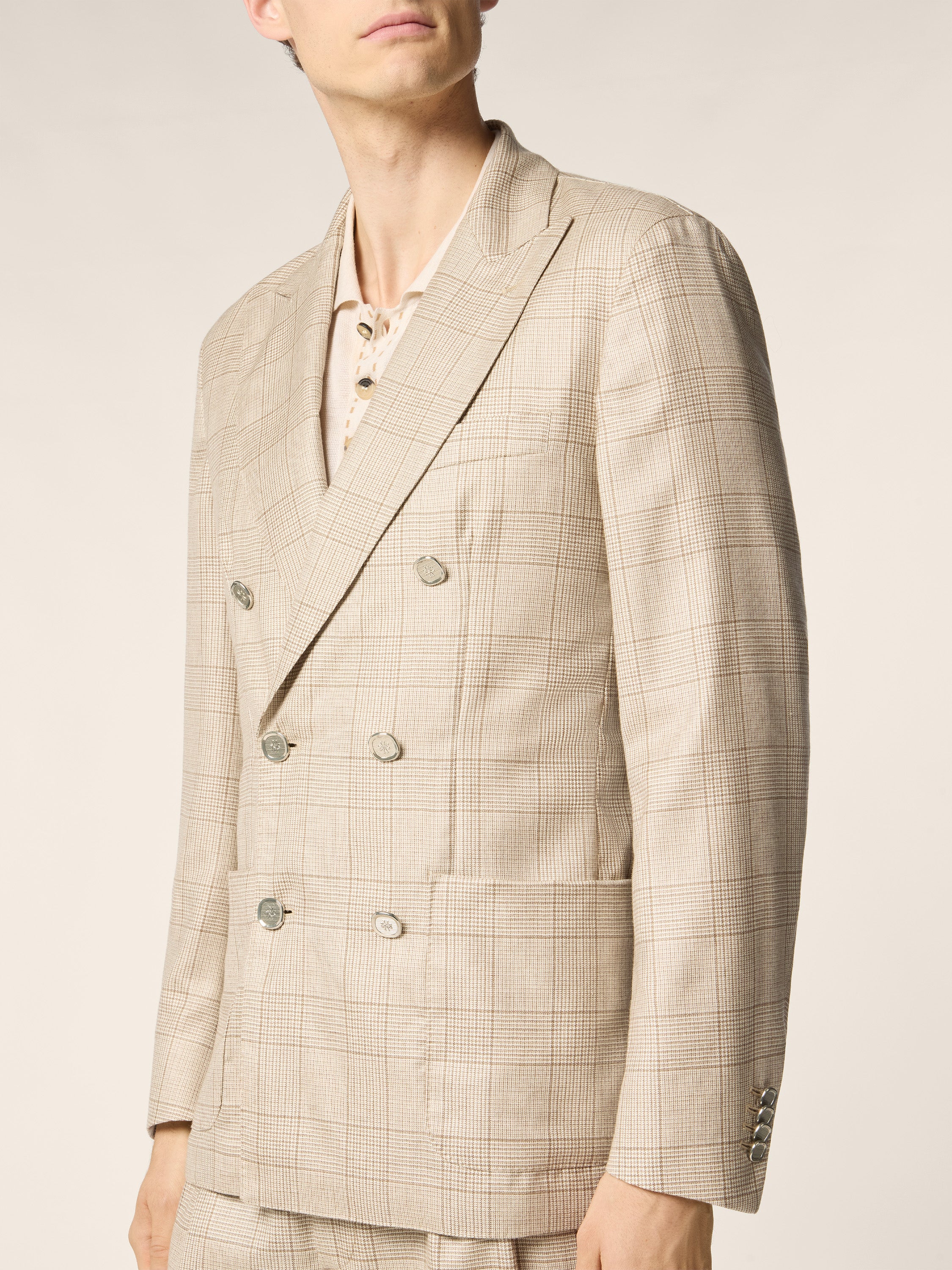Blazer in Natural Beige Cashmere and Silk Prince of Wales