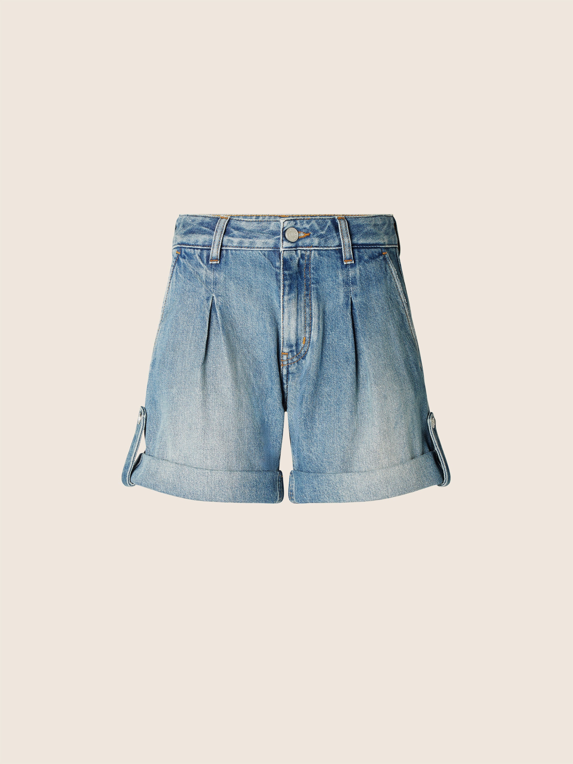 Jenny Shorts in Medium Blue Cotton and Lyocell Denim with Vintage Wash