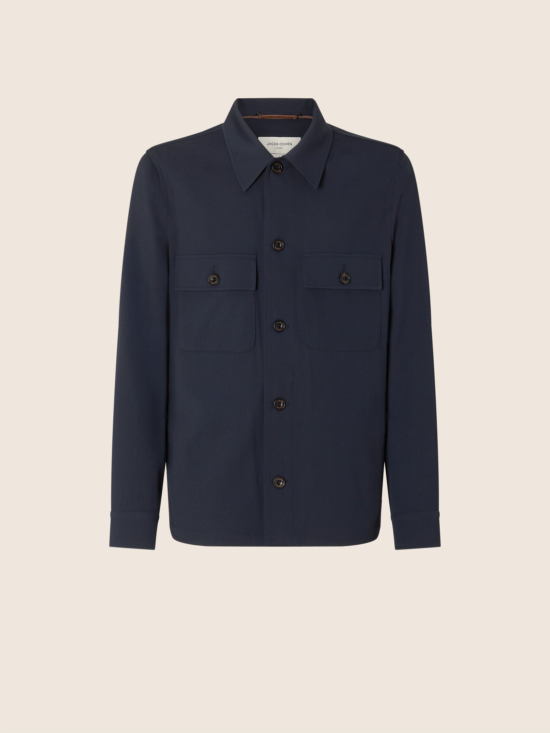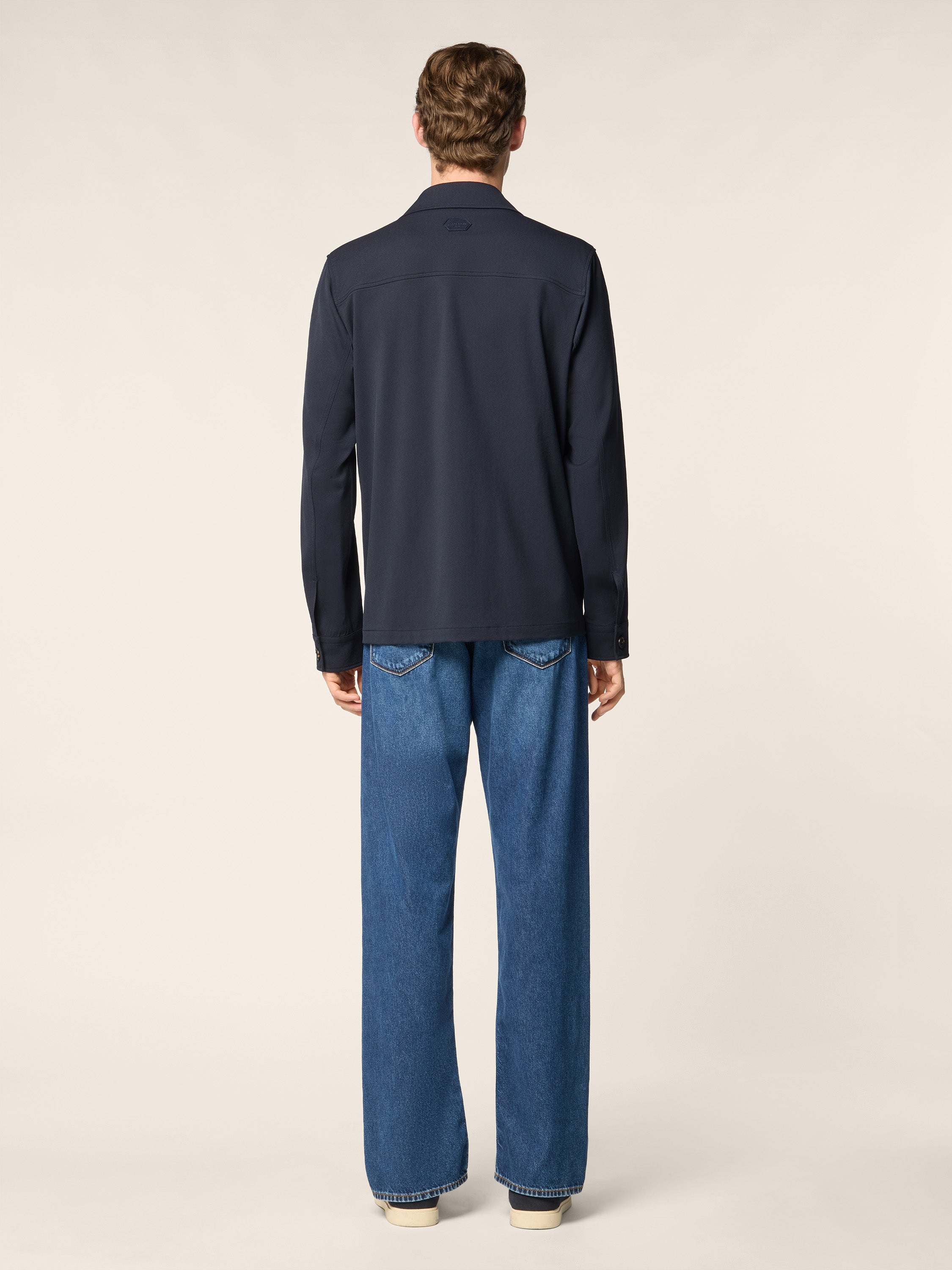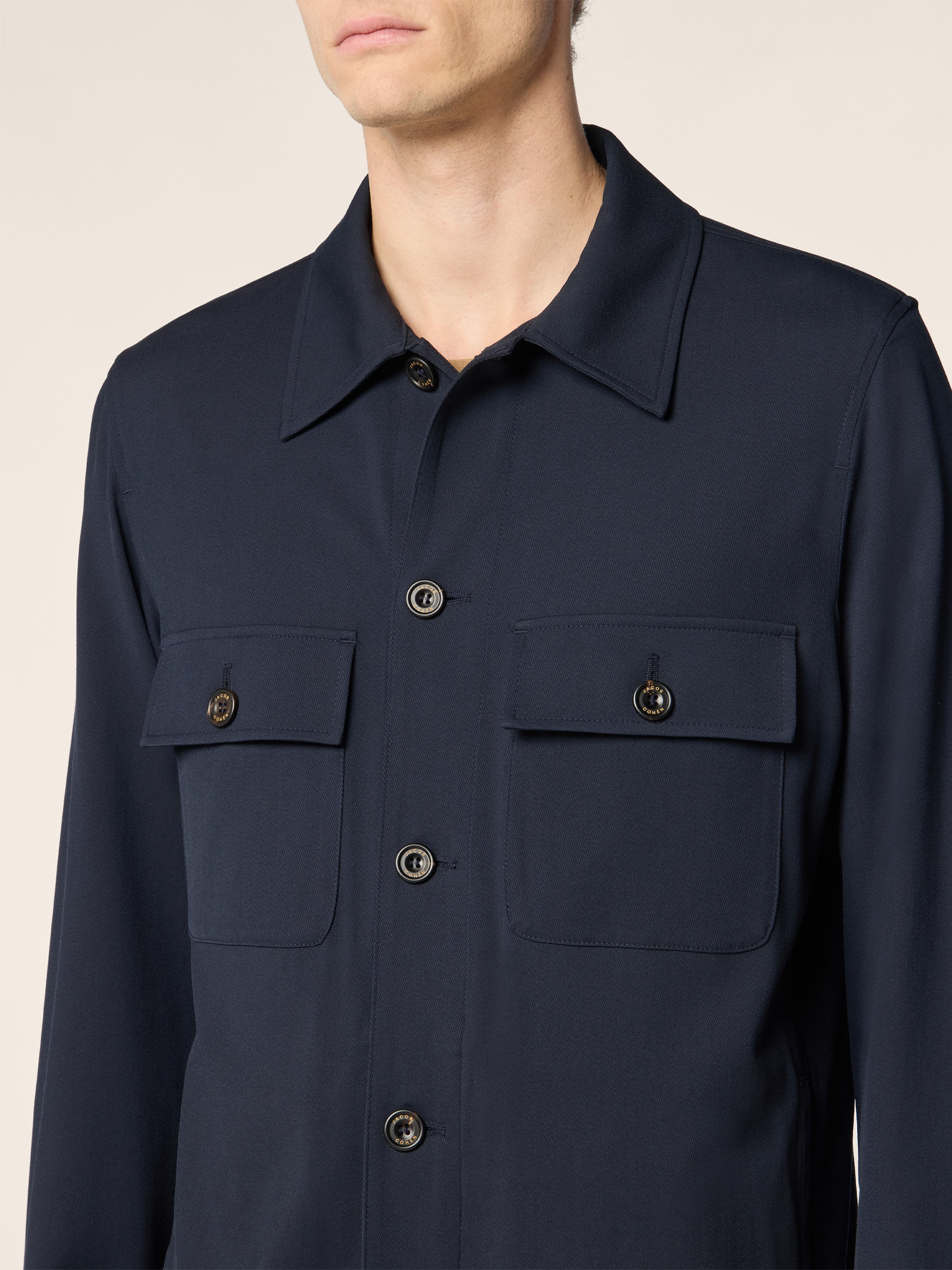 Overshirt in Navy Blue Wool and Nylon Stretch Twill