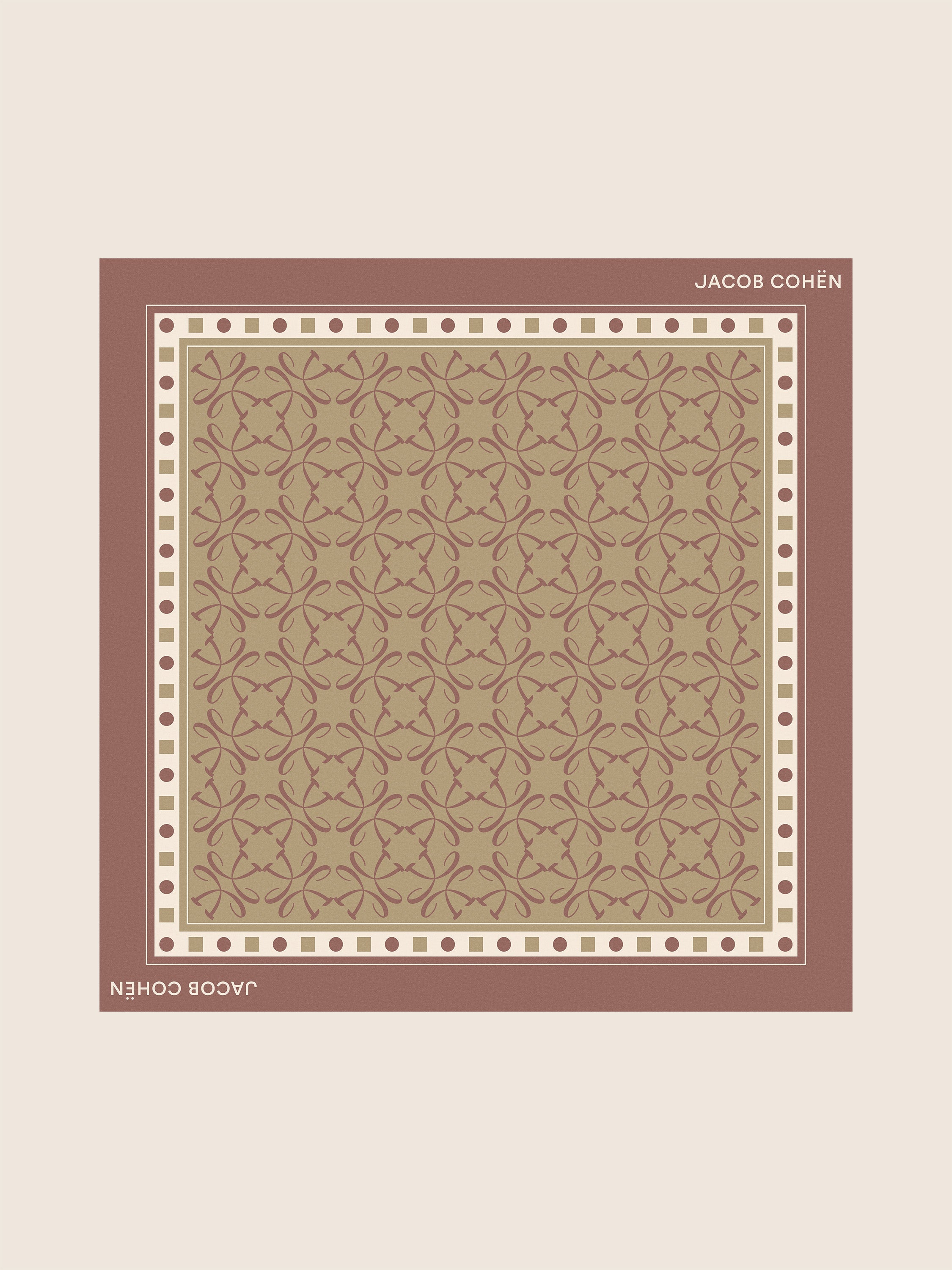 - Comprend un bandana en coton avec imprimé monogramme géométrique dans les tons brique