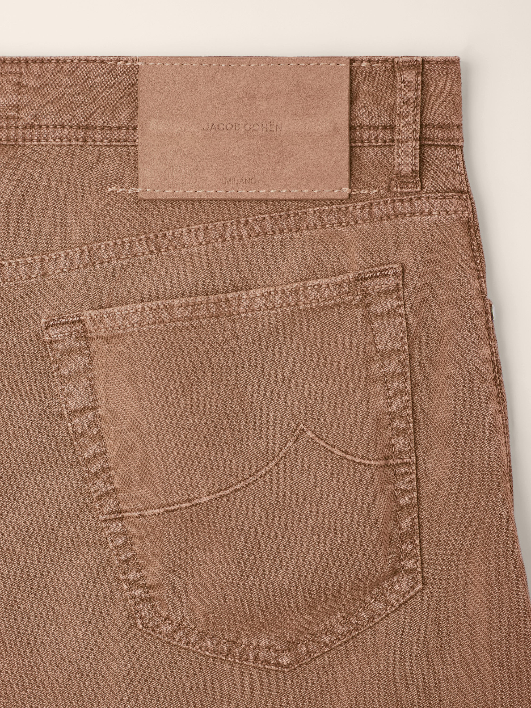 Pantalon Bard Fast en coton stretch à micro nid d'abeille couleur marron huile d'argan, coupe regular-slim, 5 poches